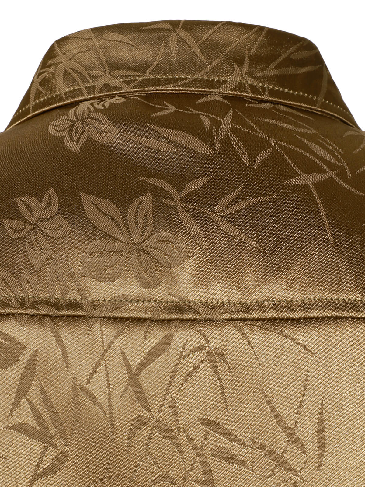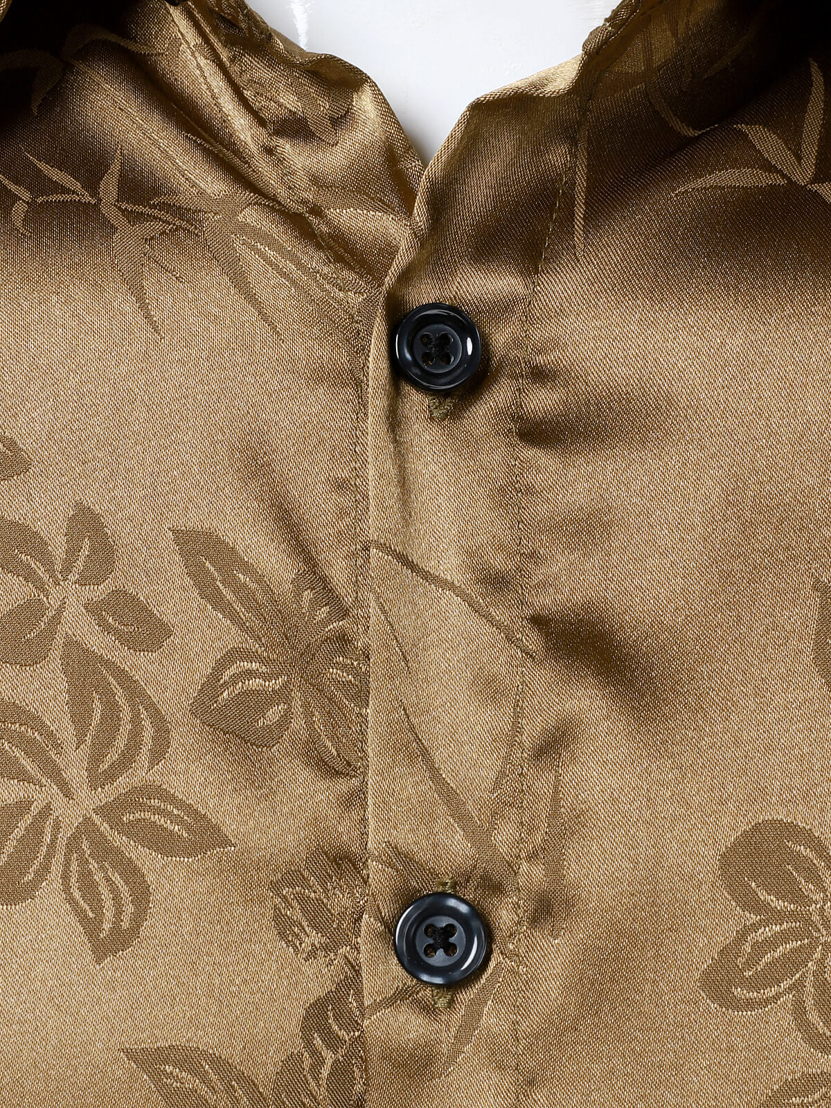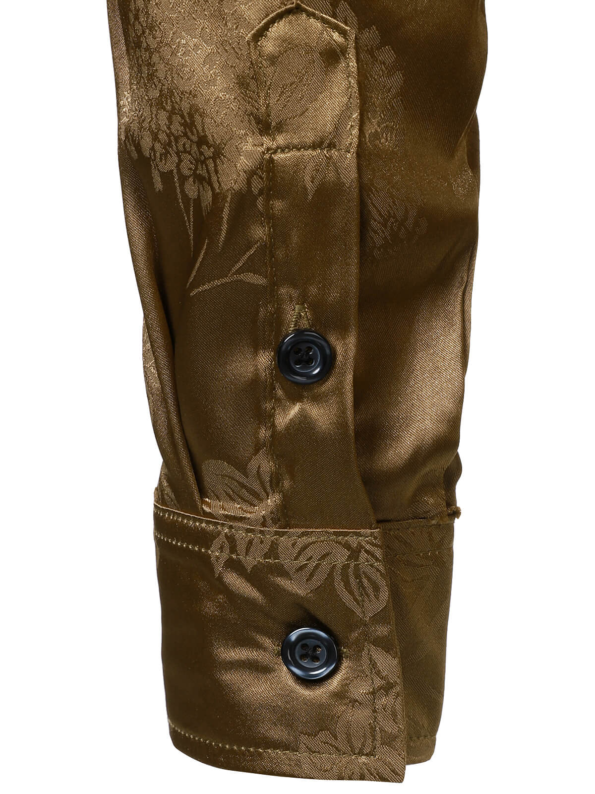 Men's Khaki Floral Jacquard Shiny Satin Long Sleeve Dress Shirt