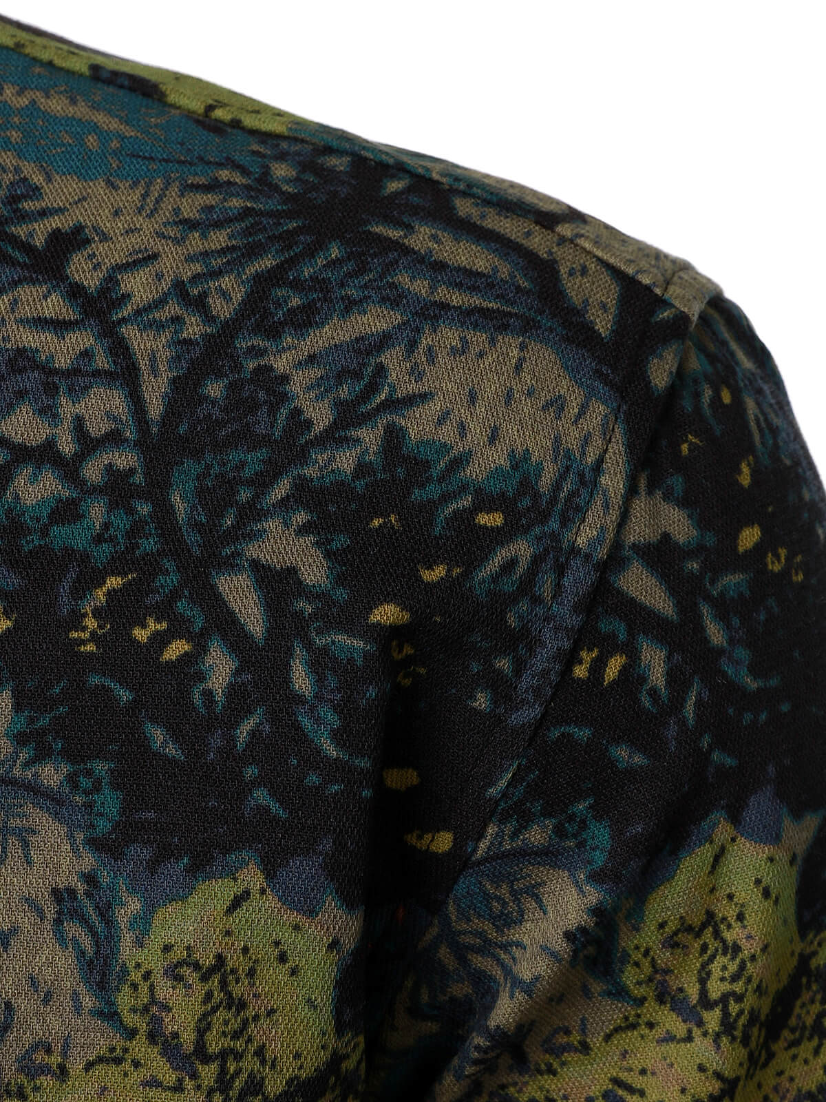 Men's Retro Plant Print Button Up Long Sleeve Shirt