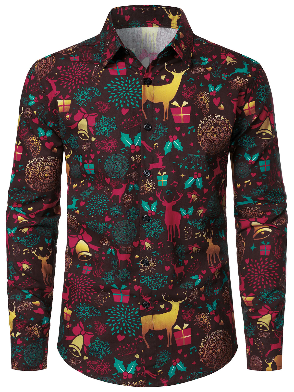 Men's Christmas Holiday Cotton Long Sleeve Shirt