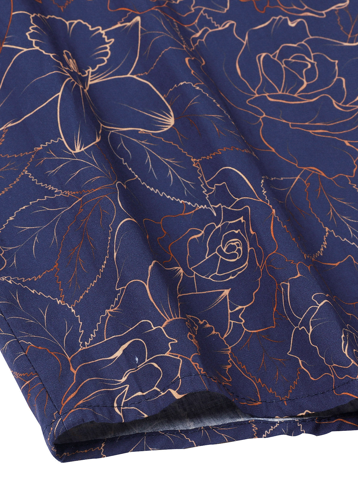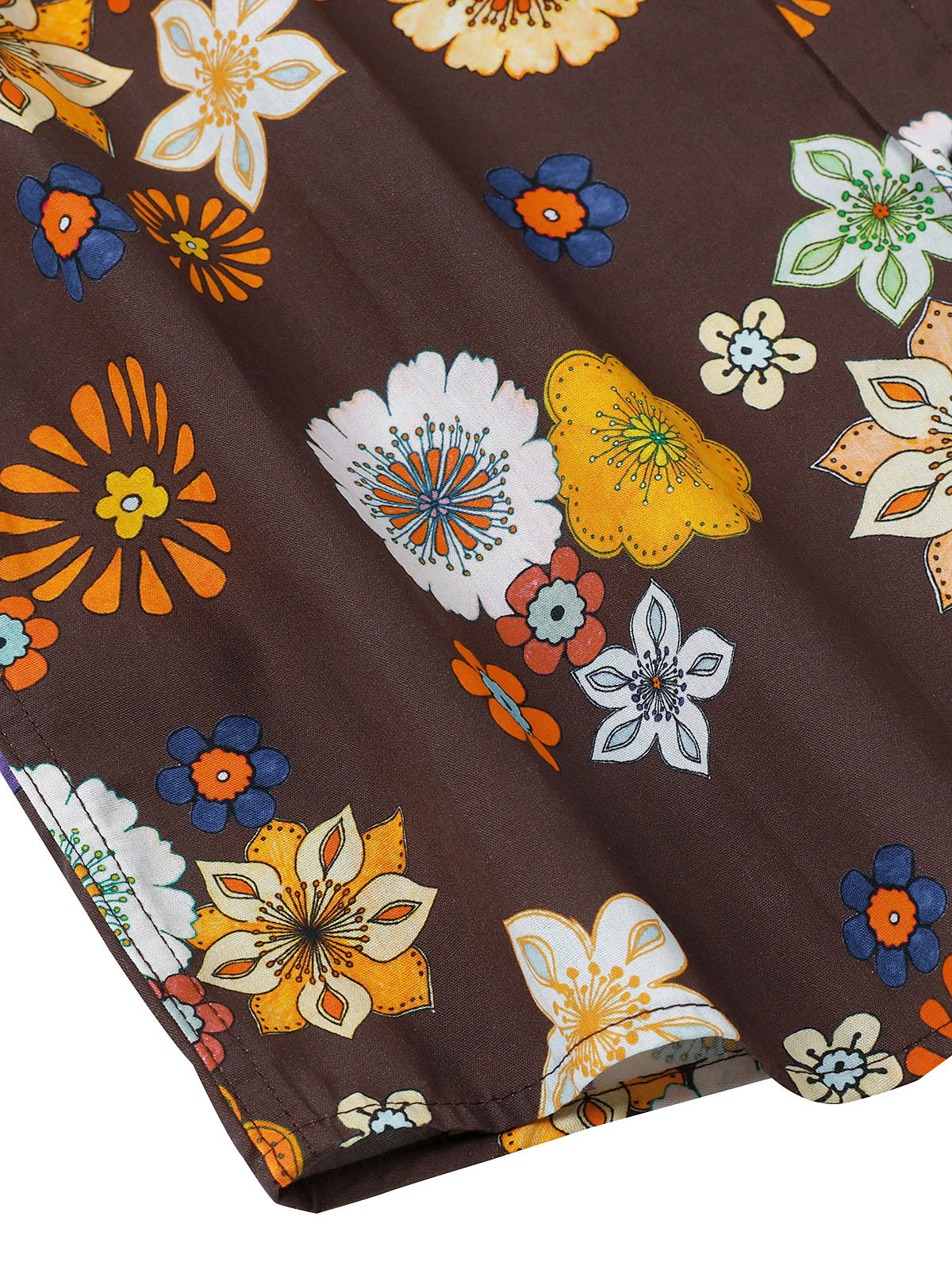 Men's Floral Print Vintage Holiday Brown Hawaiian Short Sleeve Shirt