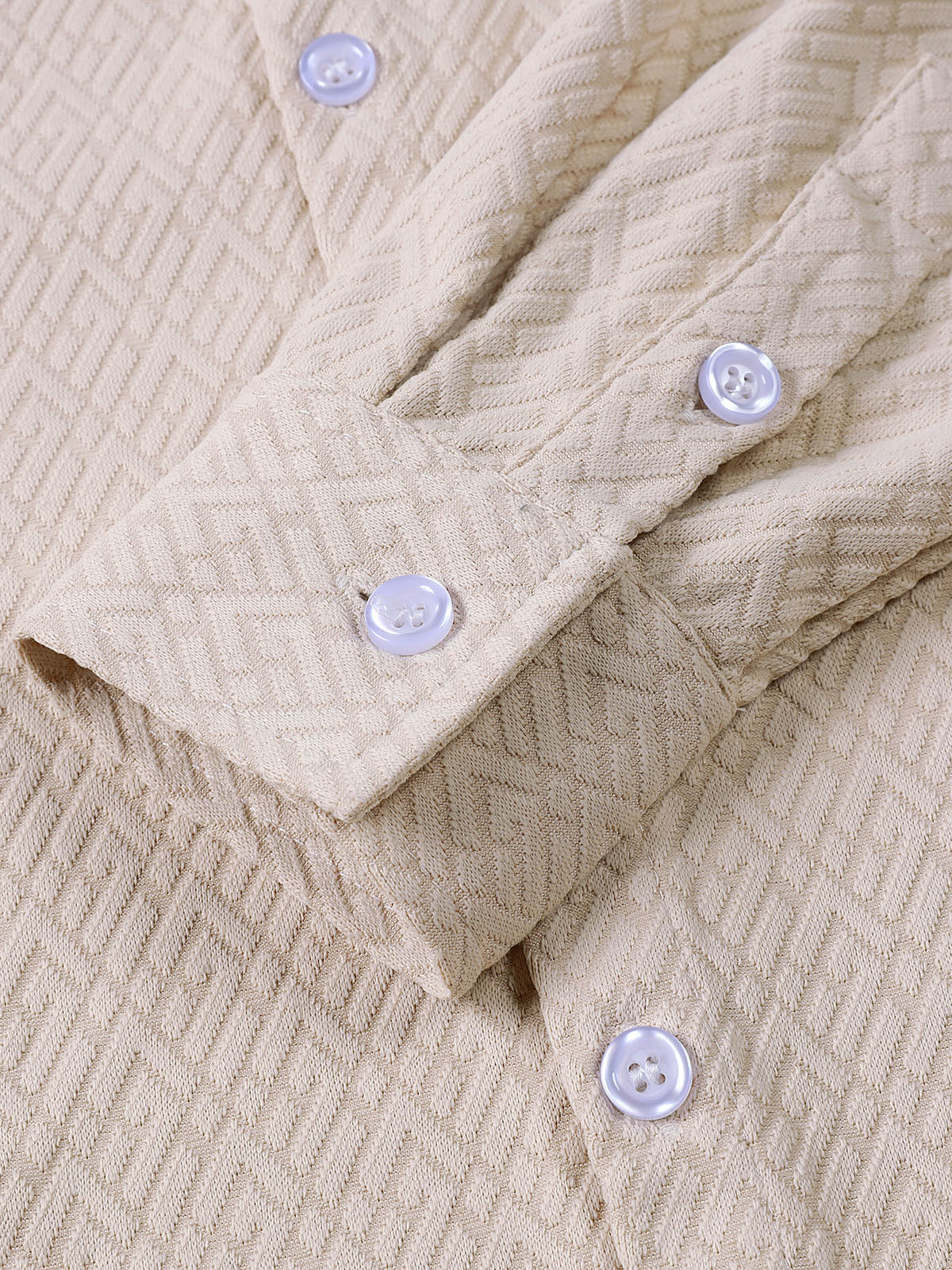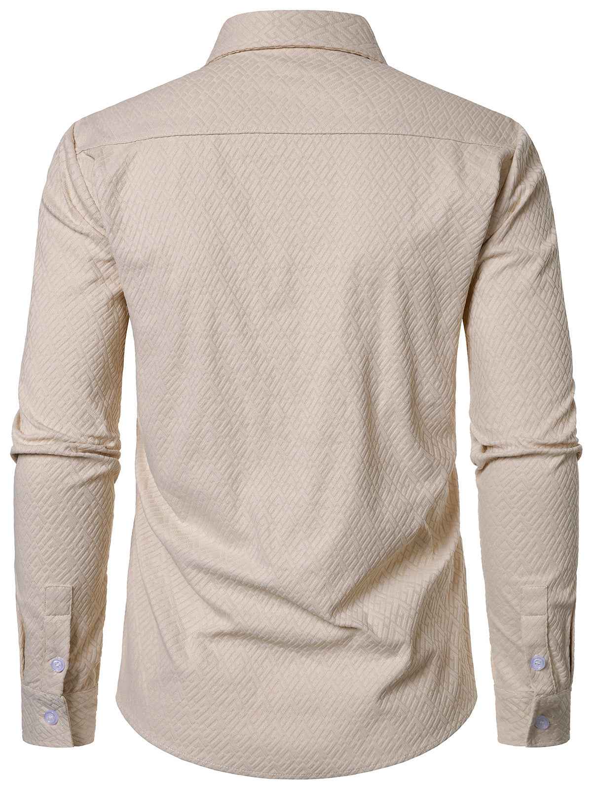 Men's Casual Geometric Beige Long Sleeve Shirt