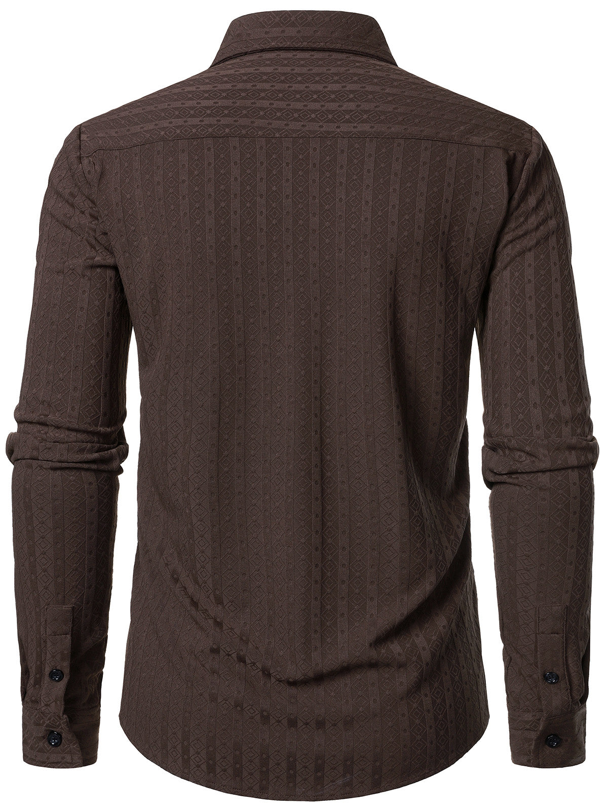 Men's Casual Geometric Khaki Long Sleeve Shirt