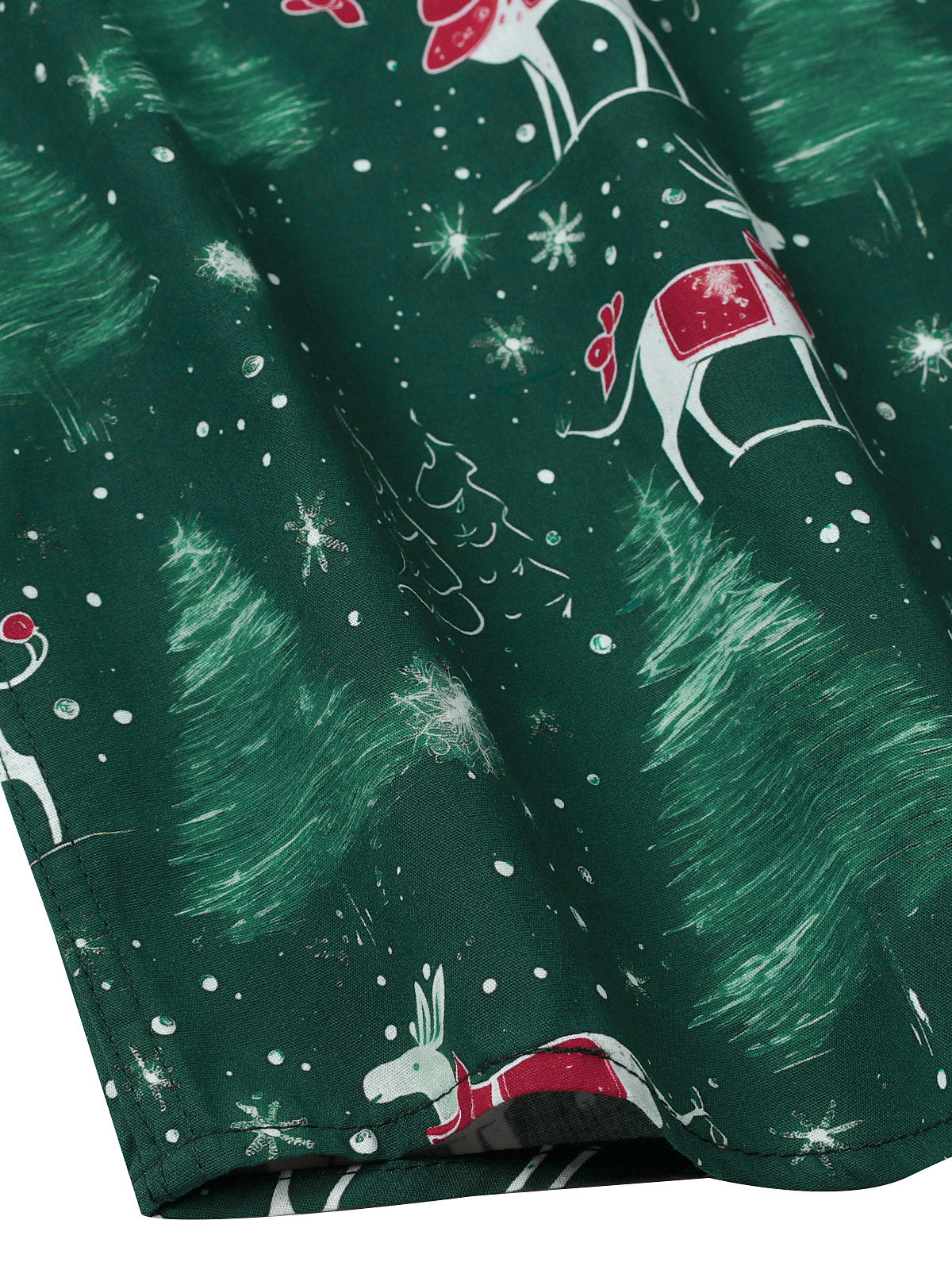 Men's Christmas Tree Elk Print Breathable Green Long Sleeve Shirt