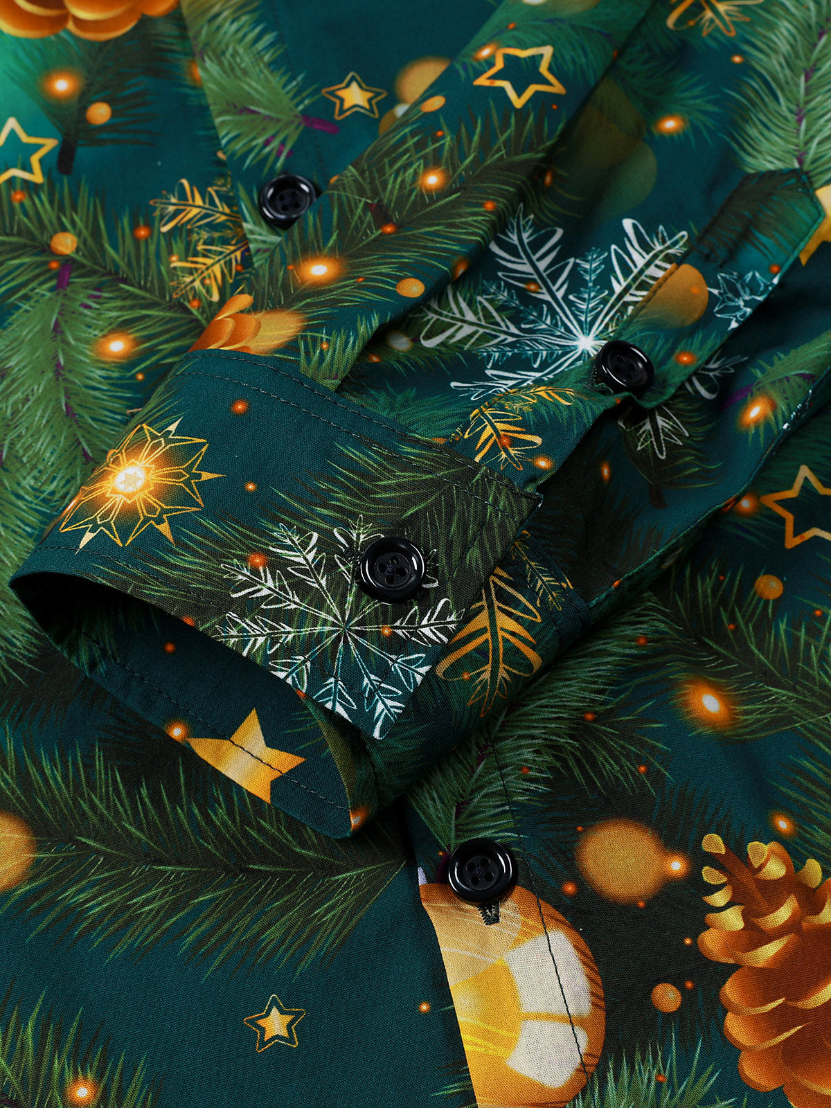 Men's Christmas Tree Print Cotton Holiday Long Sleeve Shirt