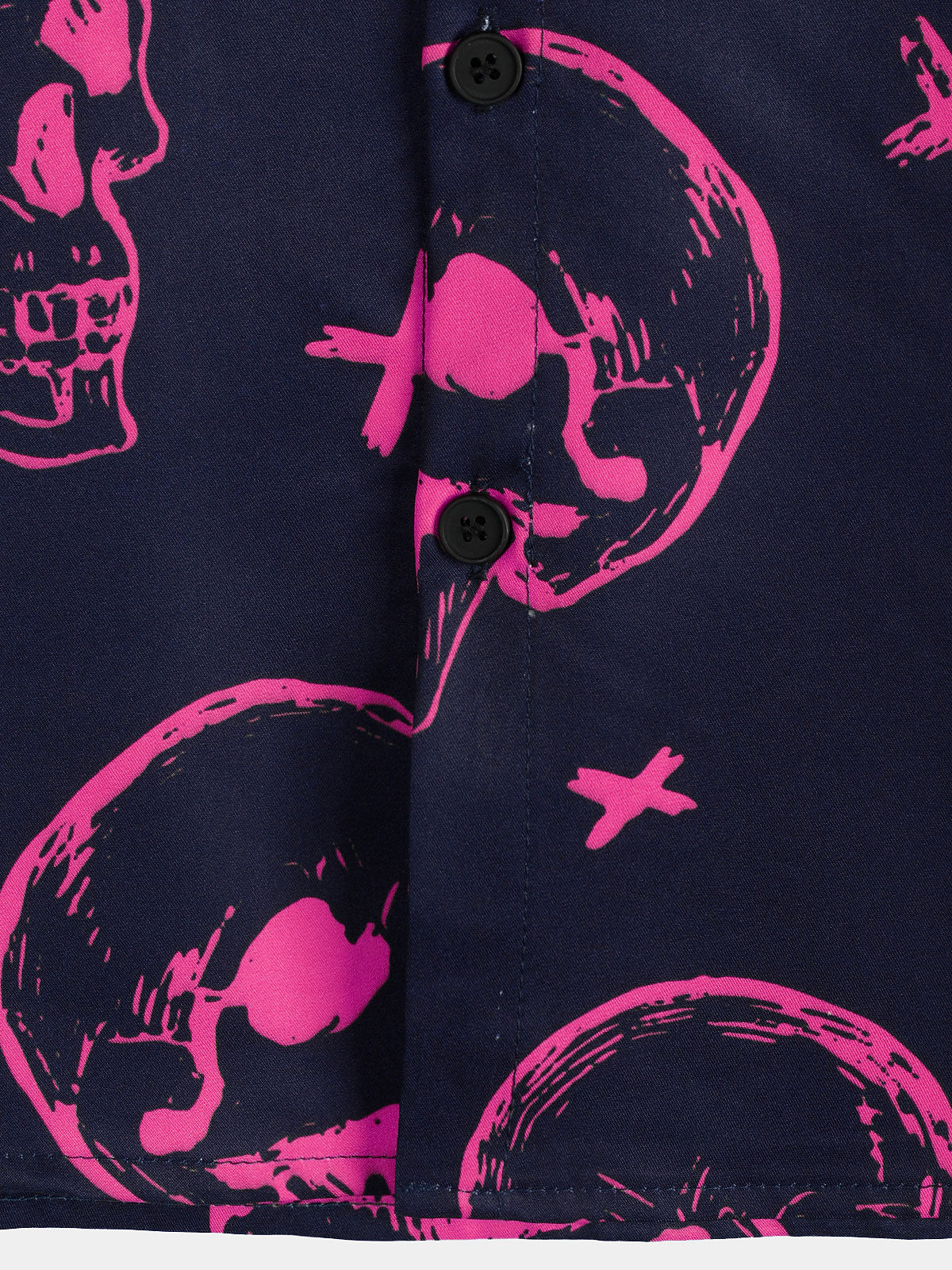 Men's Pink Skull Print Art Graphic Button Short Sleeve Aloha Hawaiian Shirt