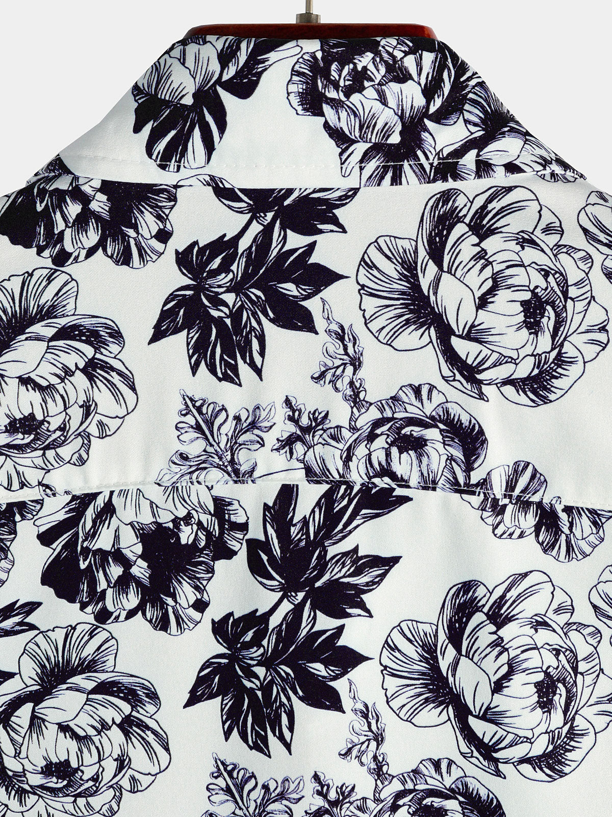 Men's Black Punk Rock Crown Floral Skull Print Short Sleeve Shirt