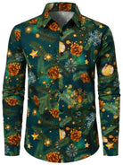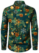 Men's Christmas Tree Print Cotton Holiday Long Sleeve Shirt
