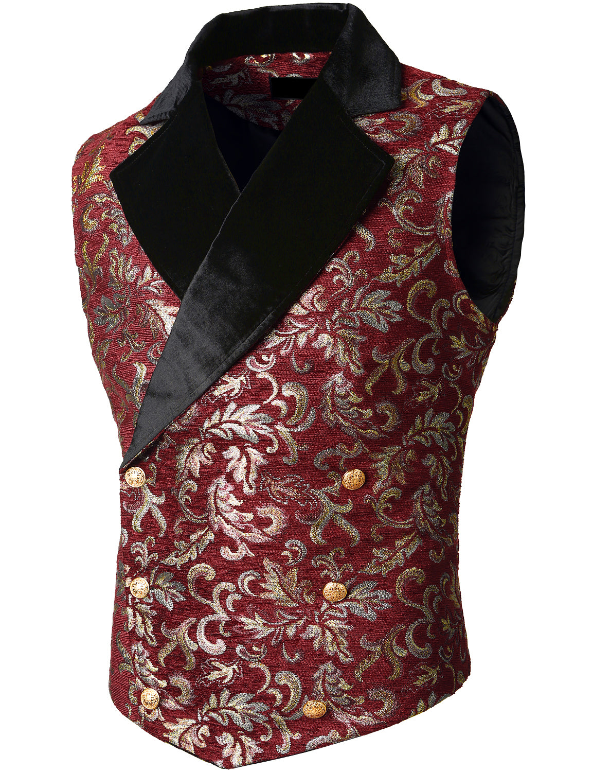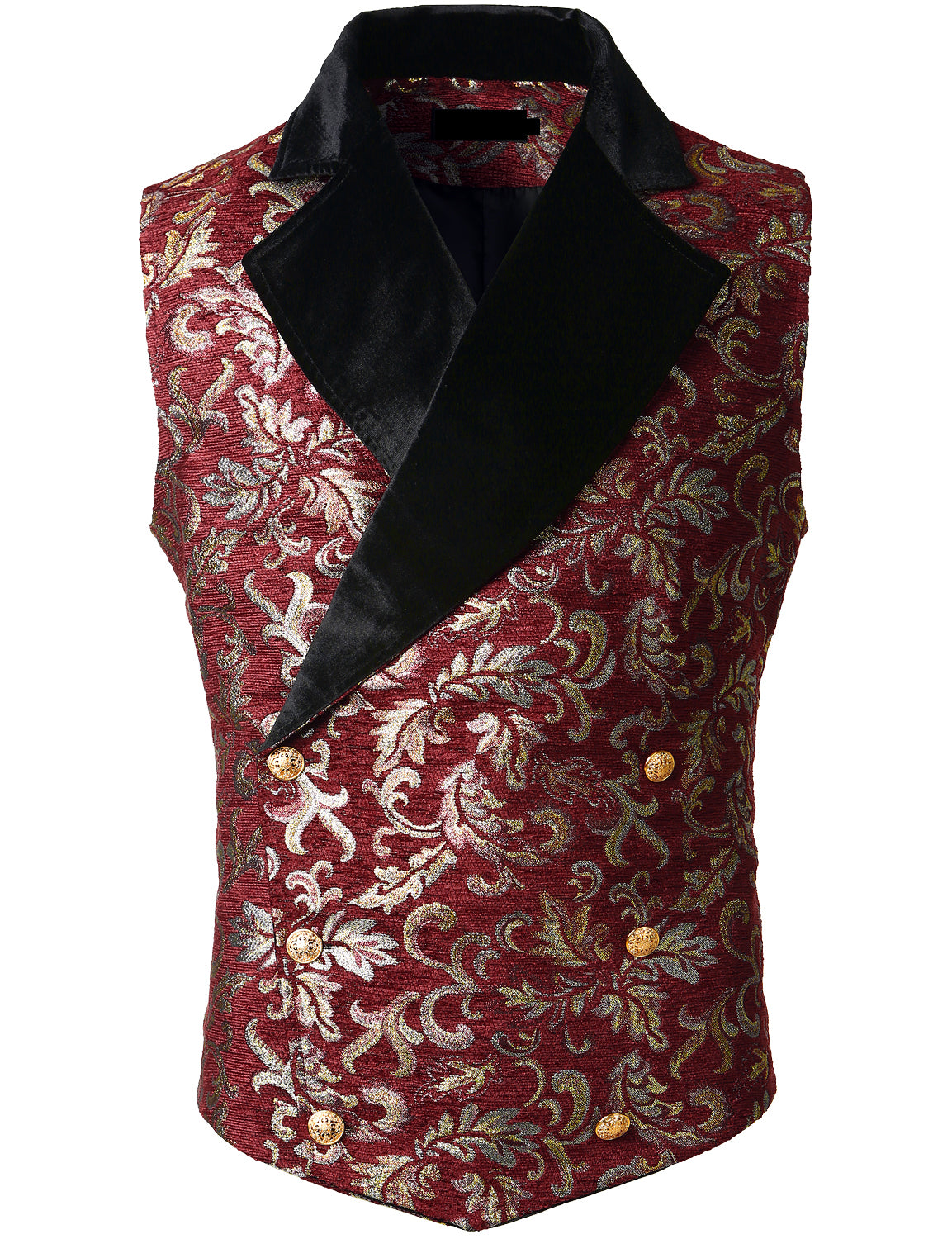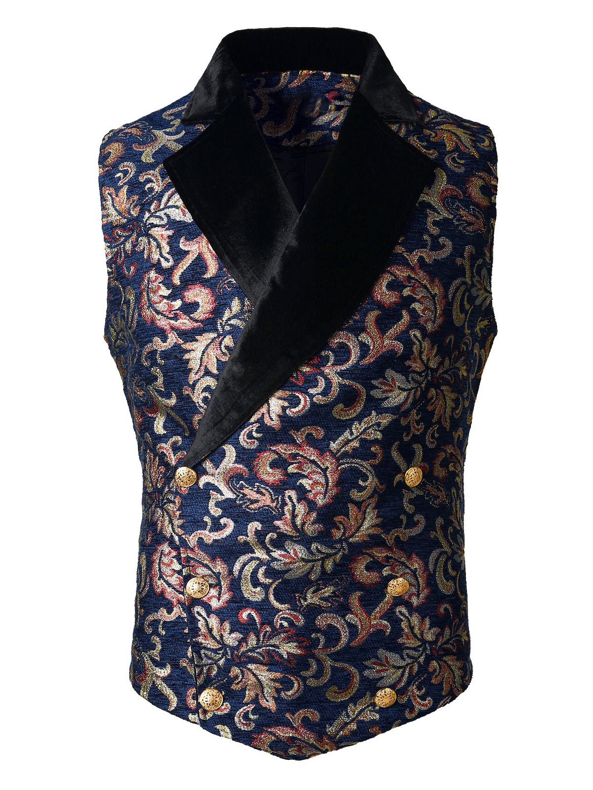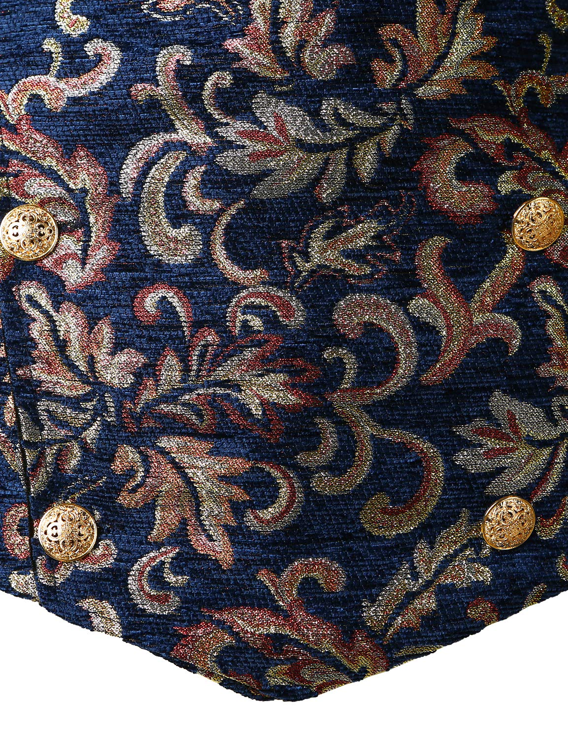 Mens Victorian Double Breasted Vest Vintage Floral Navy Blue Gothic Steampunk Waistcoat