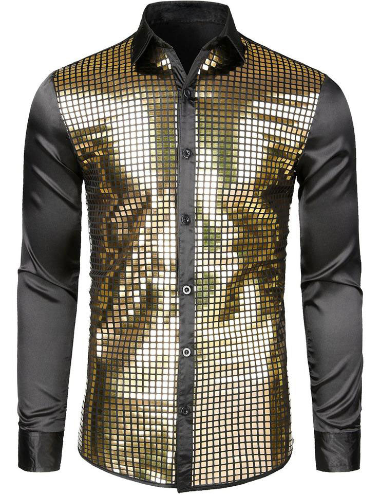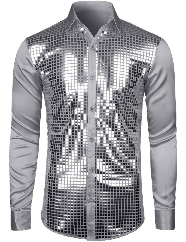 Men's Holiday Party Disco Champagne Fireworks Print Long Sleeve Button Down Shirt