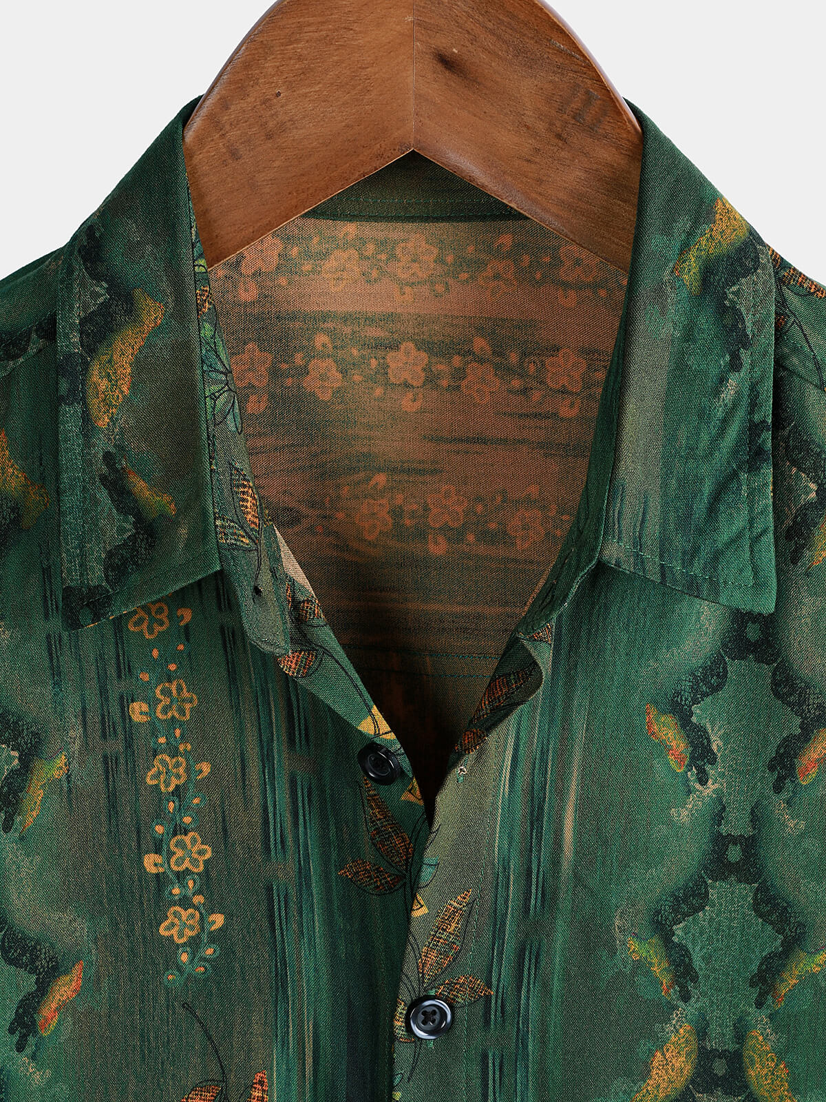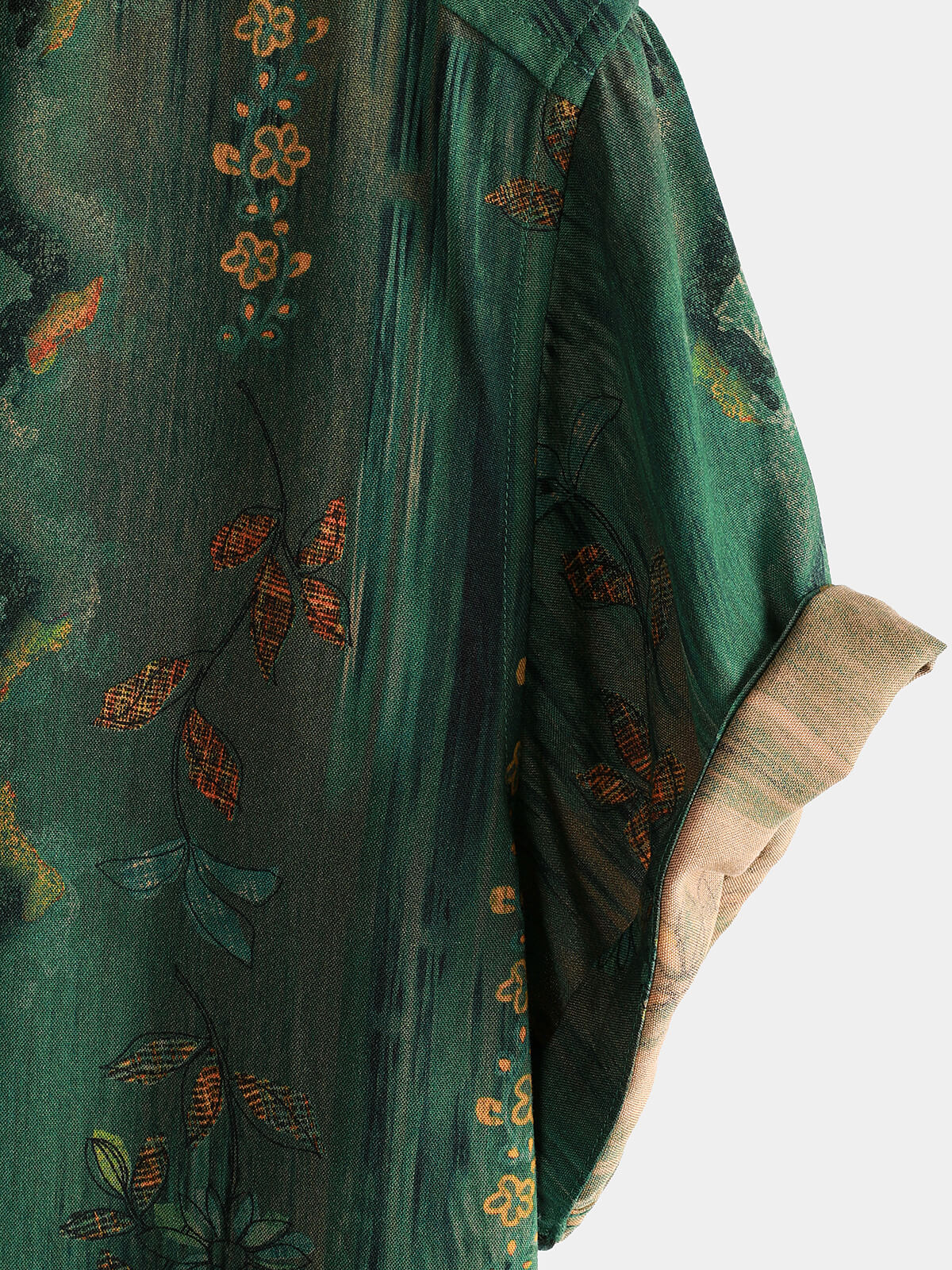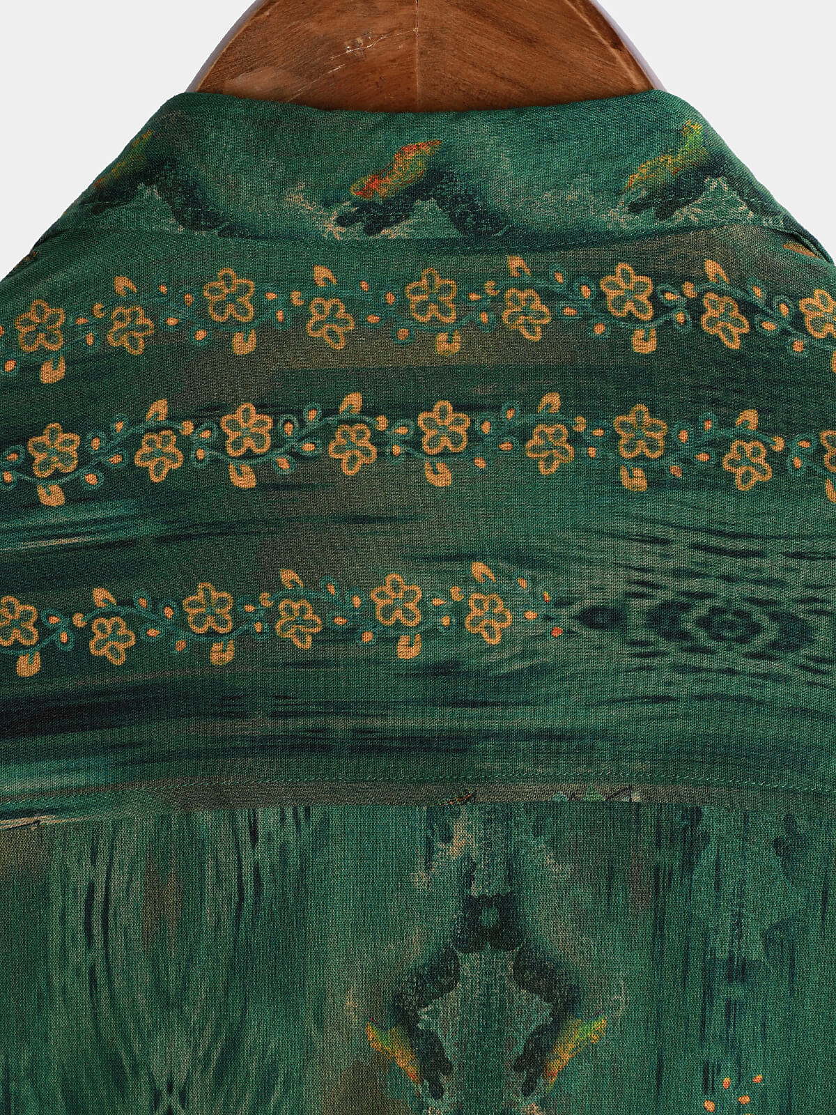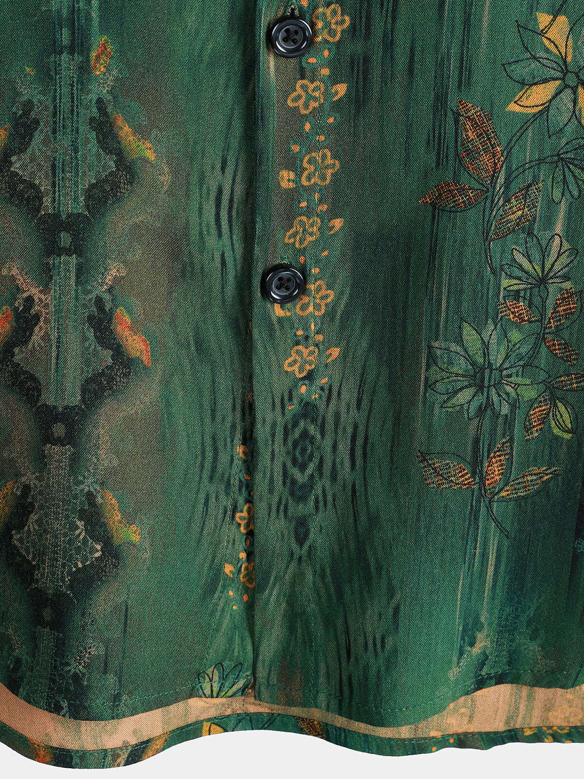 Men's Casual Green Floral Print Lightweight Cotton Short Sleeve Shirt
