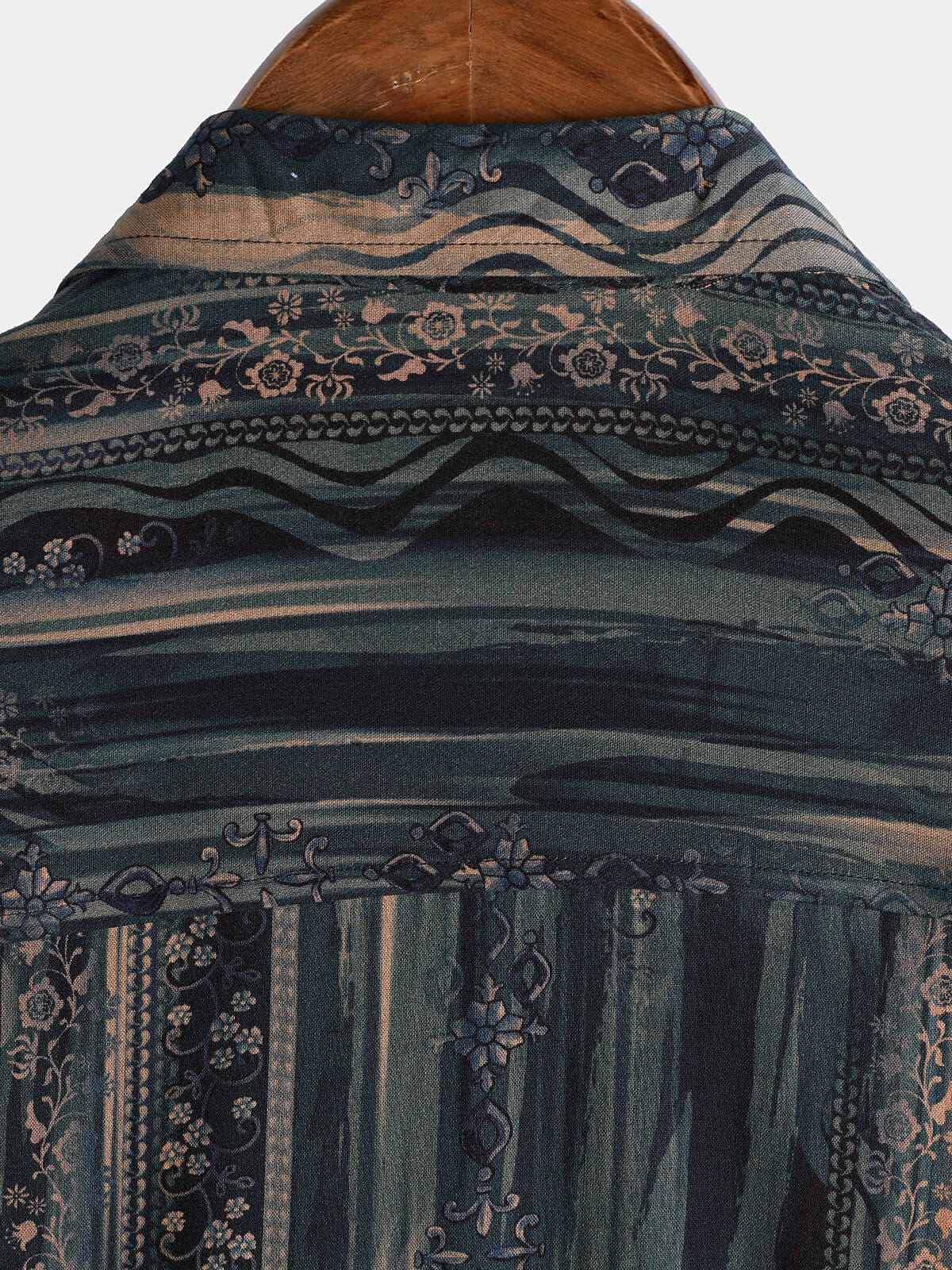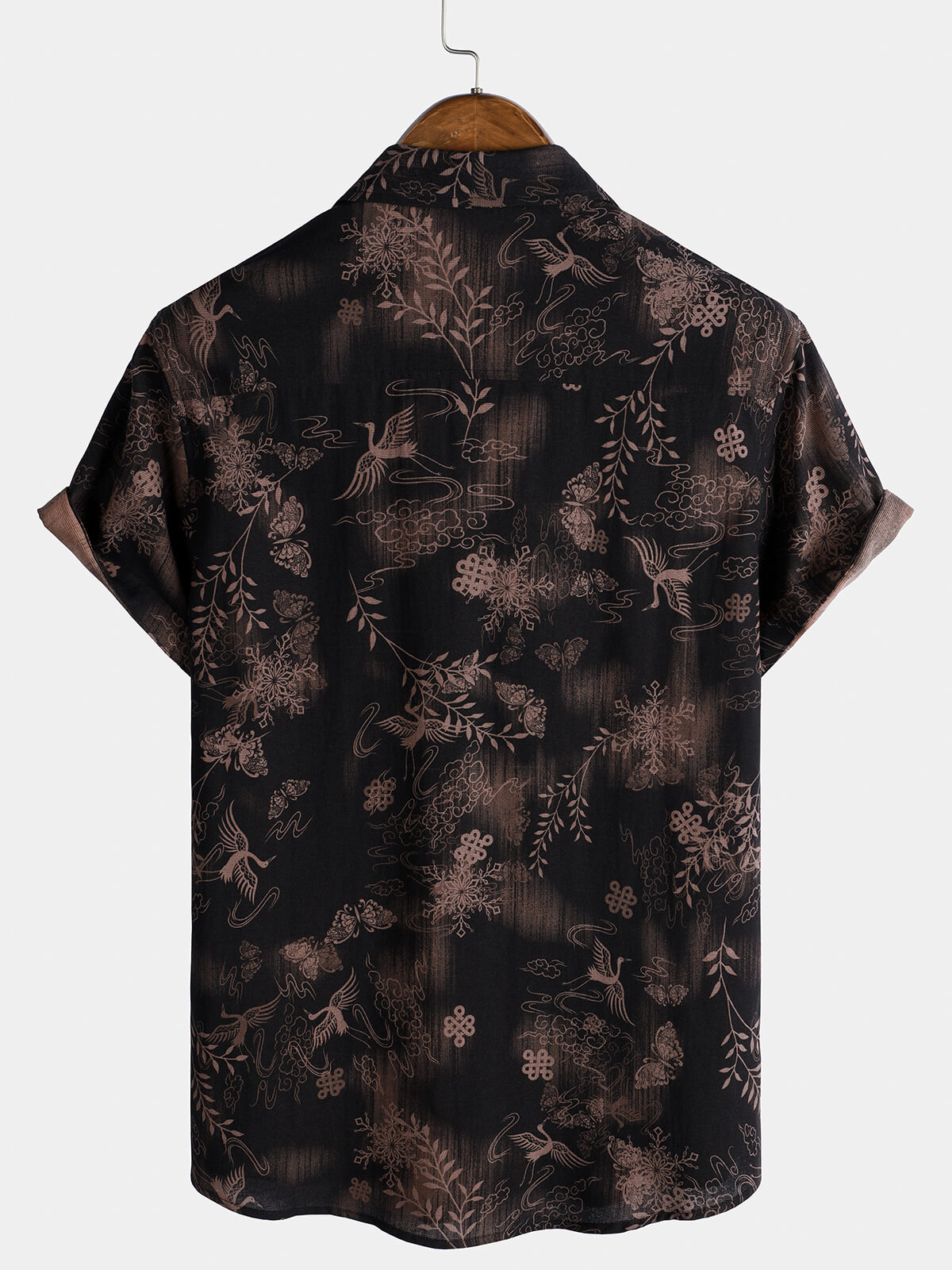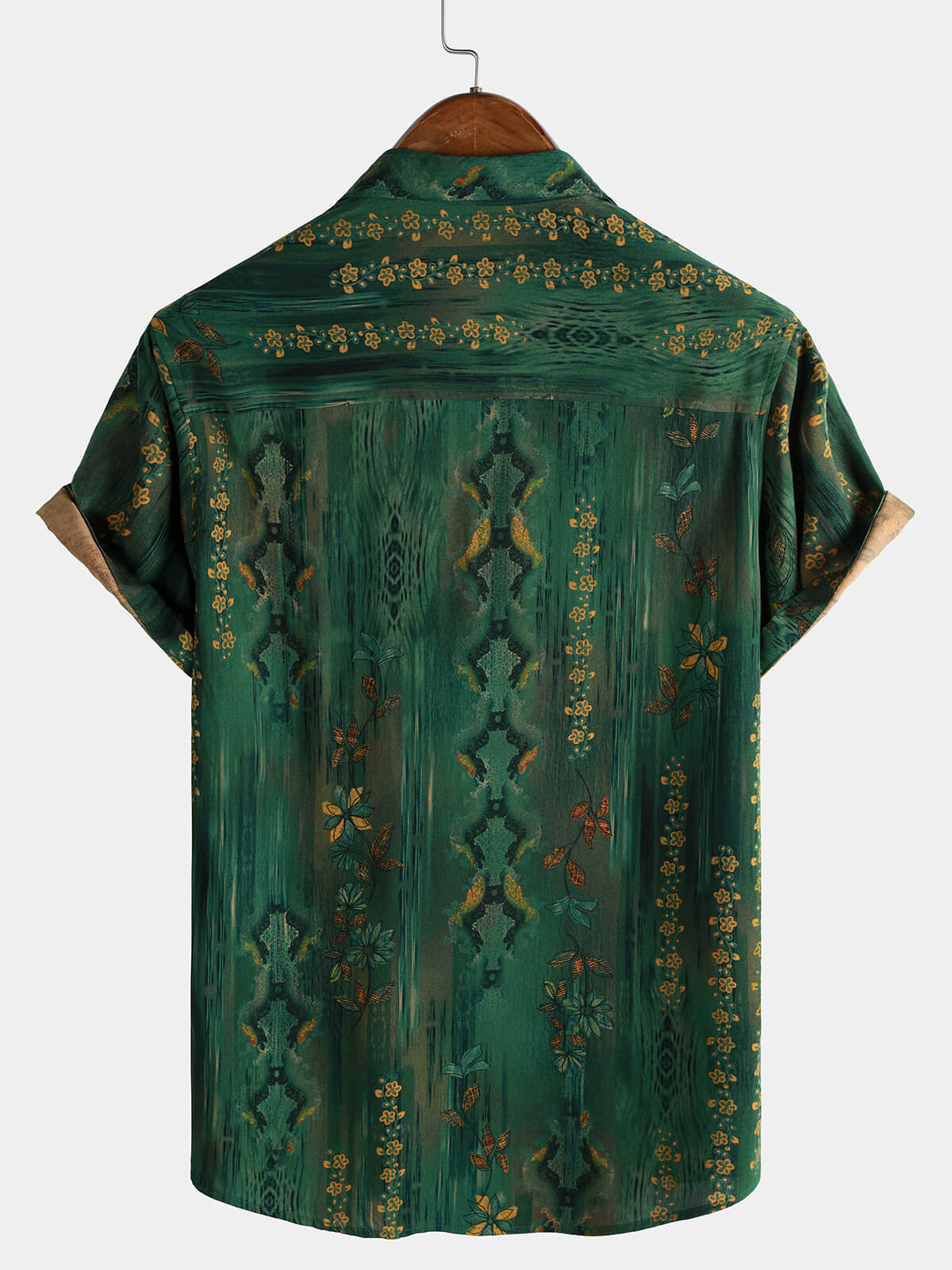 Men's Retro Floral Vacation Button Up Short Sleeve Shirt