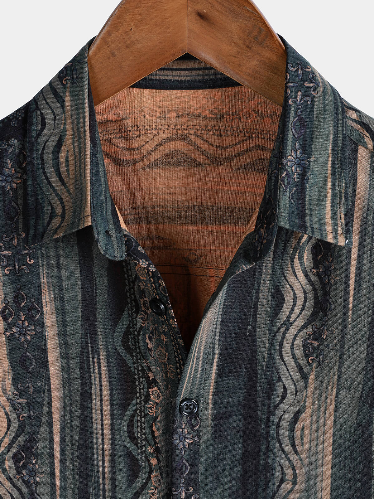 Men's Retro Striped Print Resort Short Sleeve Shirt