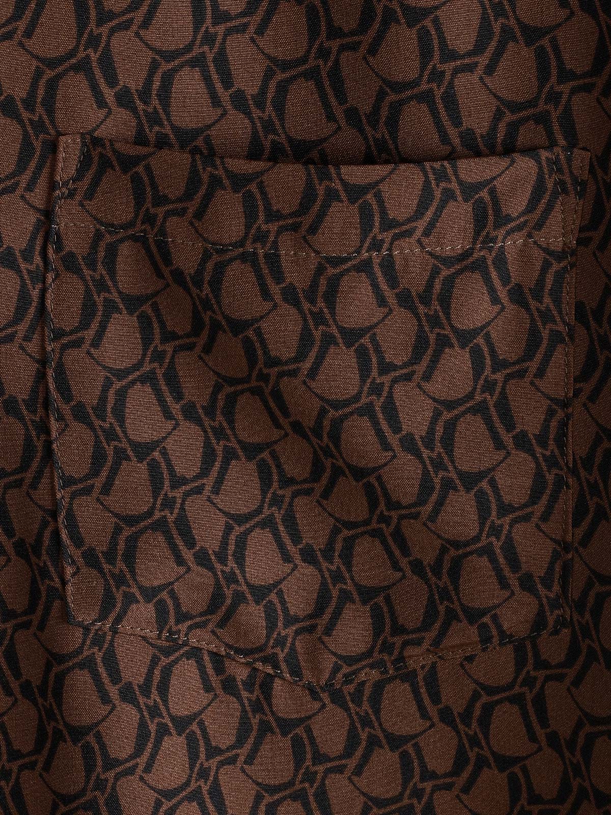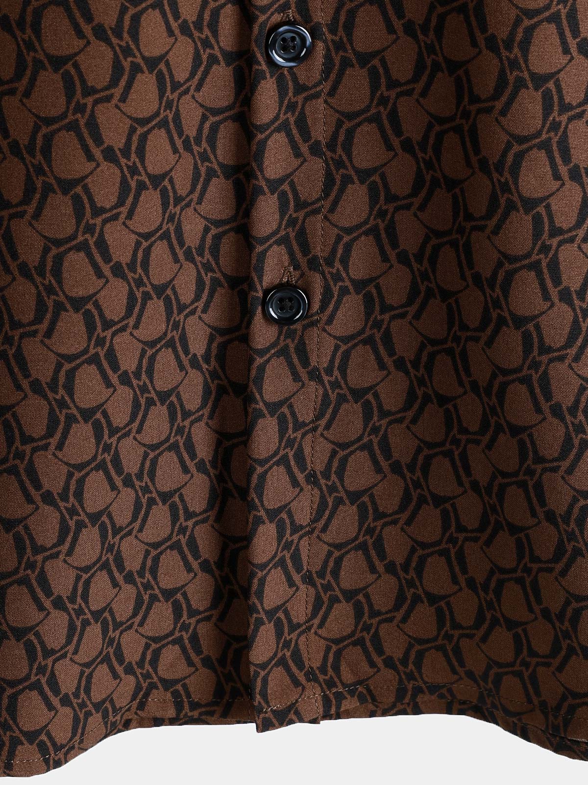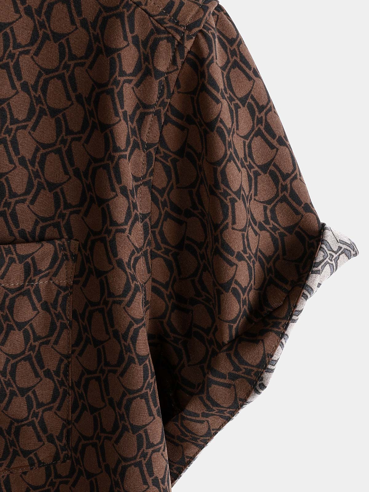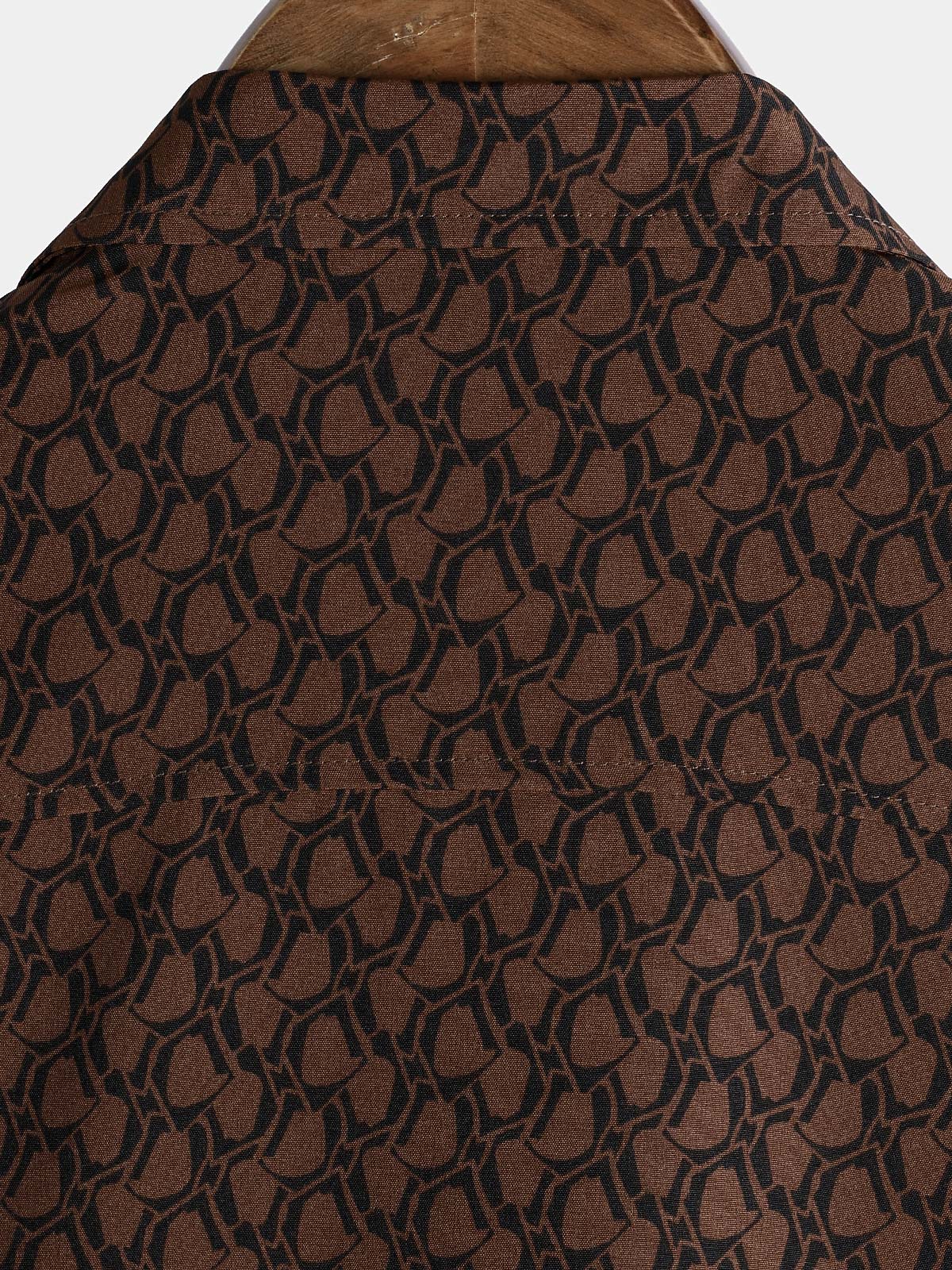 Men's Retro Brown Geometric Print Pocket Short Sleeve Shirt