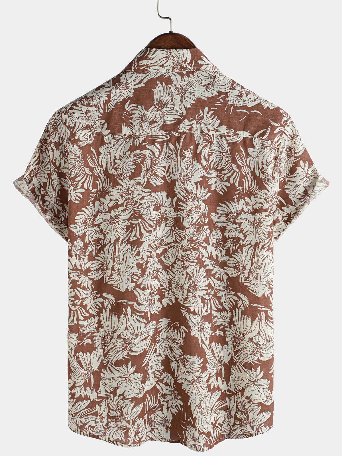 Men's Brown Floral Short Sleeve Summer Button Up Shirt
