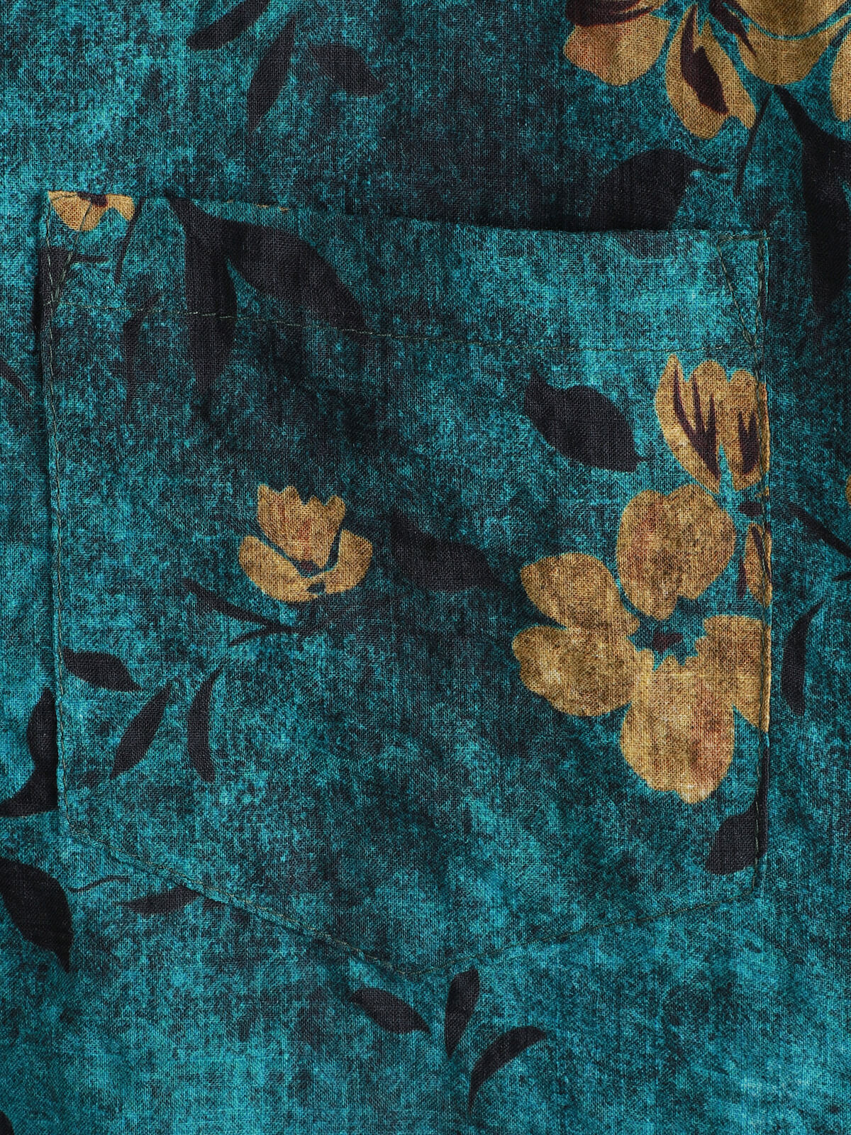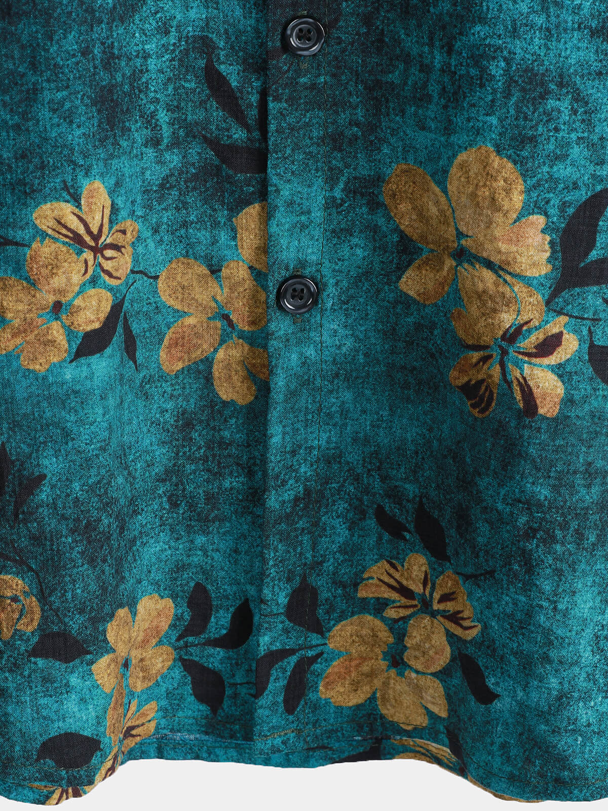 Men's Floral Print Pocket Holiday Short Sleeve Shirt