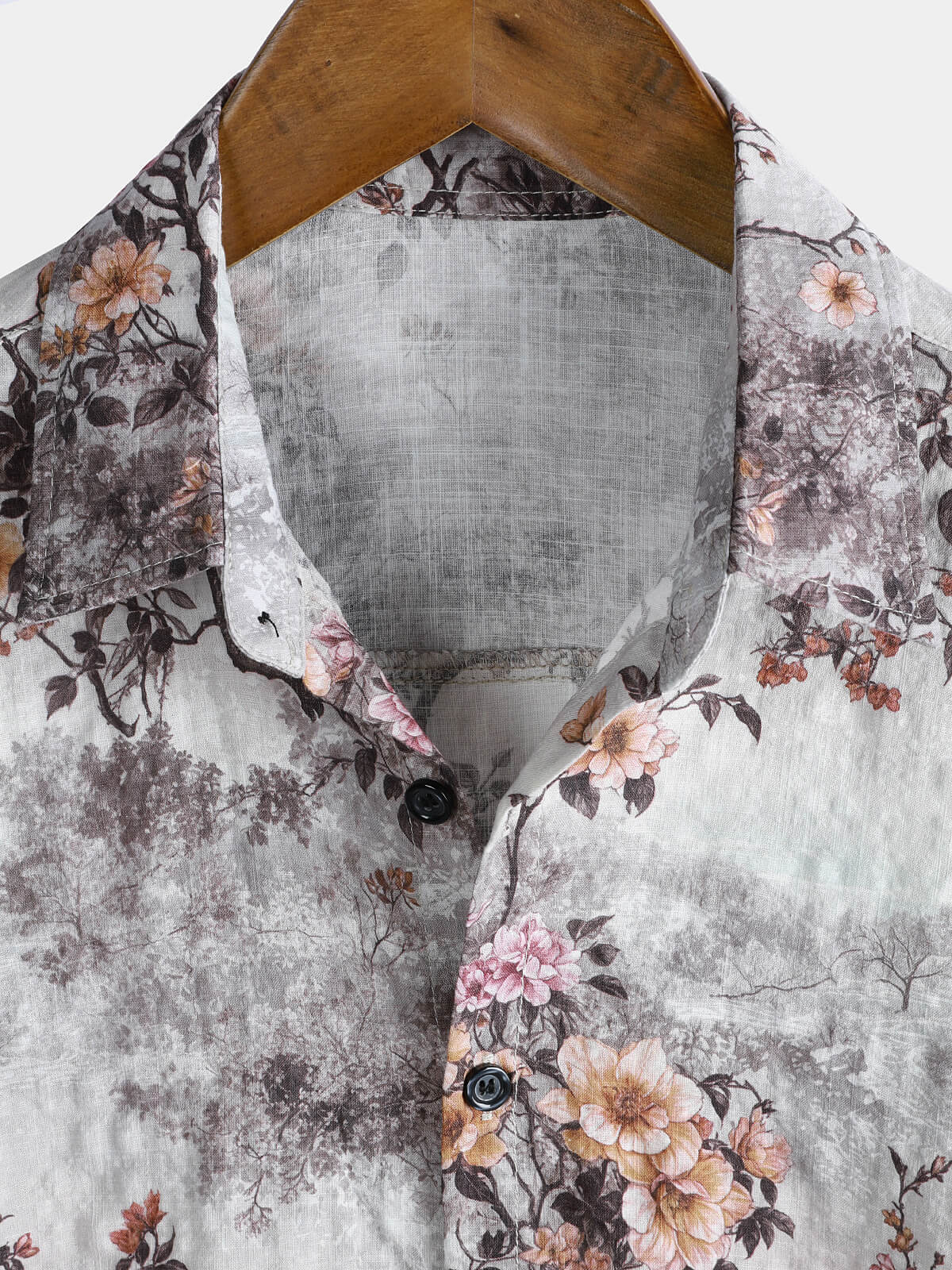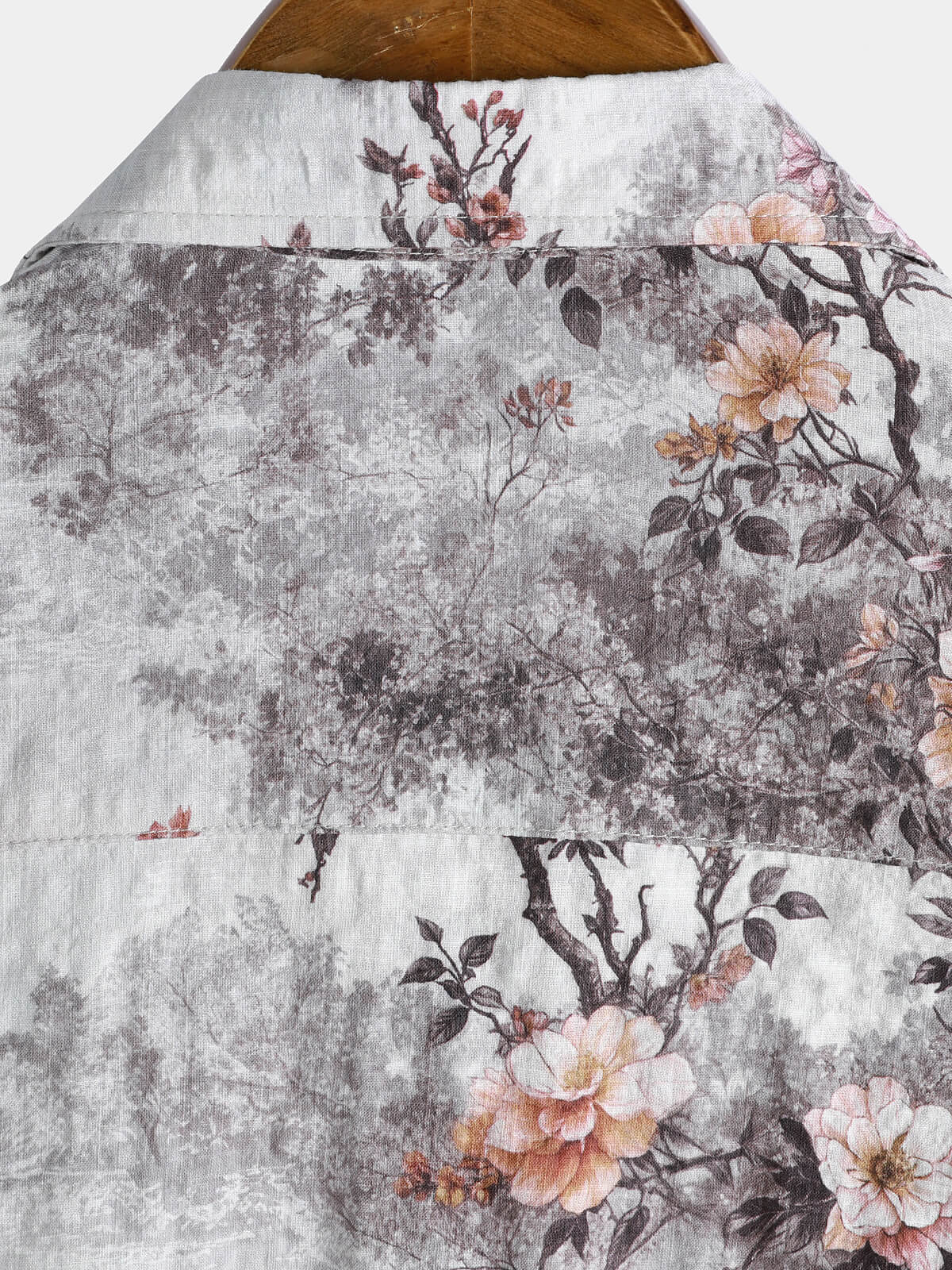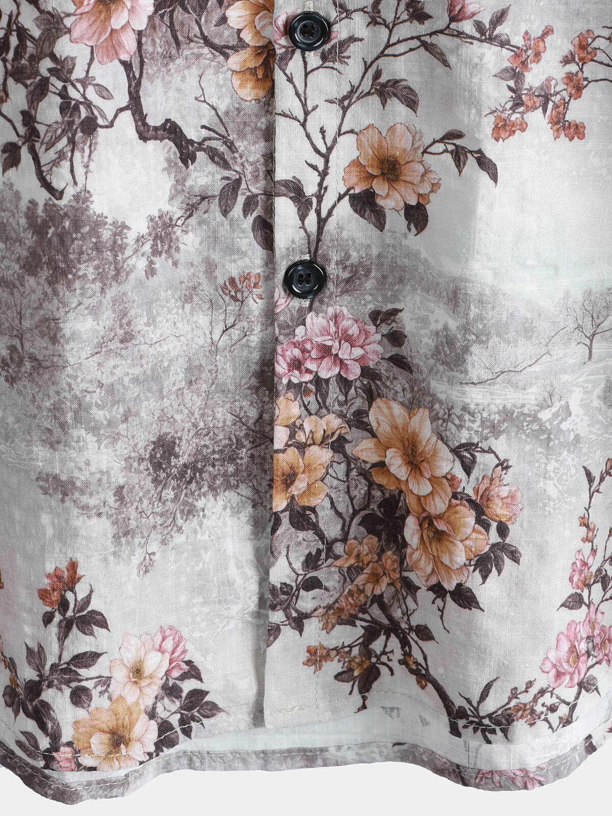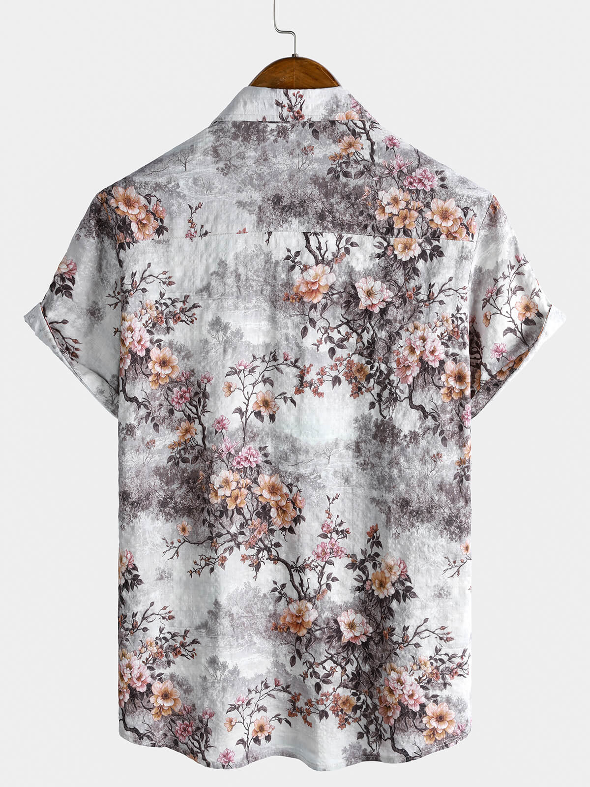 Men's Floral Print Retro Short Sleeve Resort Shirt