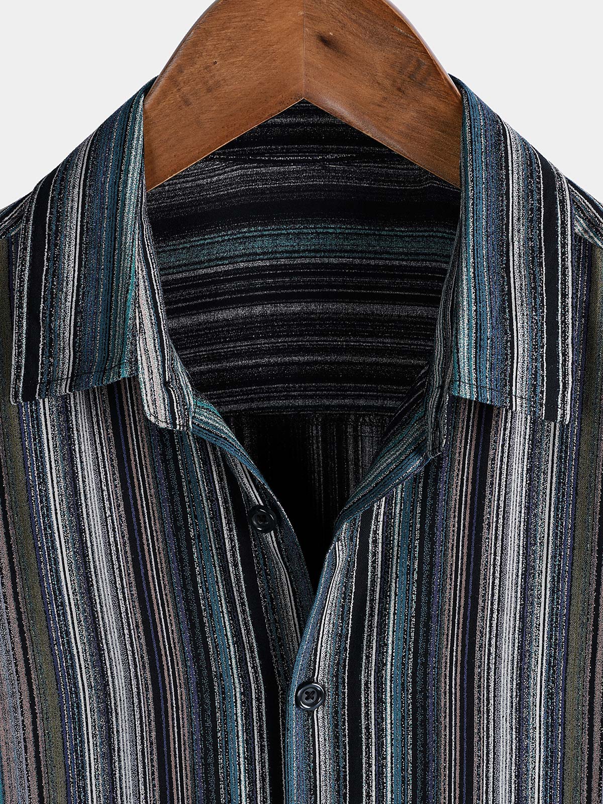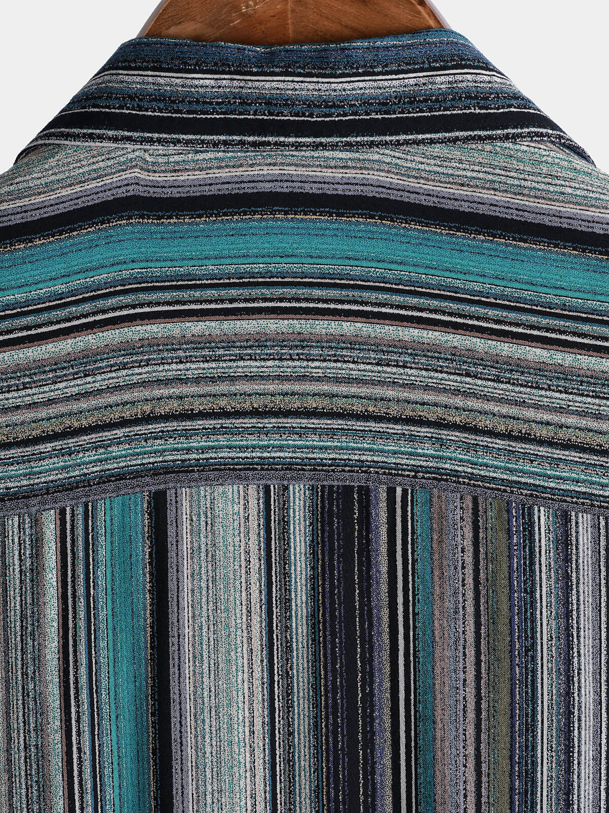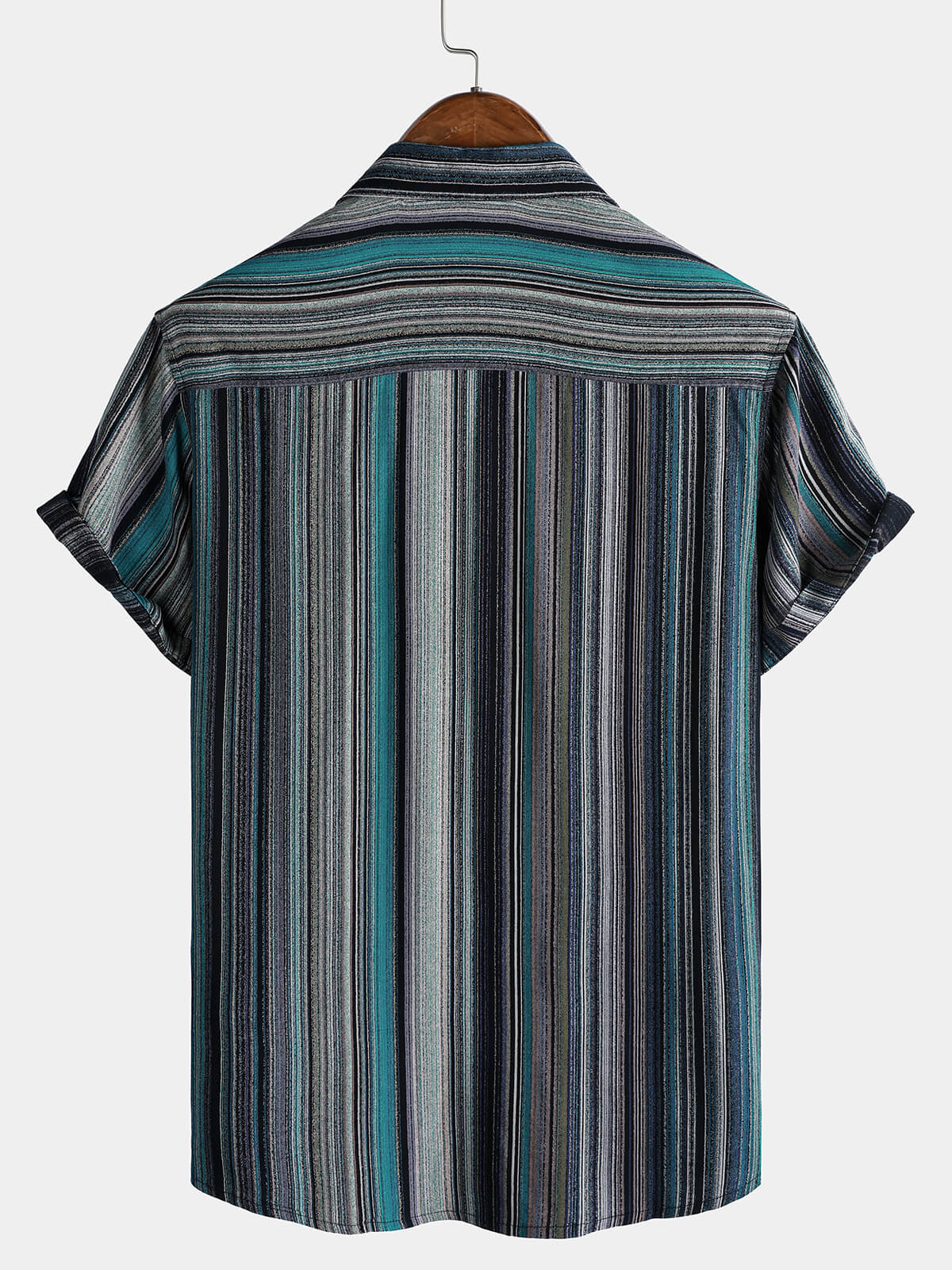 Men's Summer Vintage Green Striped Short Sleeve Shirt