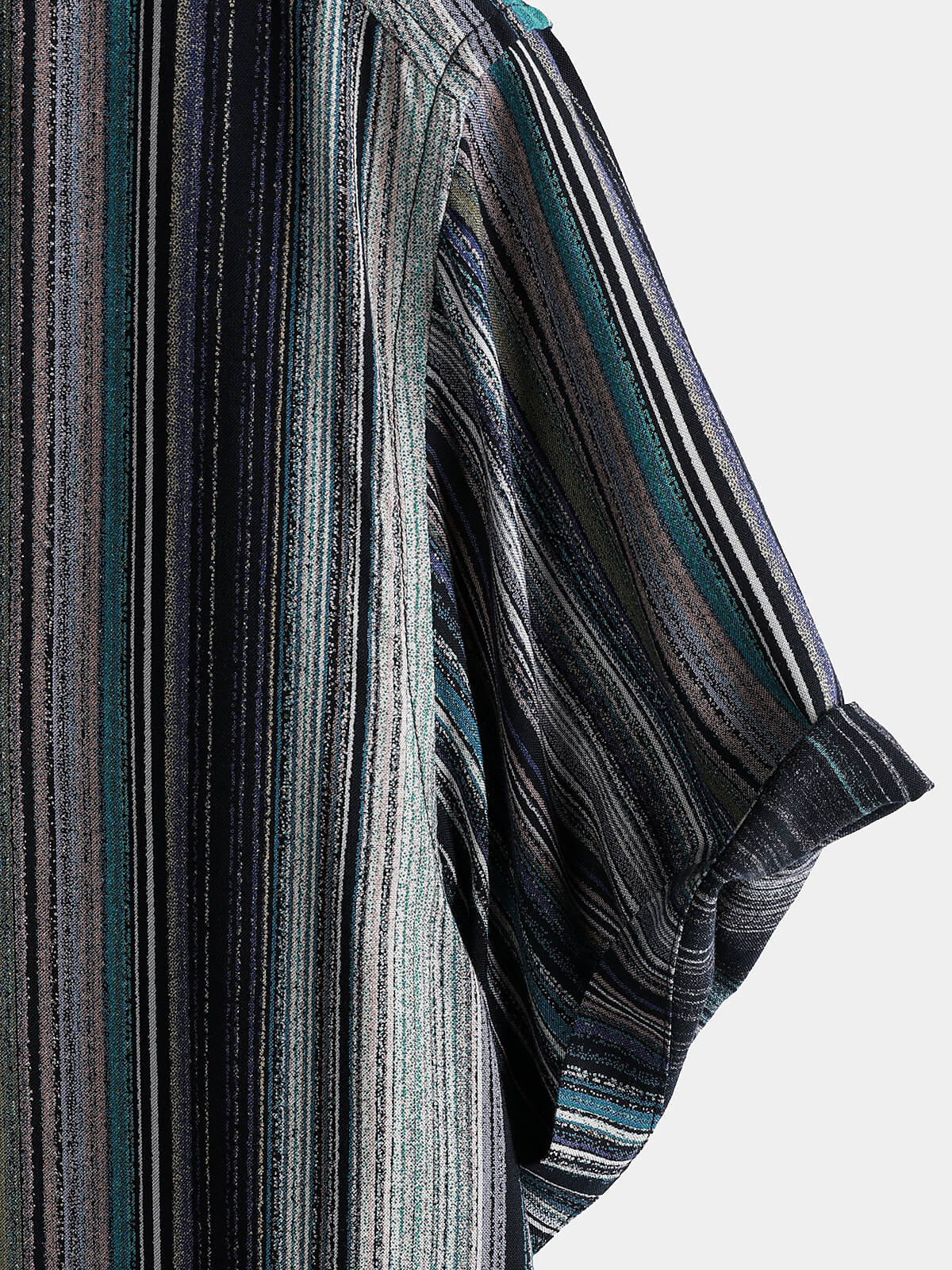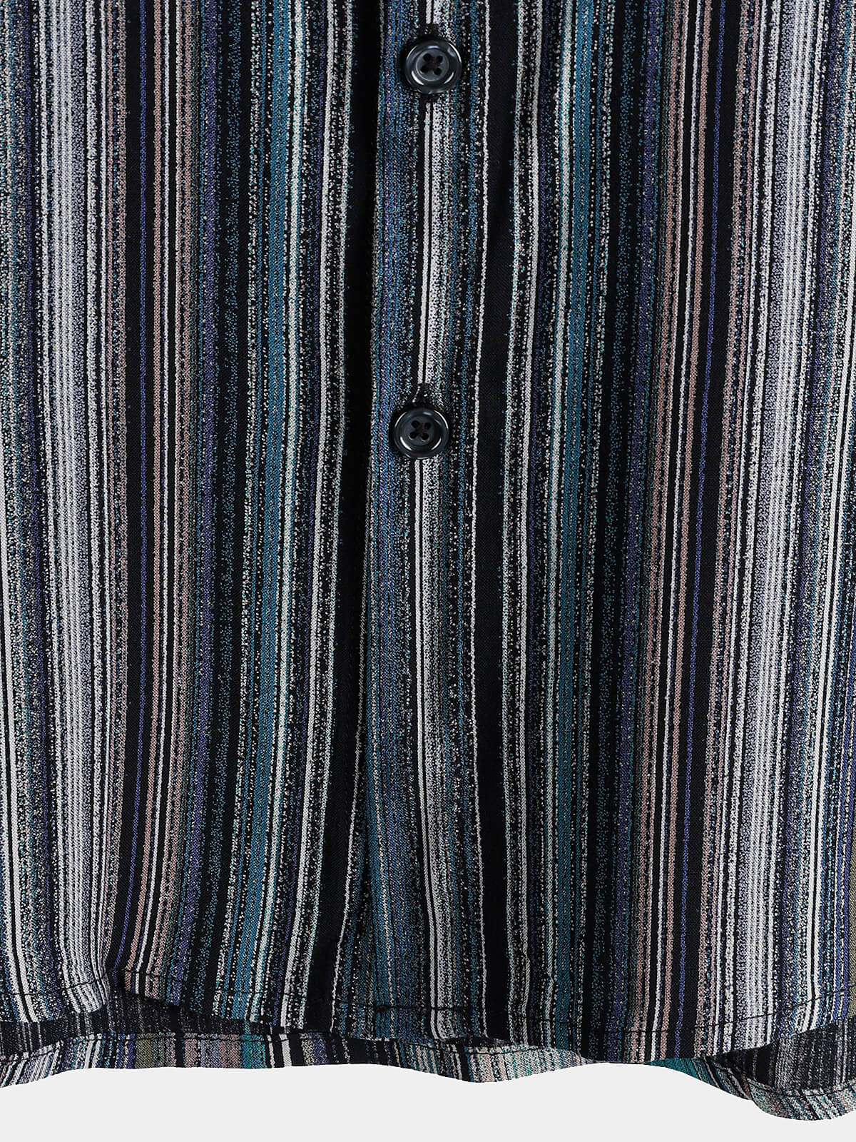 Men's Retro Striped Print Resort Short Sleeve Shirt