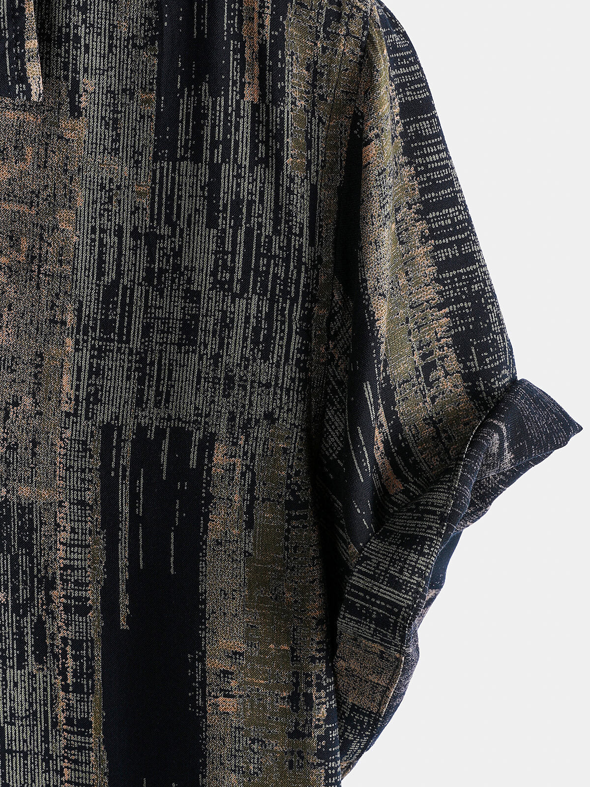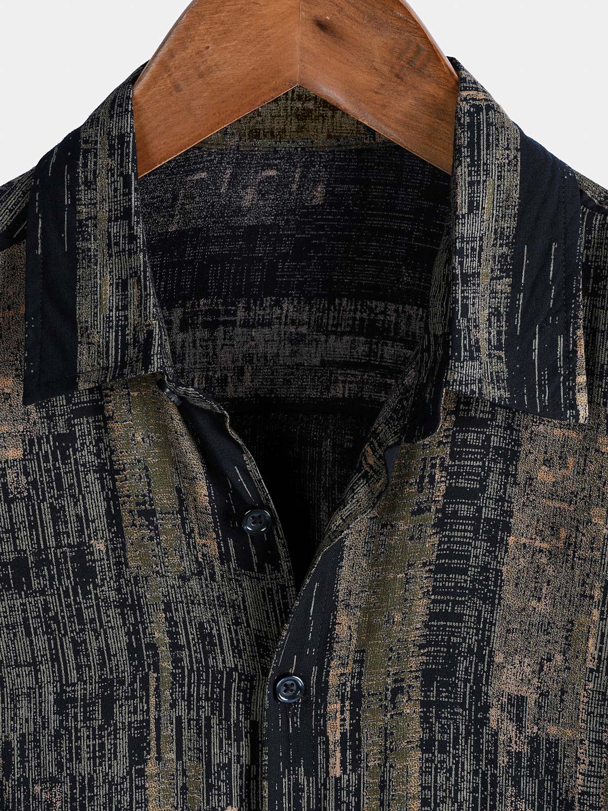 Men's Retro Striped Print Holiday Short Sleeve Shirt