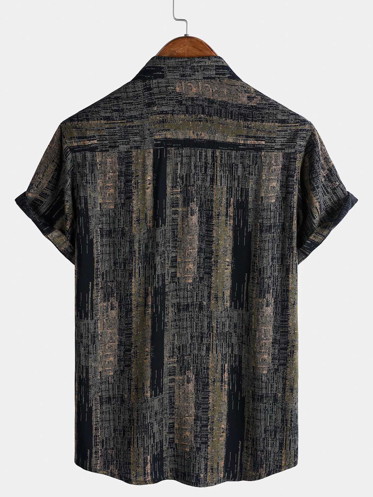 Men's Vintage Short Sleeve Summer Button Up Shirt