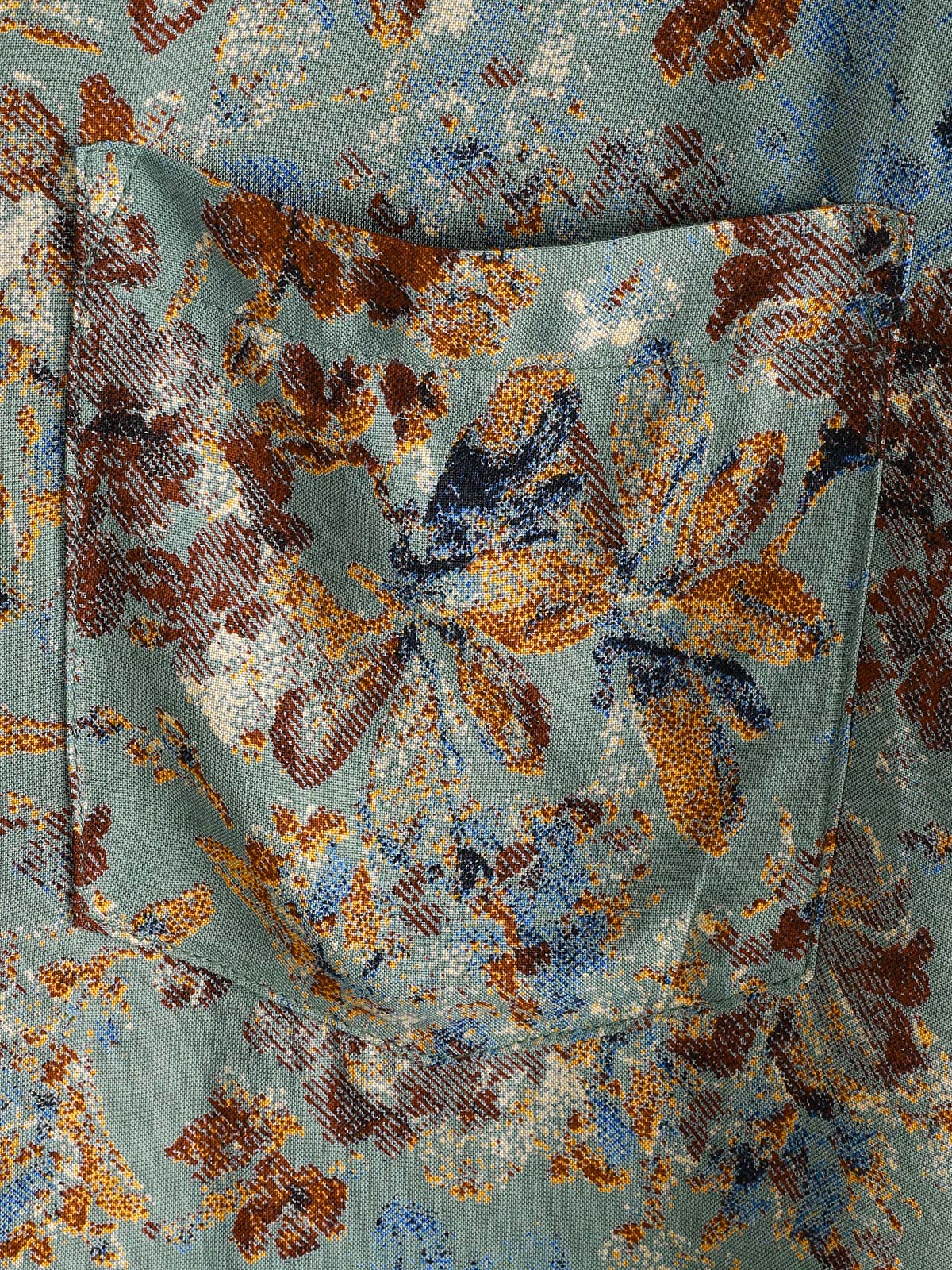 Men's Floral Print Rayon Pocket Short Sleeve Shirt