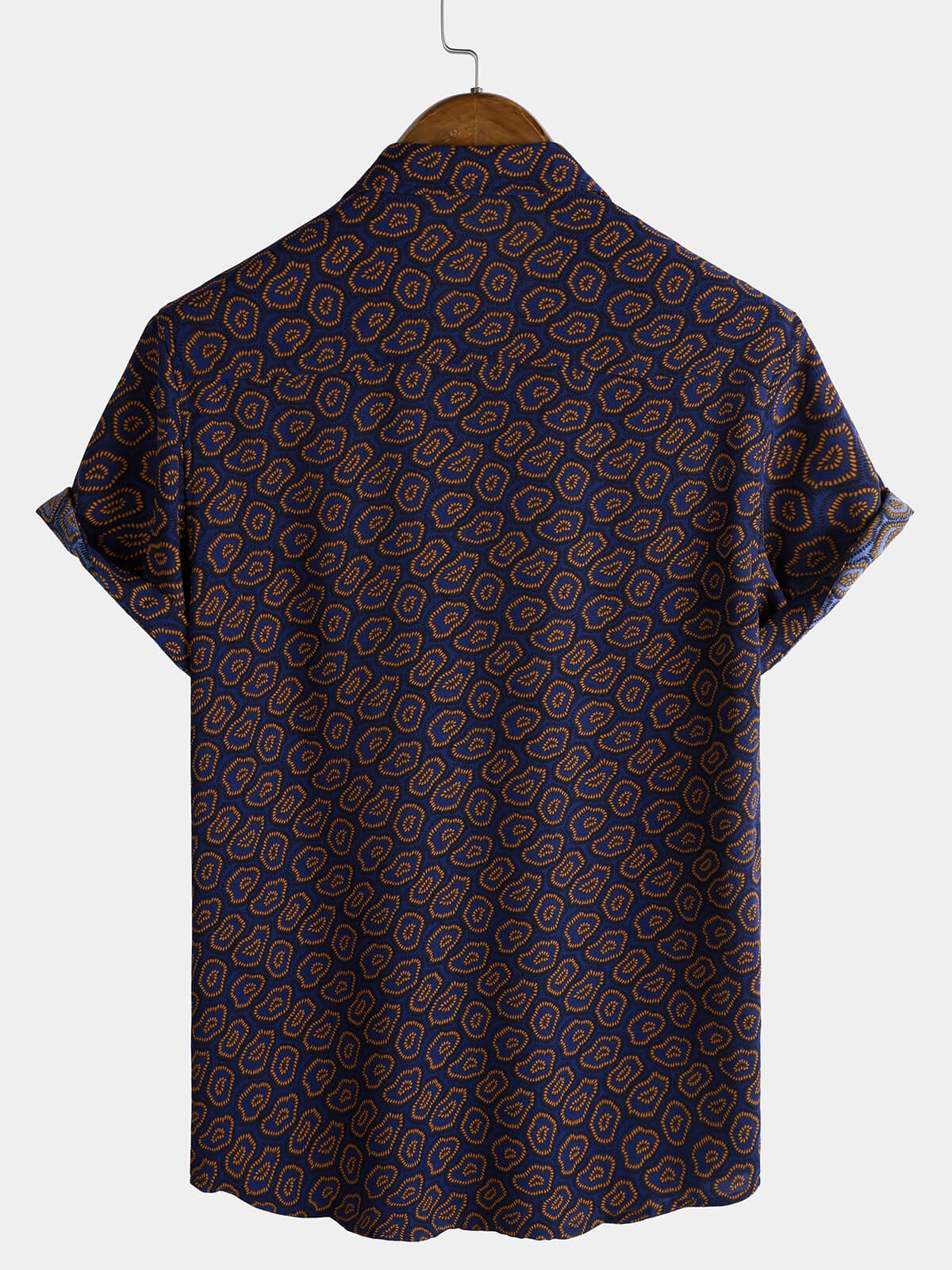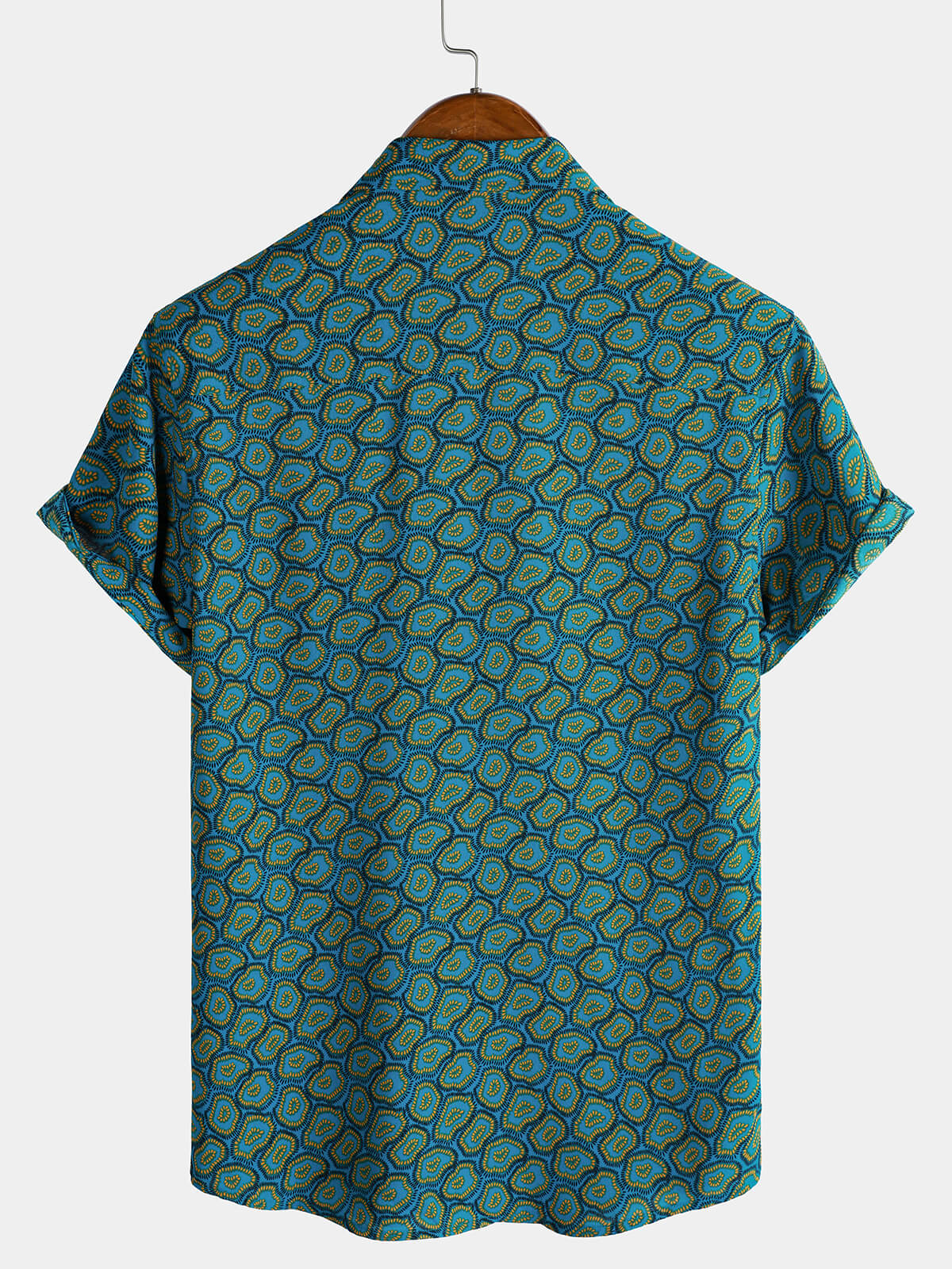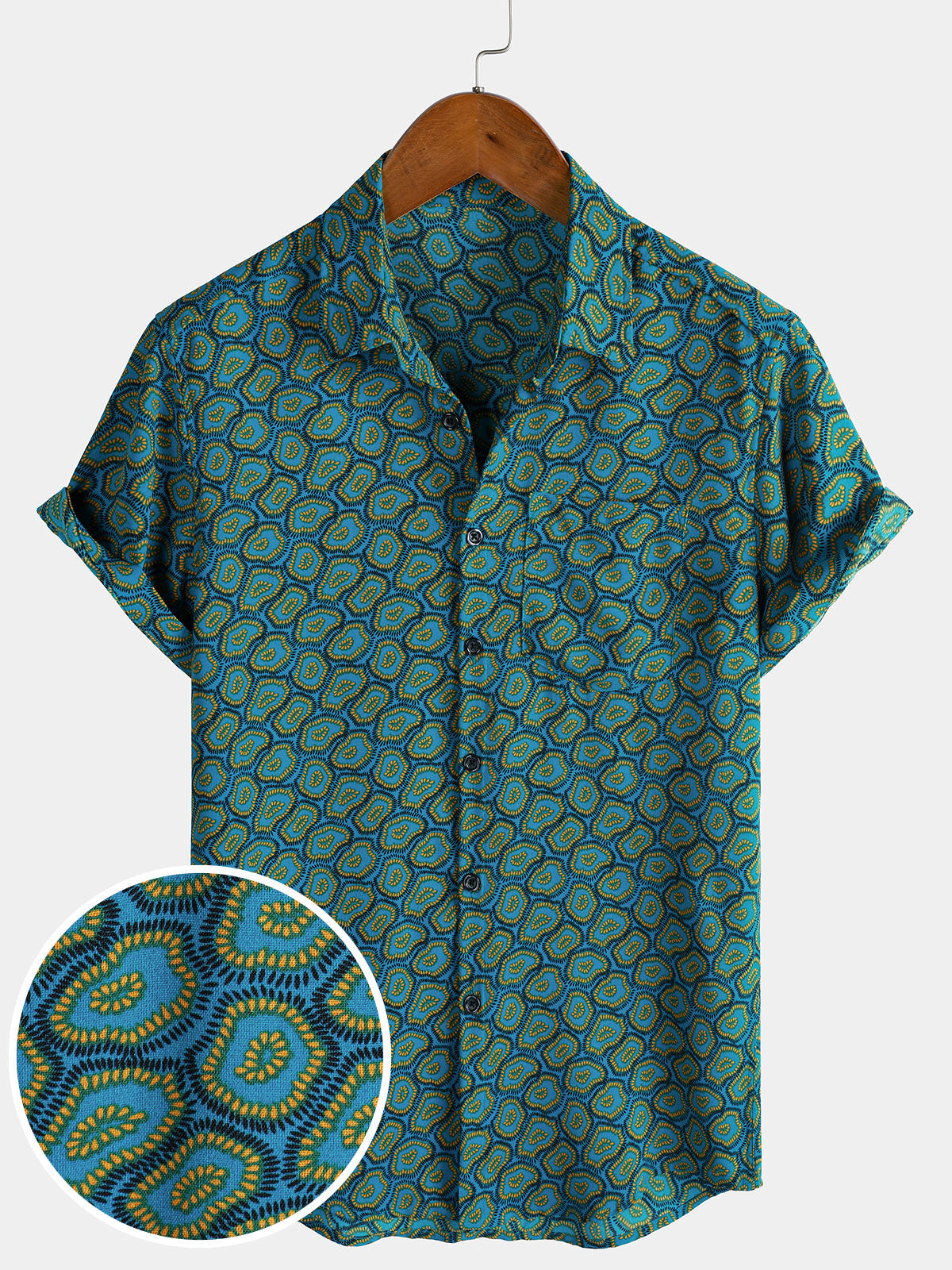 Men's Retro Geometric Print Pocket Short Sleeve Holiday Shirt