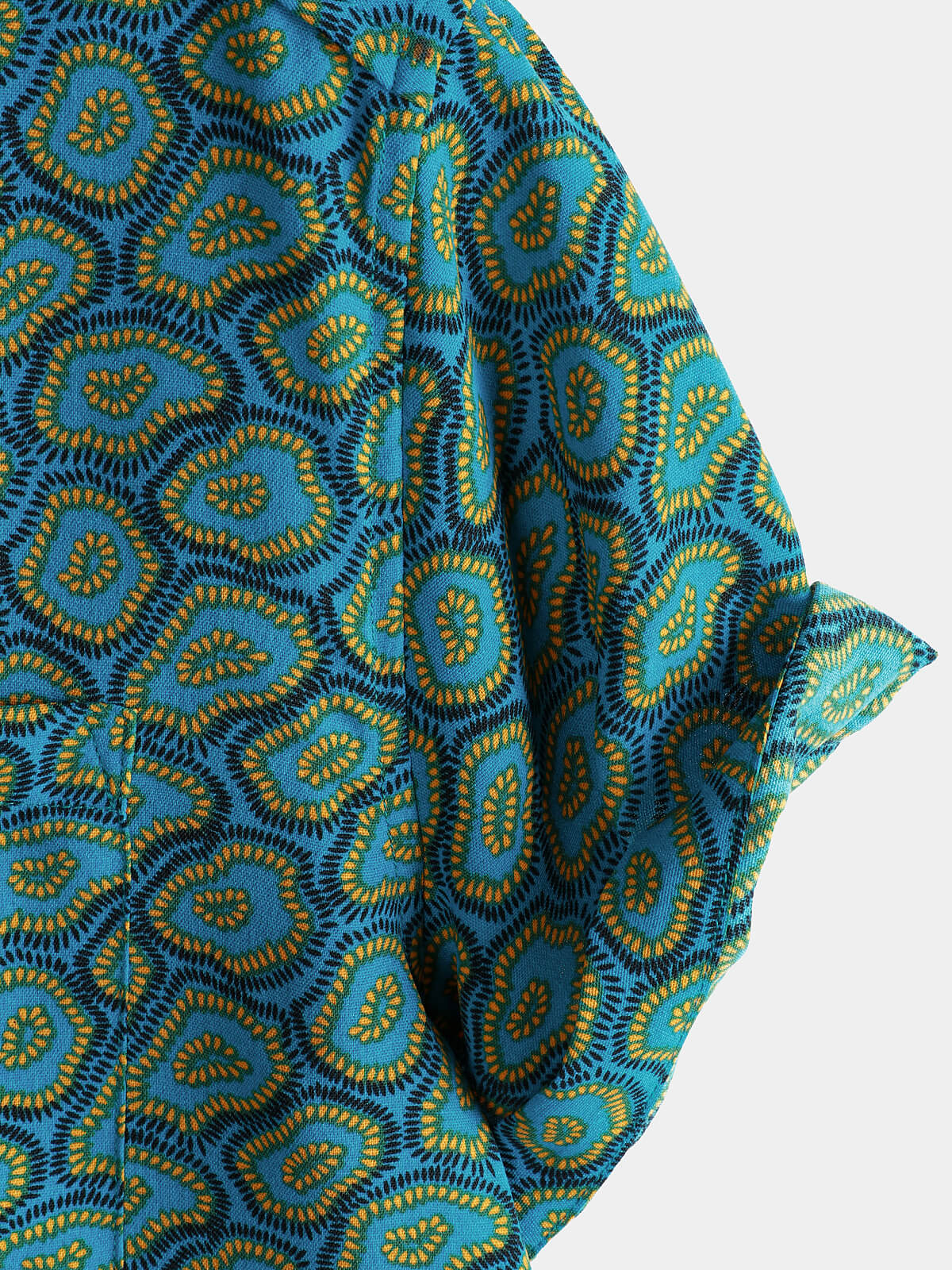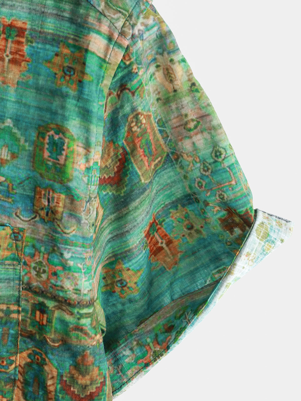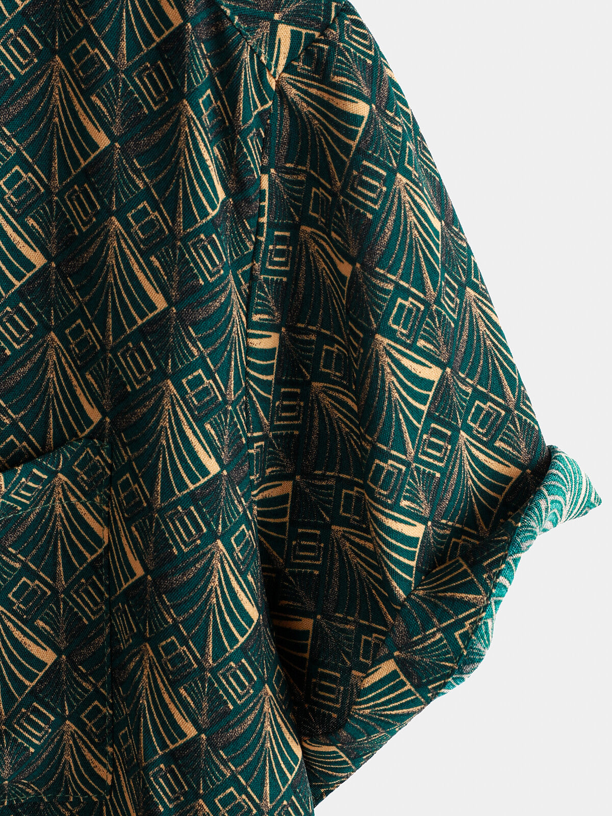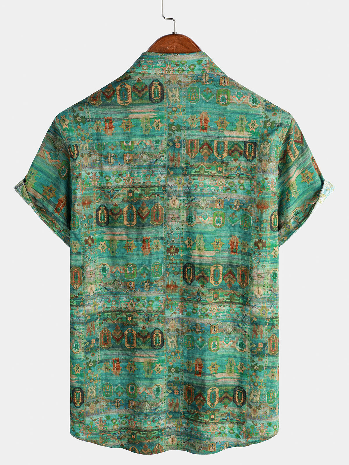 Men's Retro Geometric Print Pocket Short Sleeve Holiday Shirt