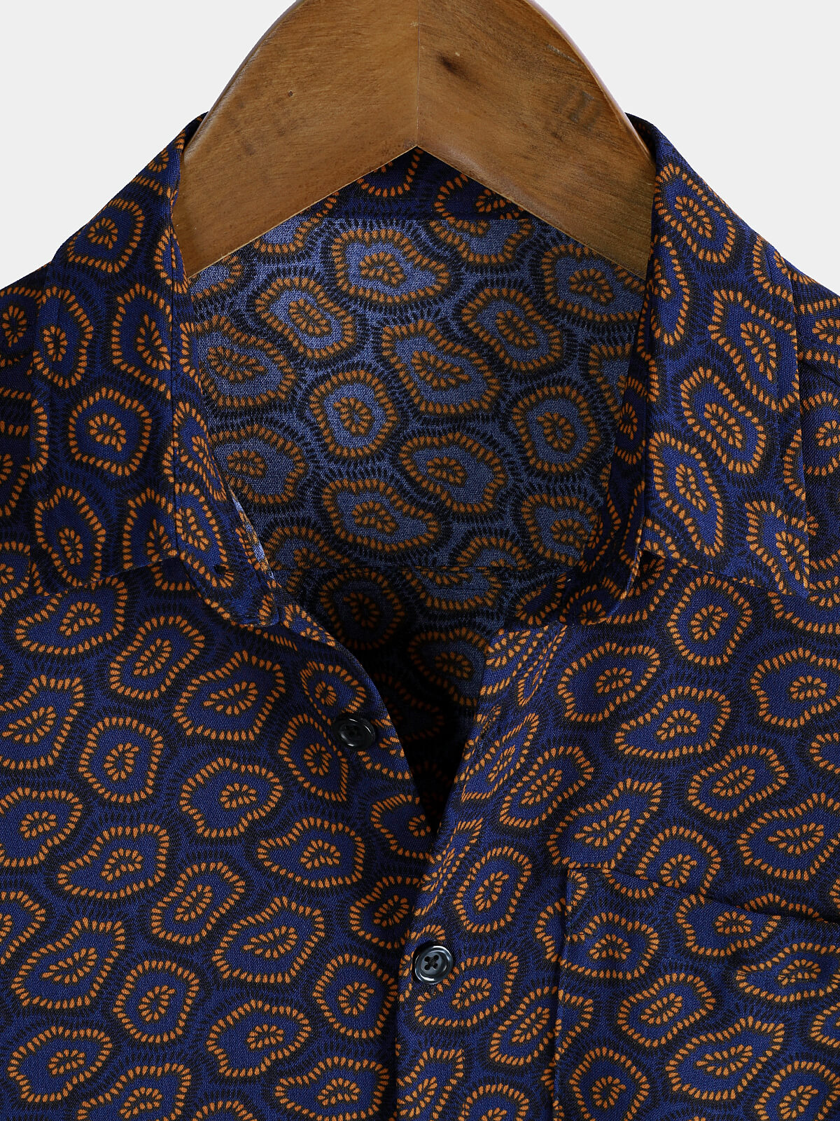 Men's Retro Blue Short Sleeve Summer Button Up Shirt