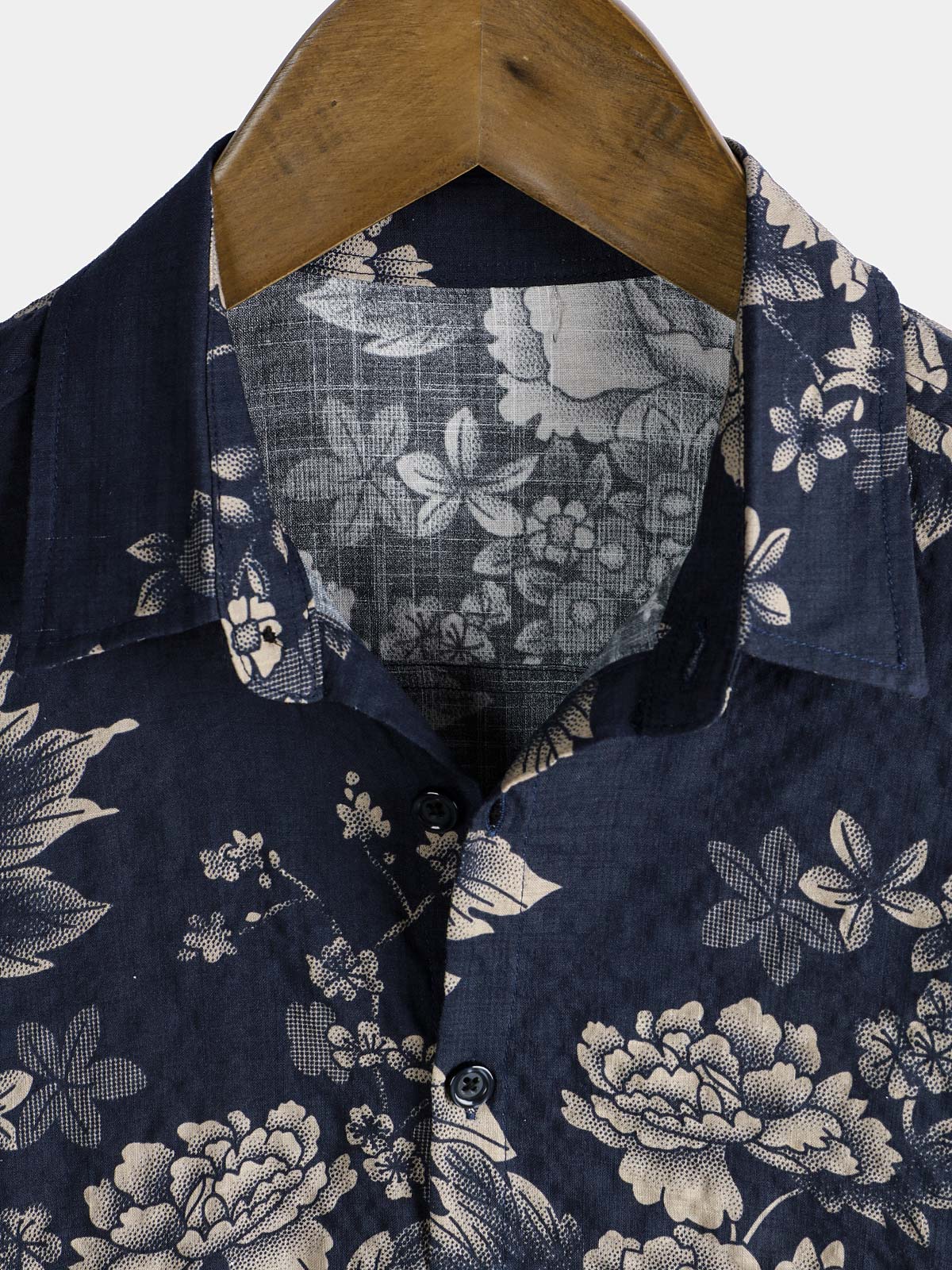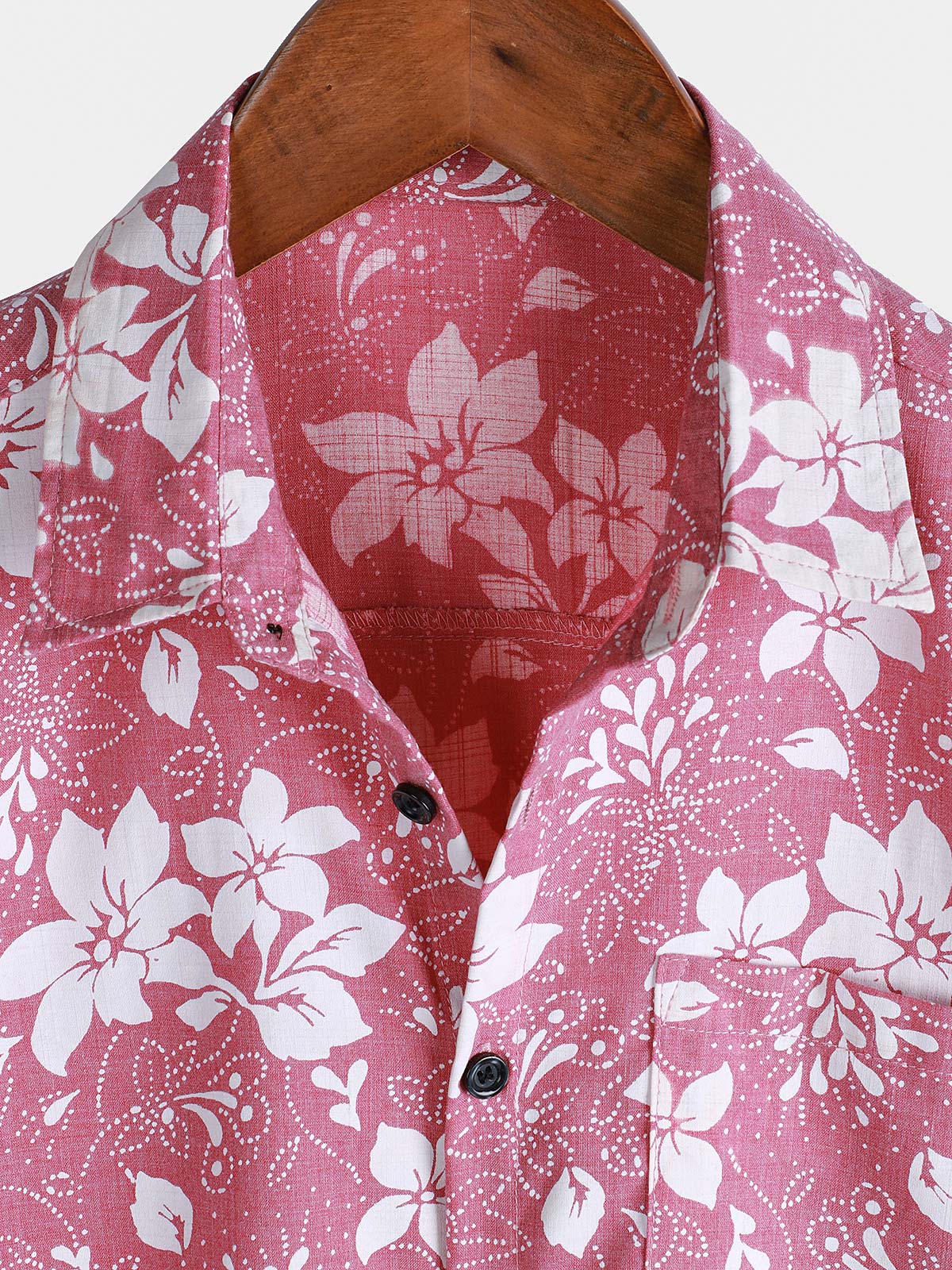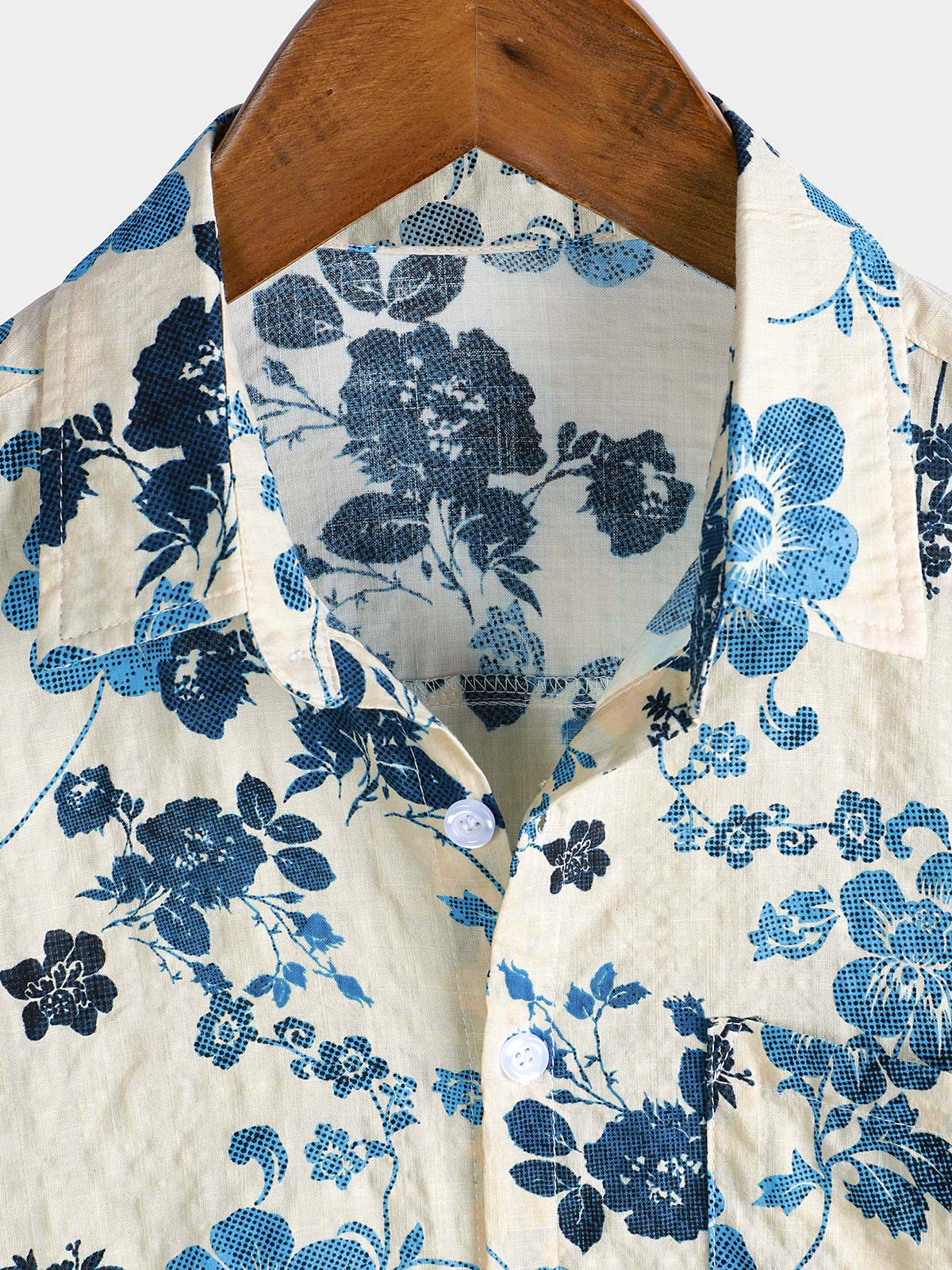 Men's Cotton Holiday Floral Print Beach Short Sleeve Shirt