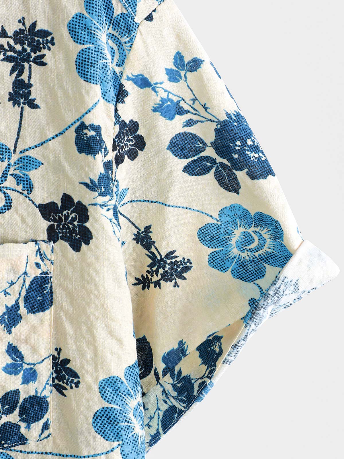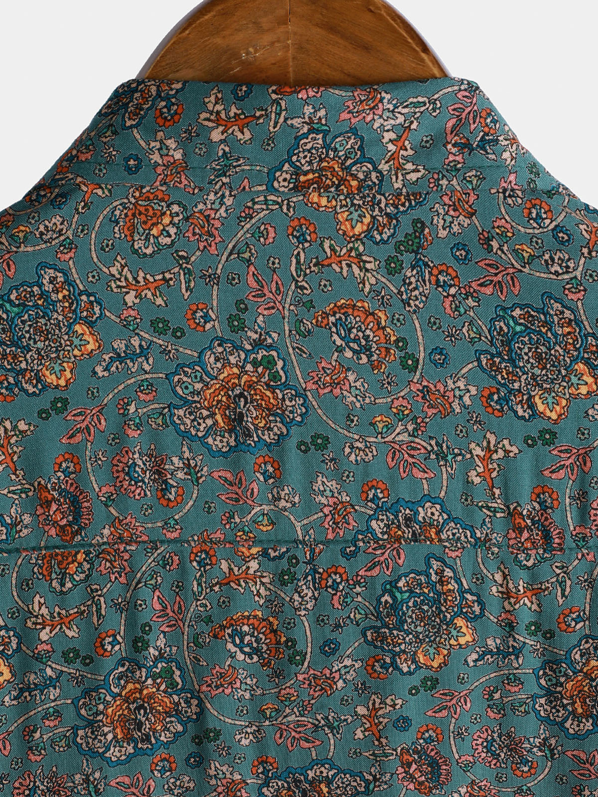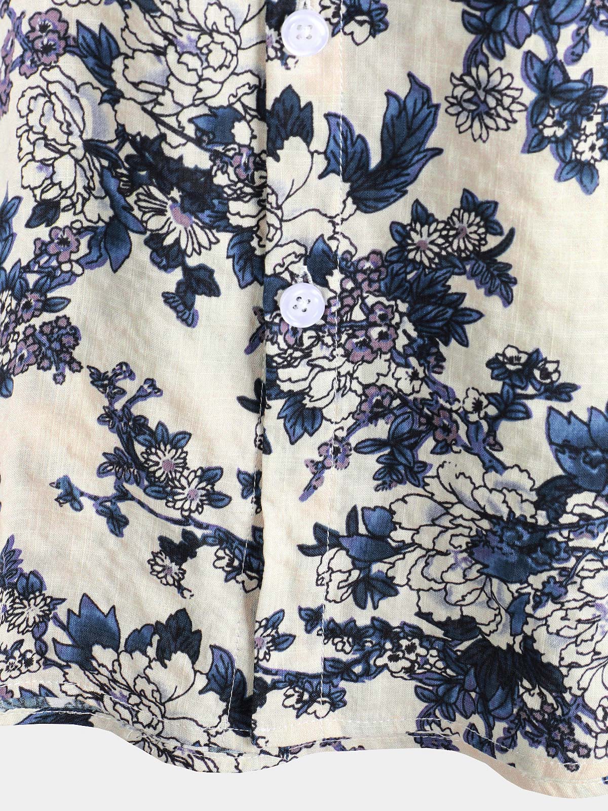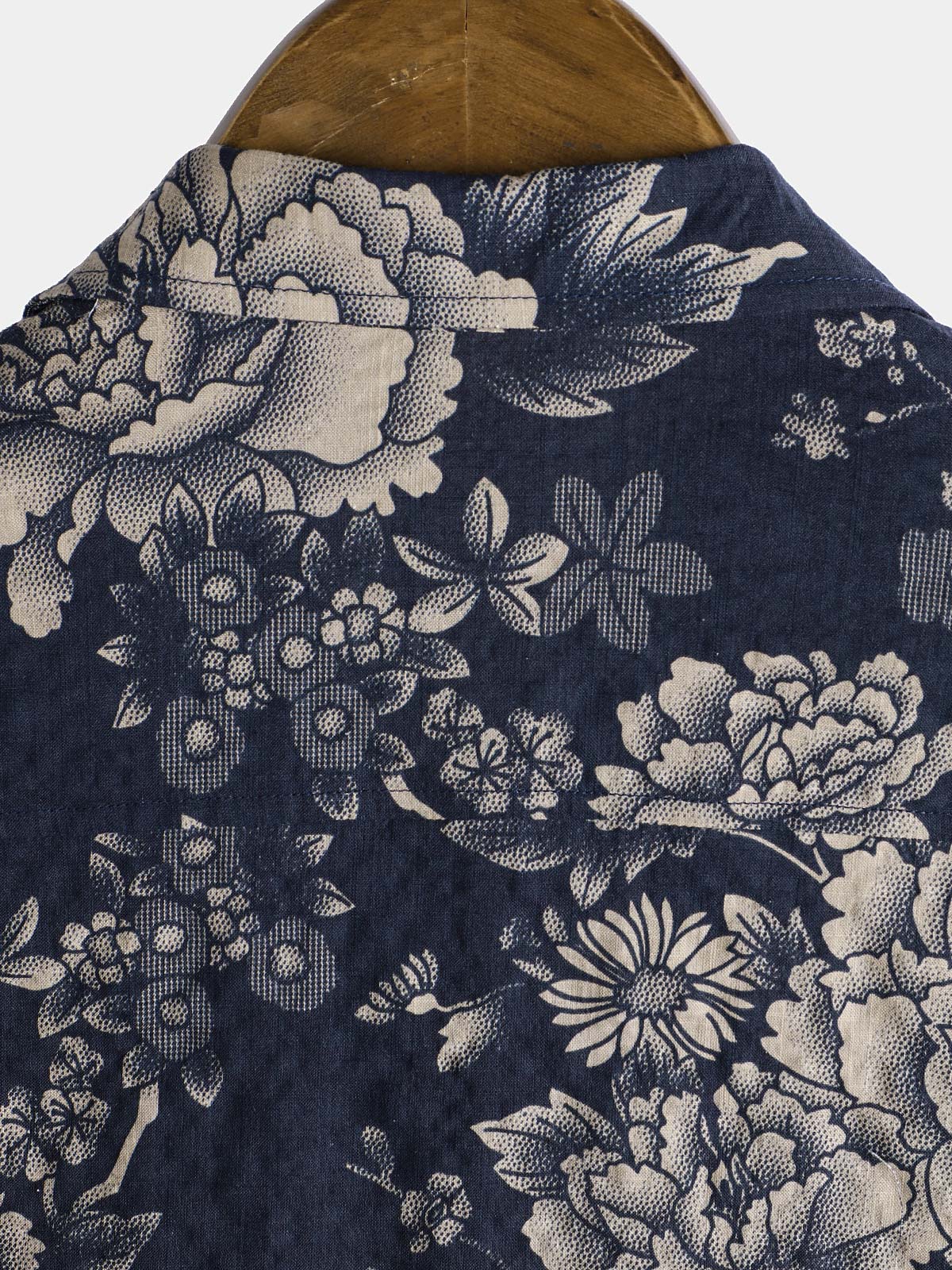 Men's Cotton Holiday Floral Print Beach Short Sleeve Shirt