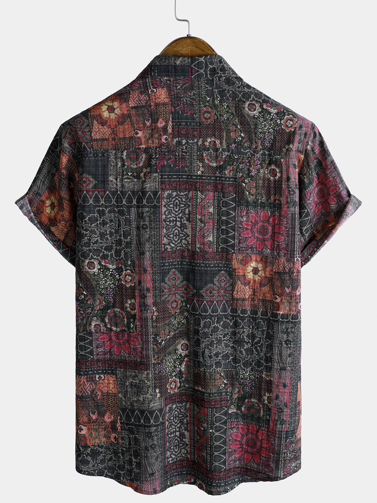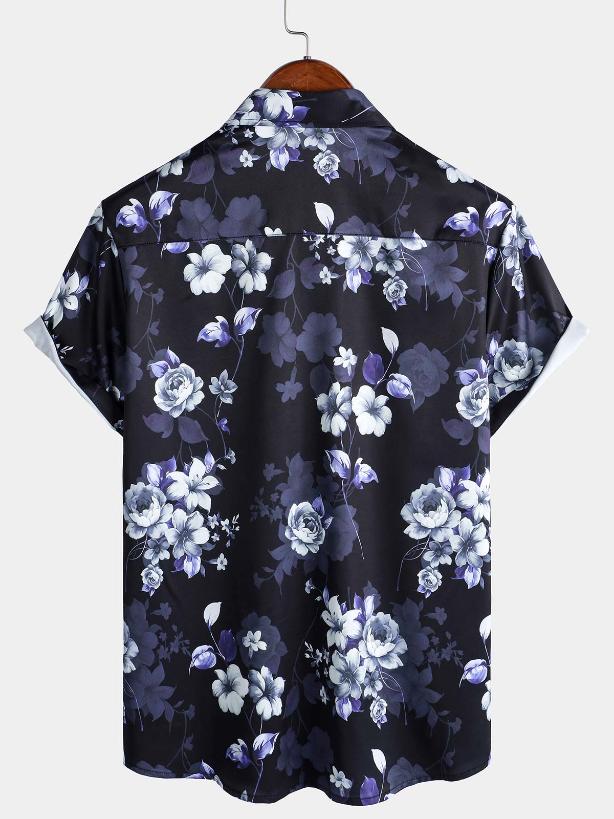 Men's Retro Floral Short Sleeve Summer Button Up Shirt