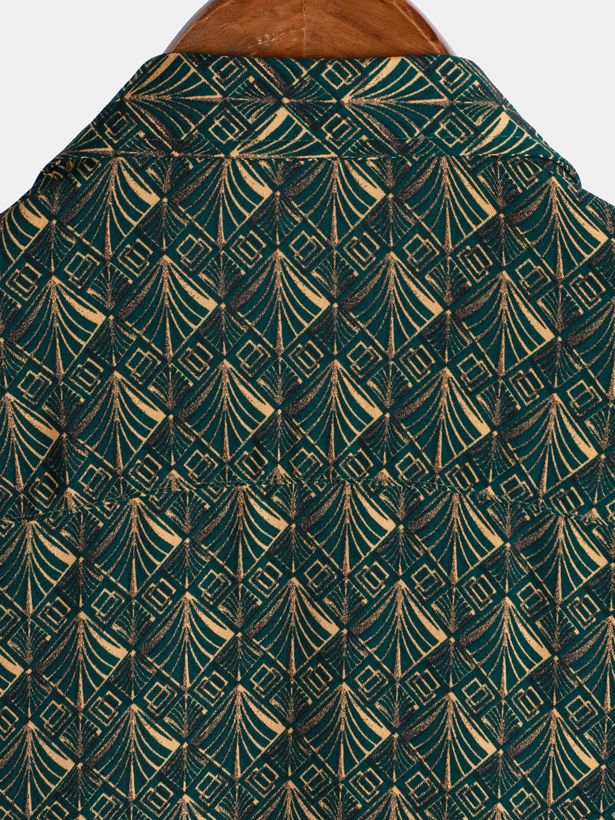 Men's Green Vintage Short Sleeve Breathable Button Up Shirt