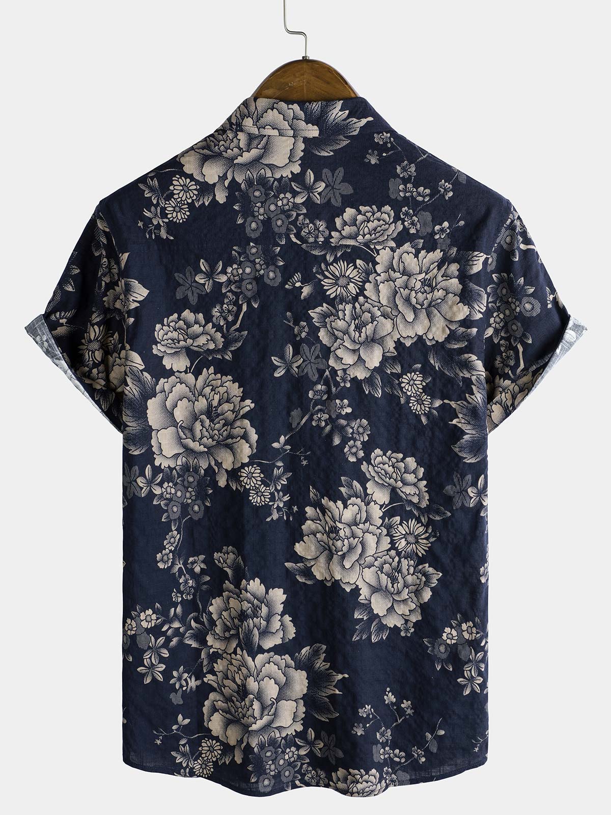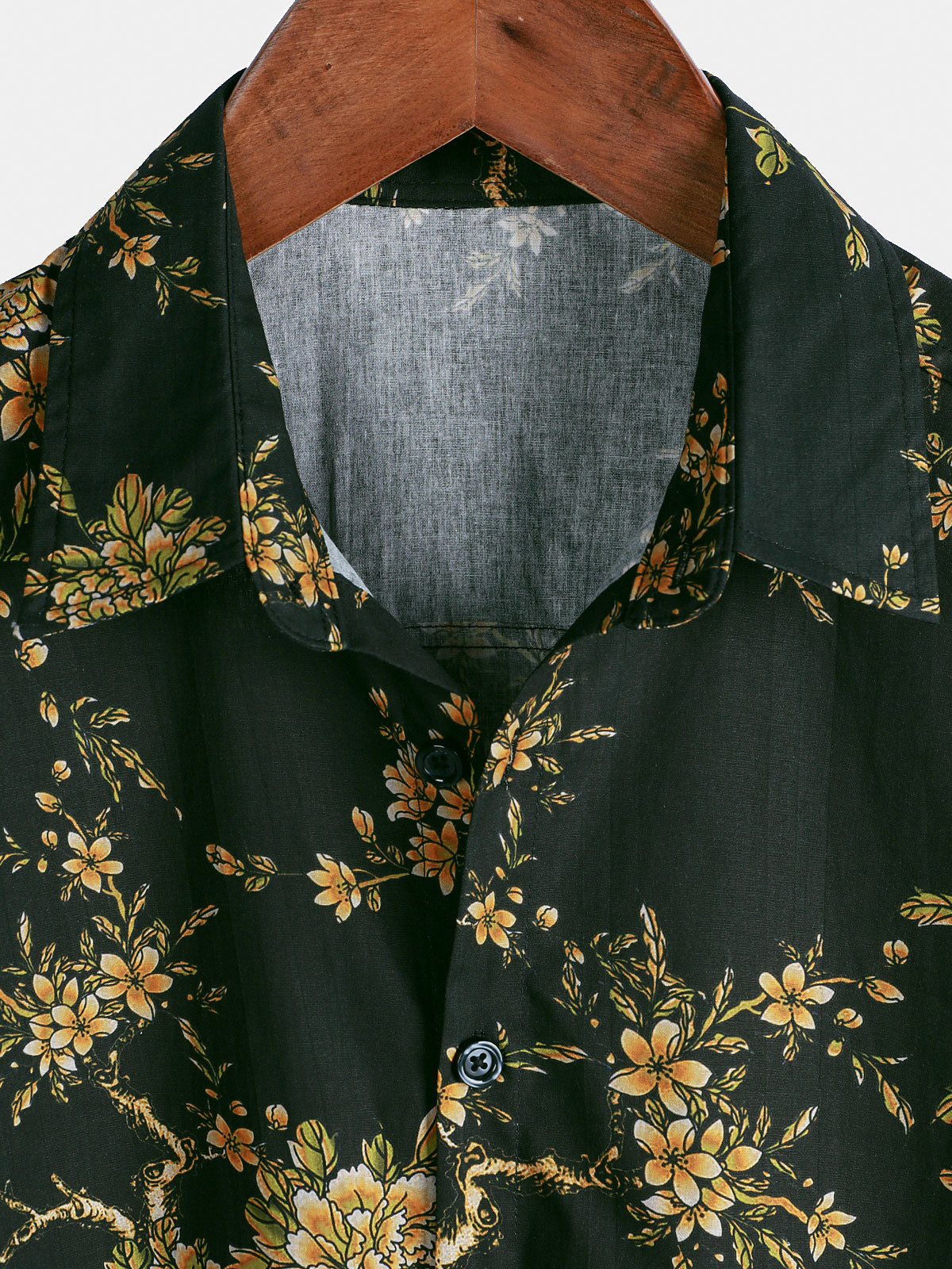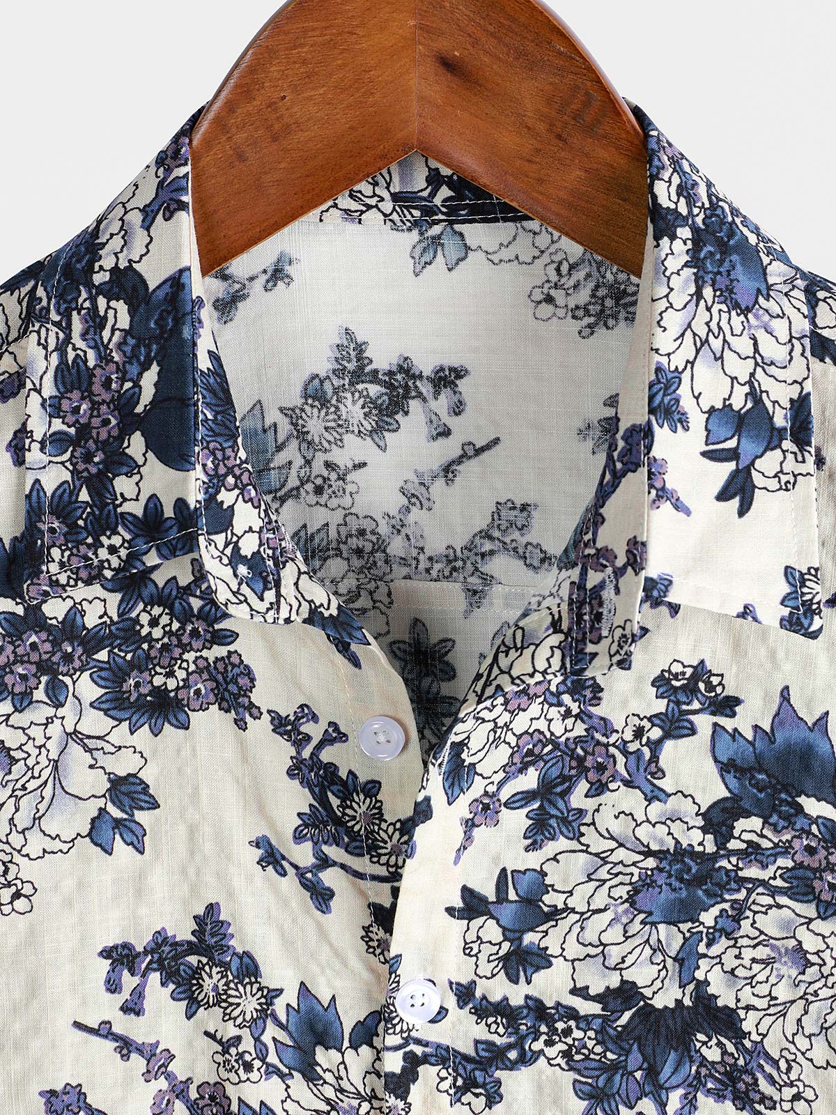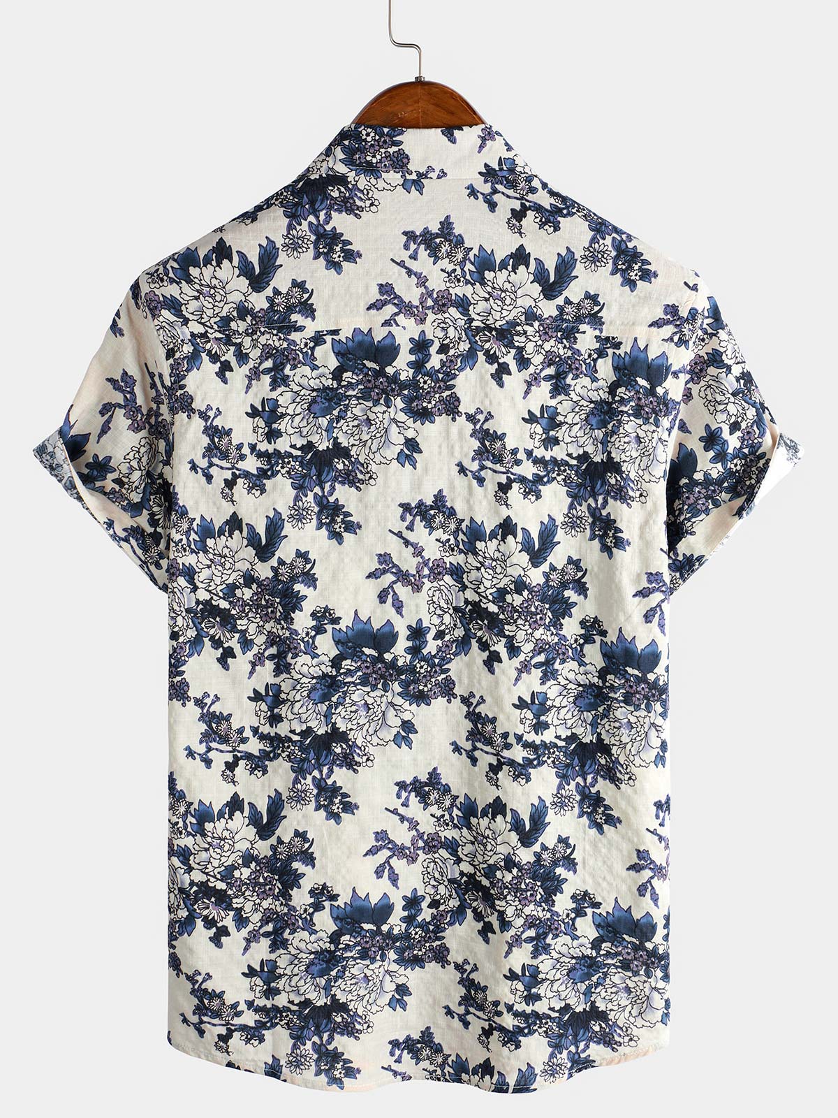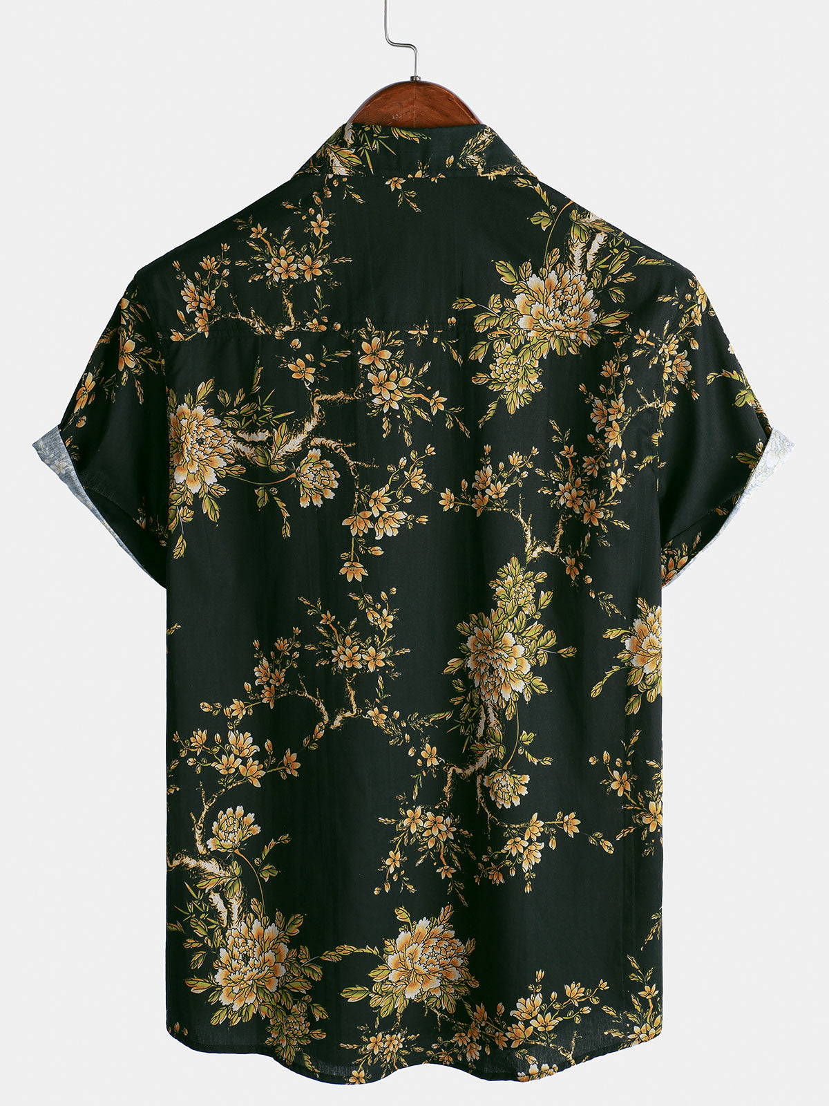 Men's Floral Vacation Cotton Short Sleeve Shirt