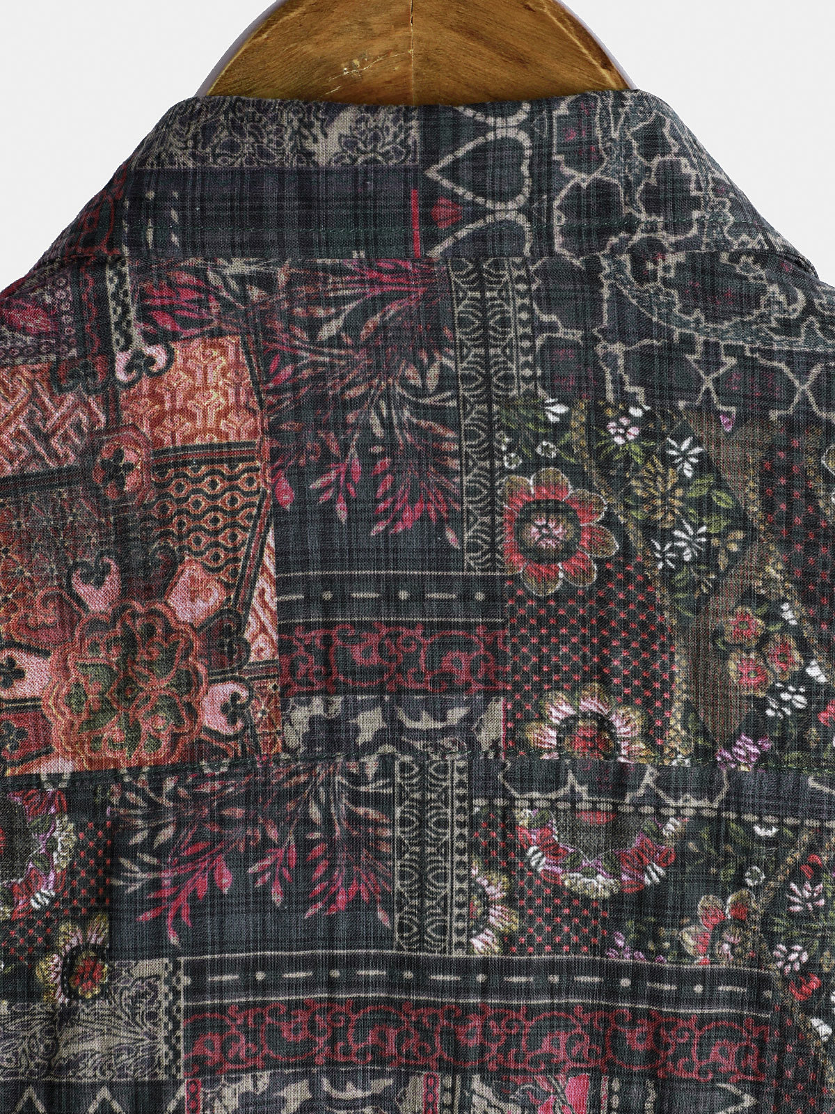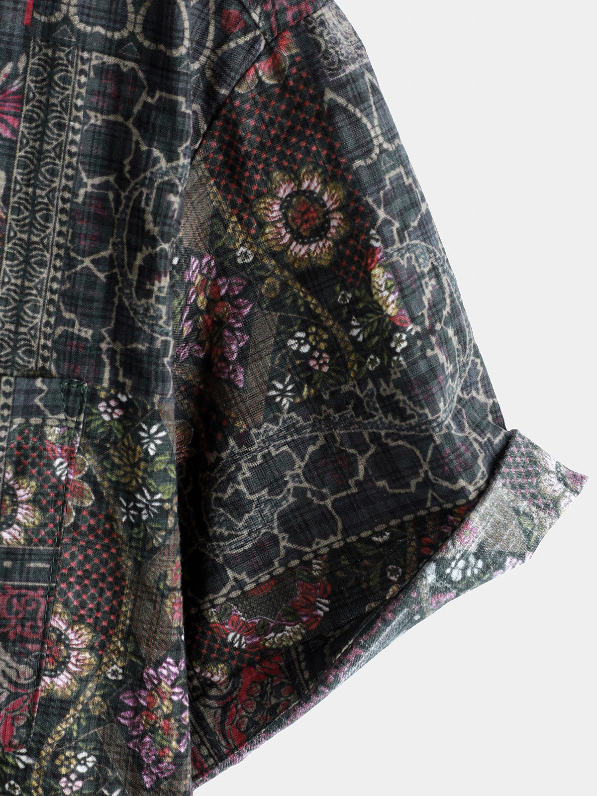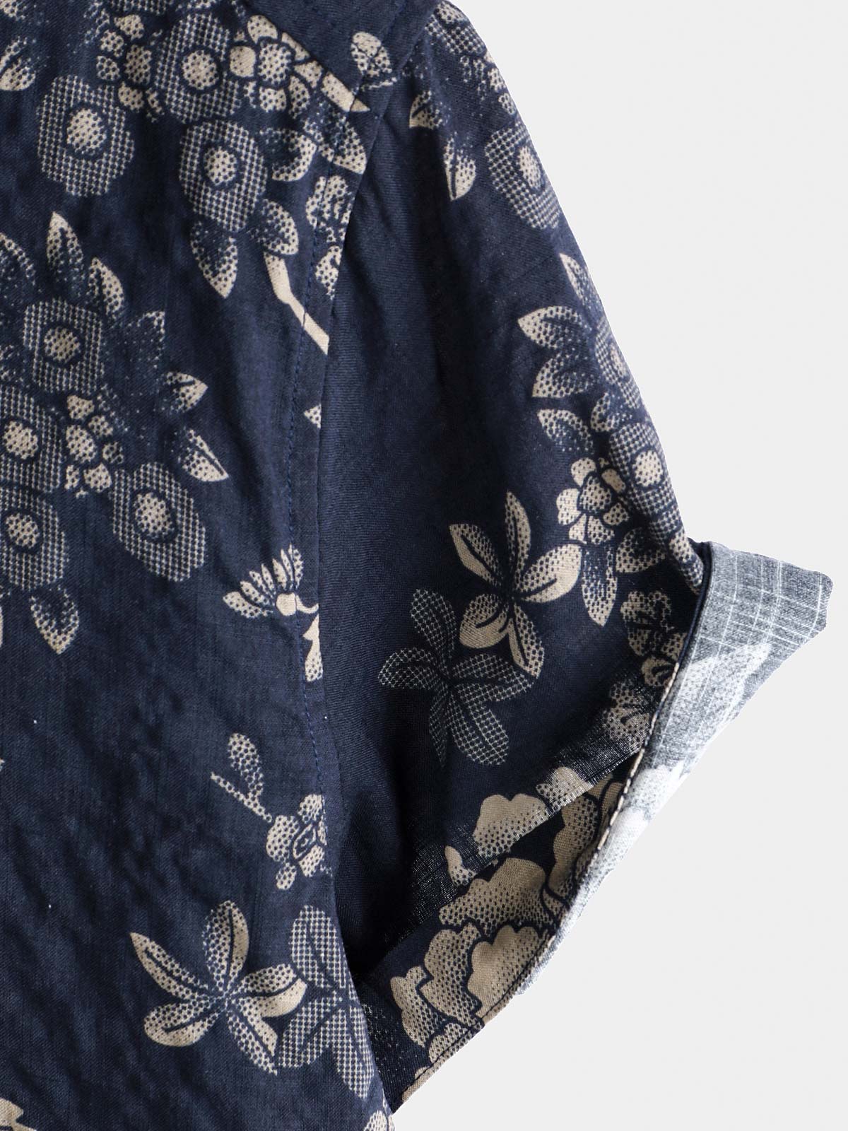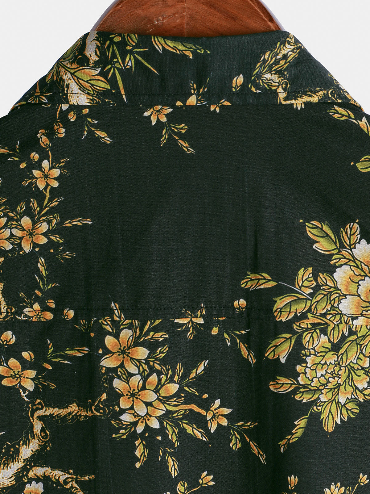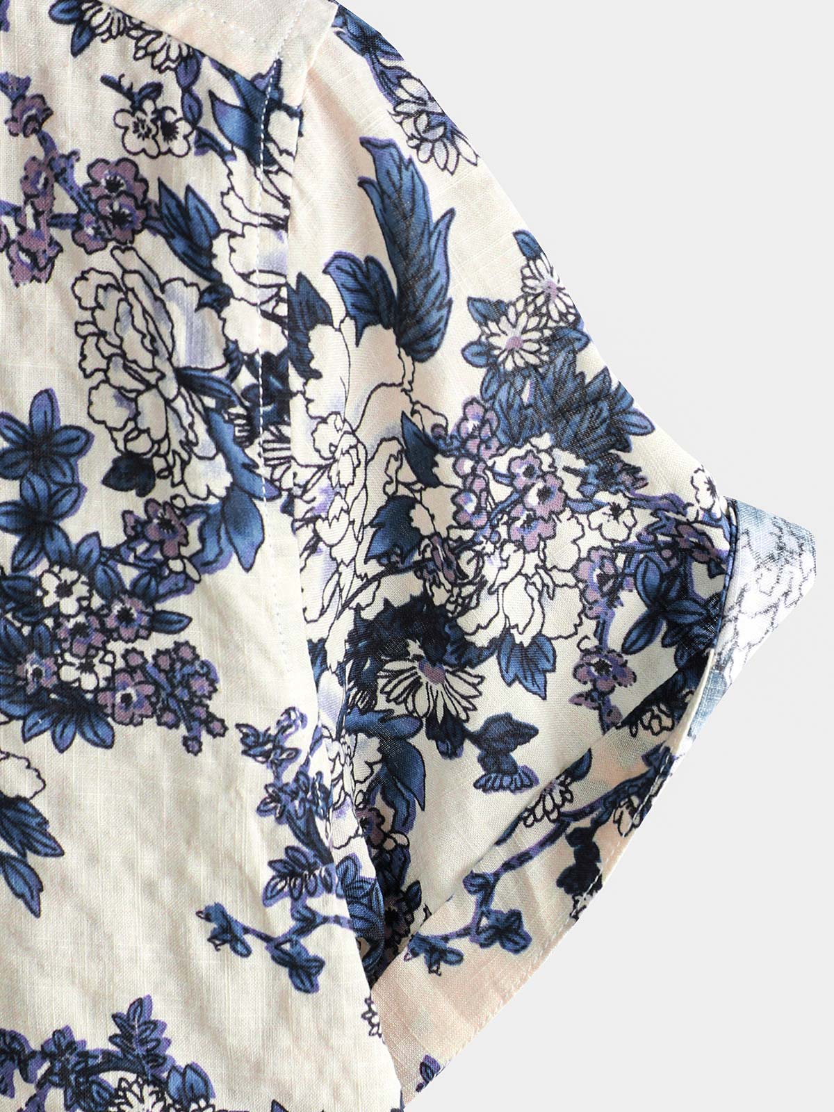 Men's Floral Vacation Cotton Short Sleeve Shirt