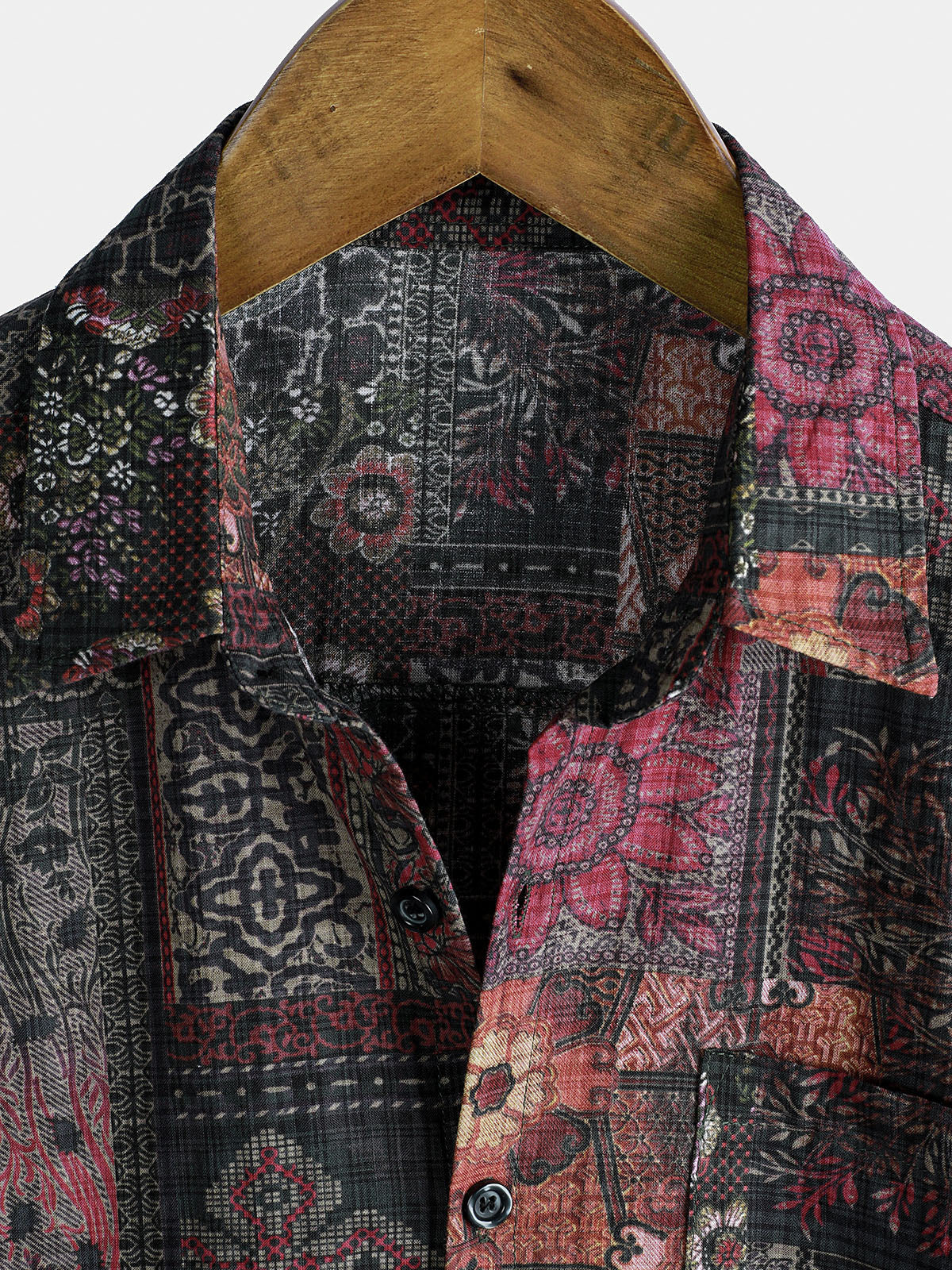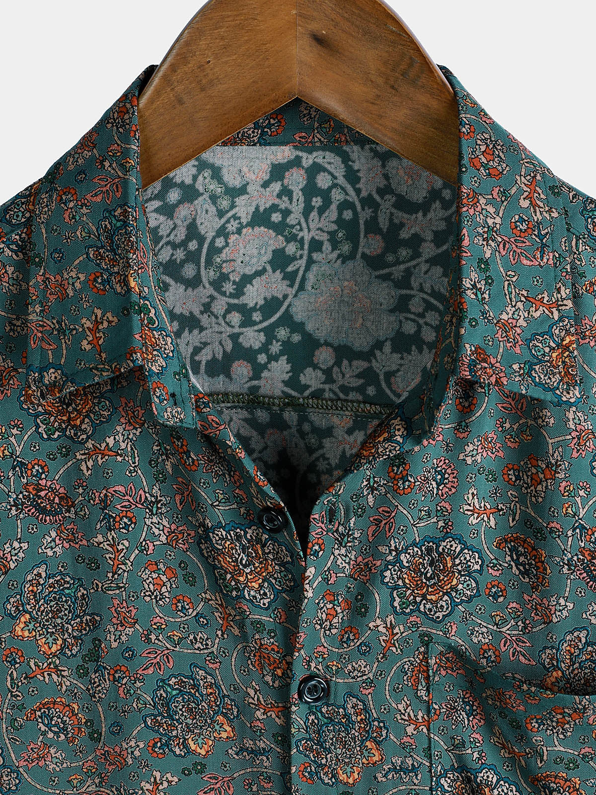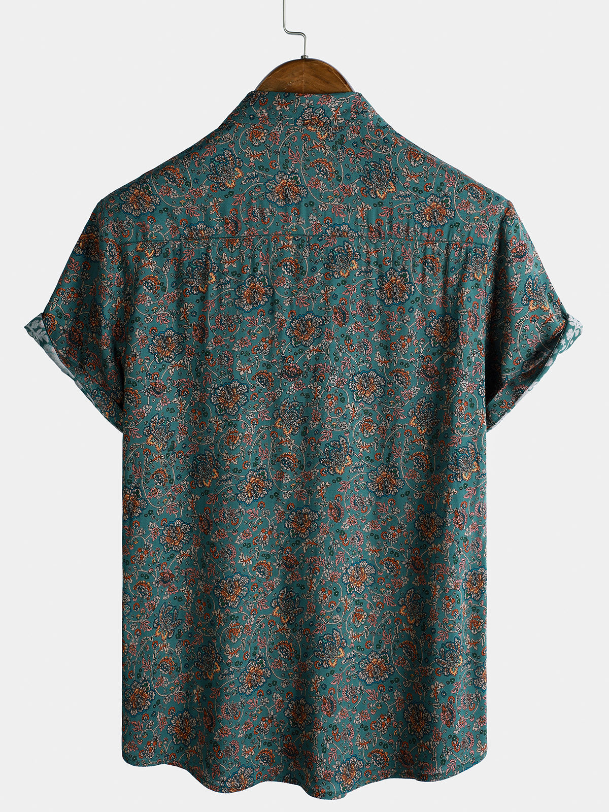Men's Paisley Vintage Floral 70s Retro Soft Short Sleeve Shirt