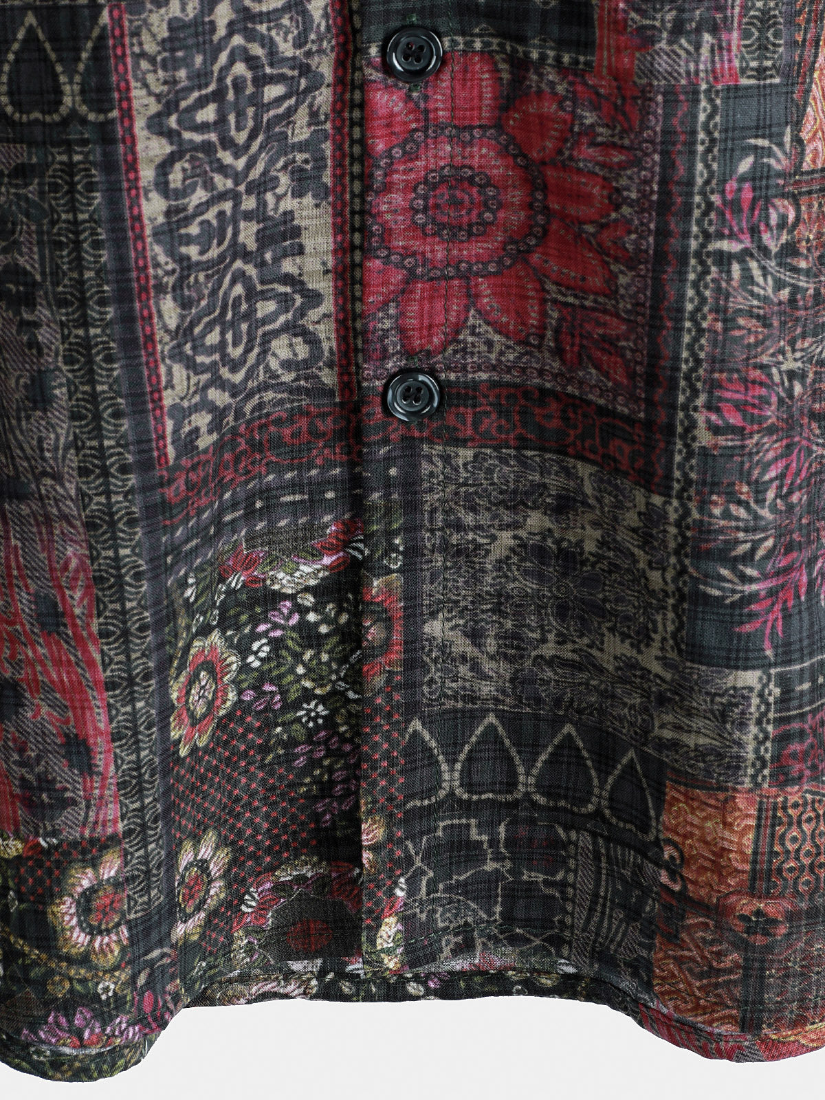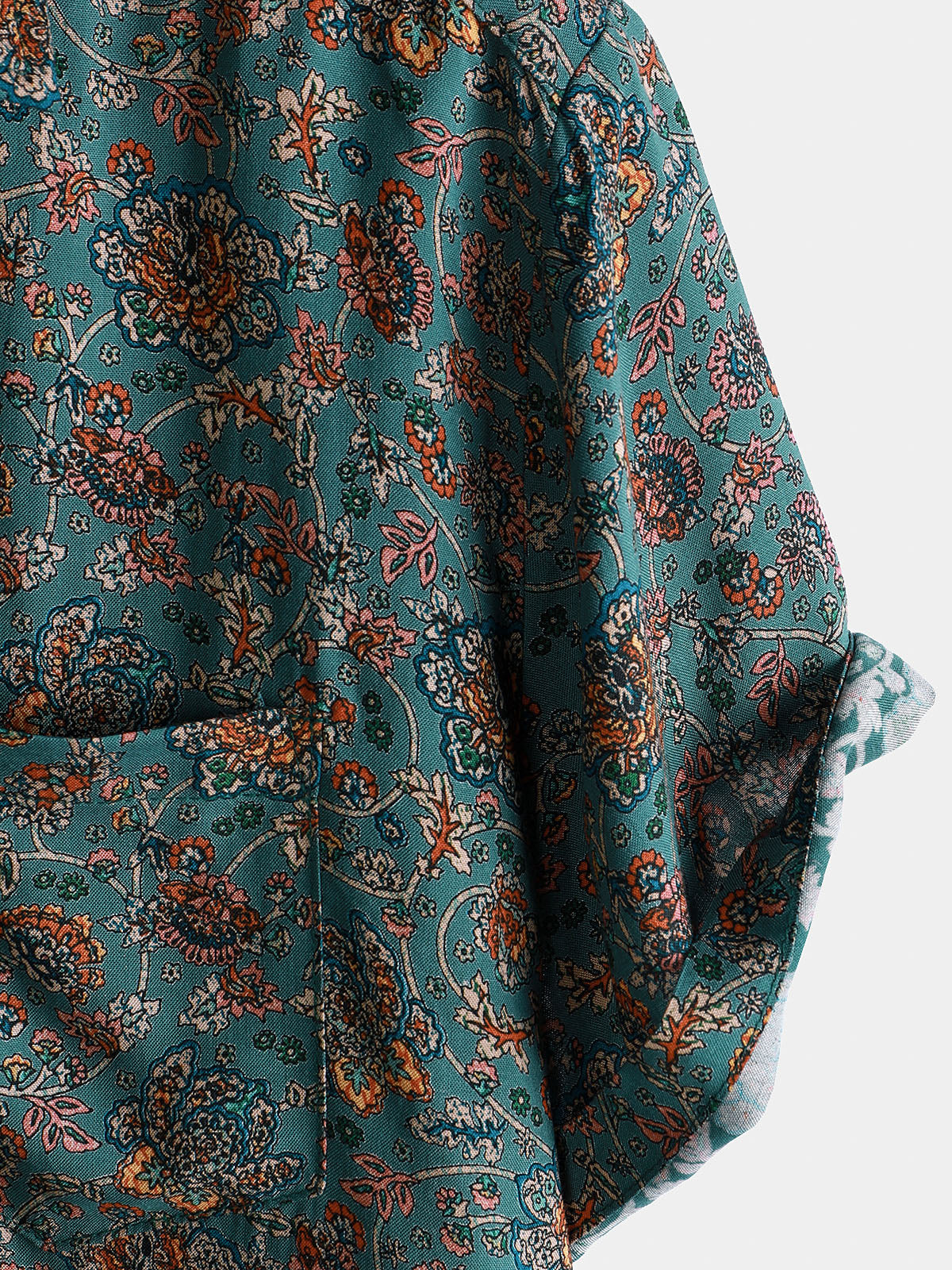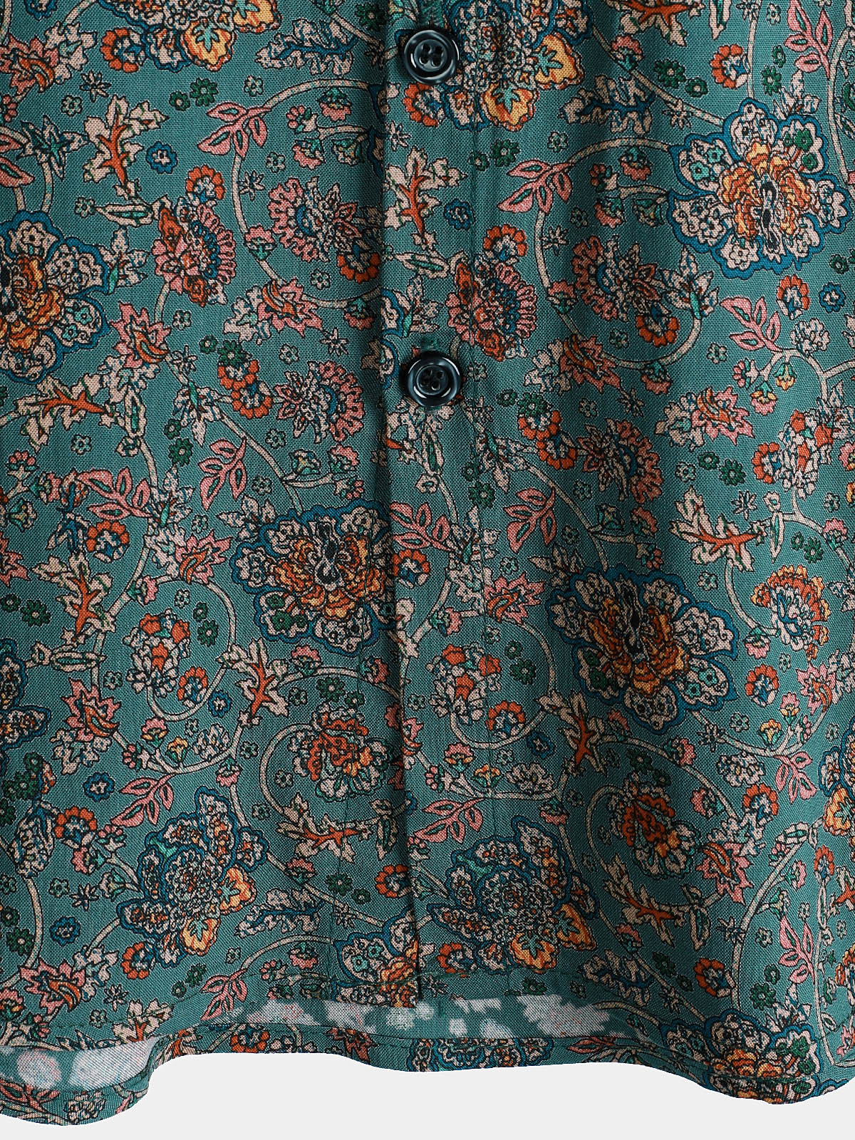 Men's Retro Floral Print Rayon Short Sleeve Shirt