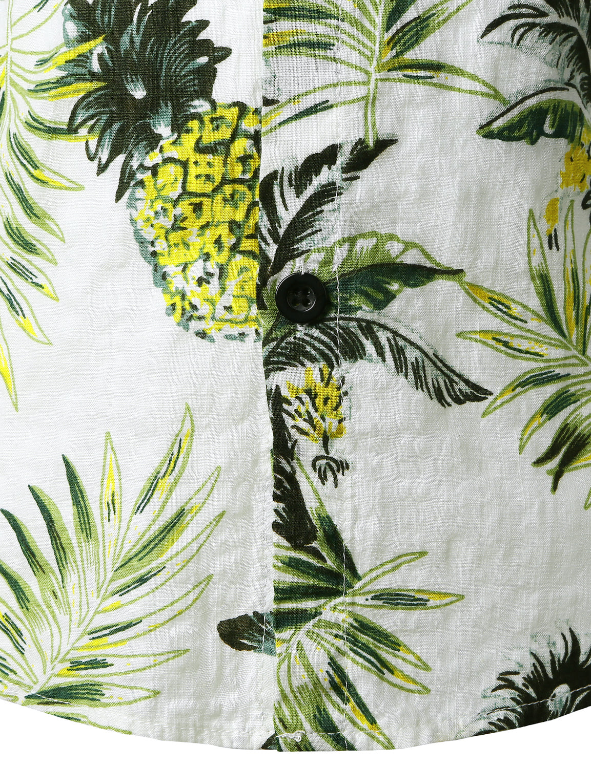 Children's Pineapple Print Tropical Aloha Holiday Beach White Short Sleeve Shirt