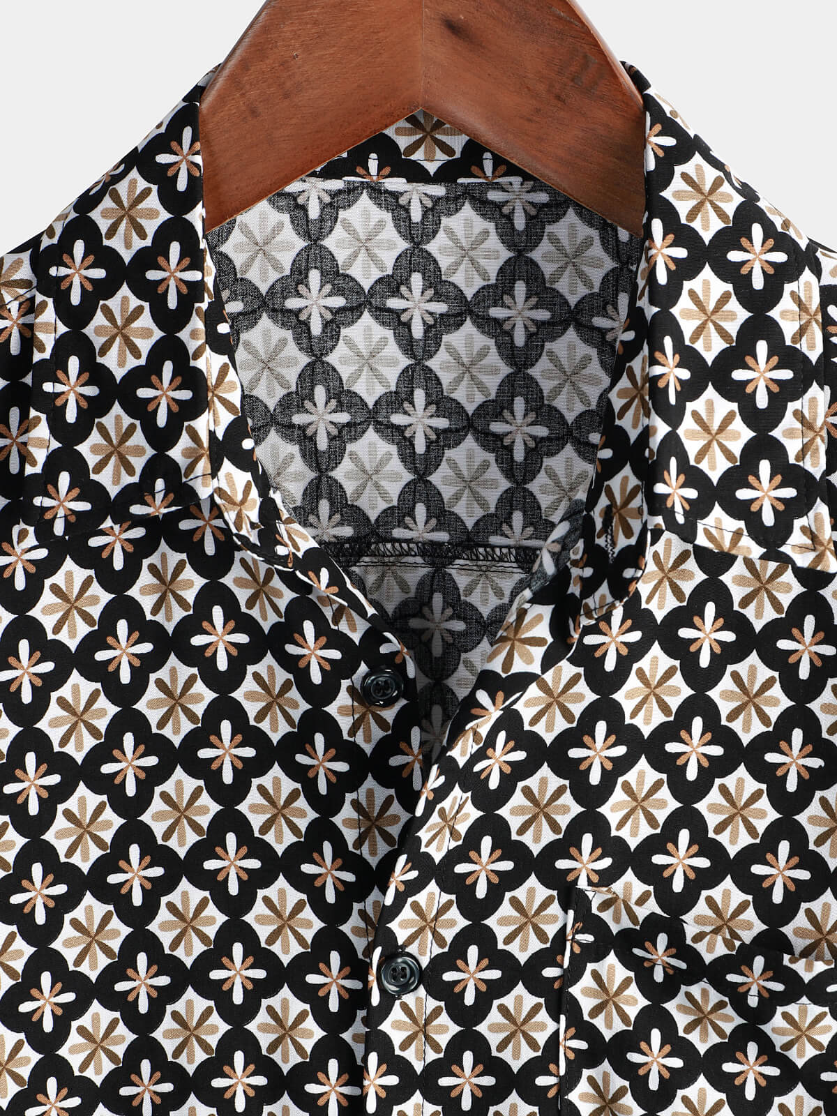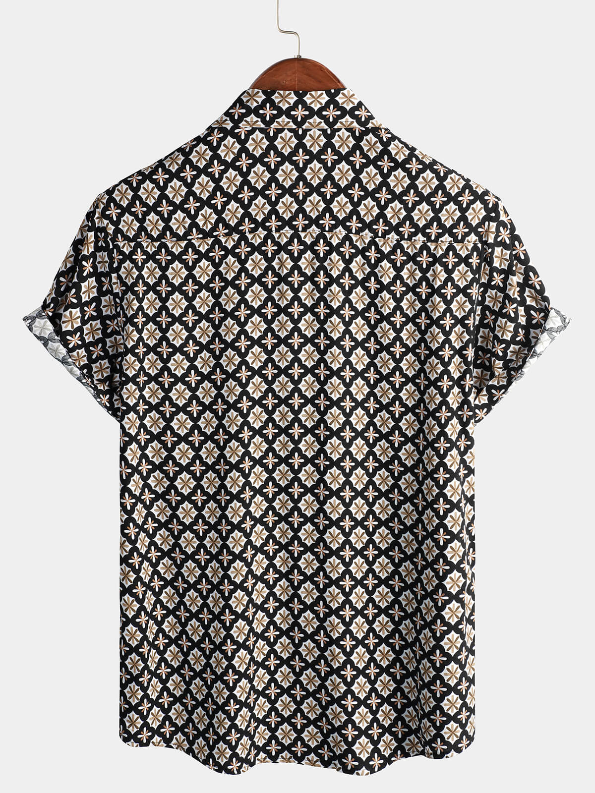 Men's Black Button Summer Beach Short Sleeve Shirt