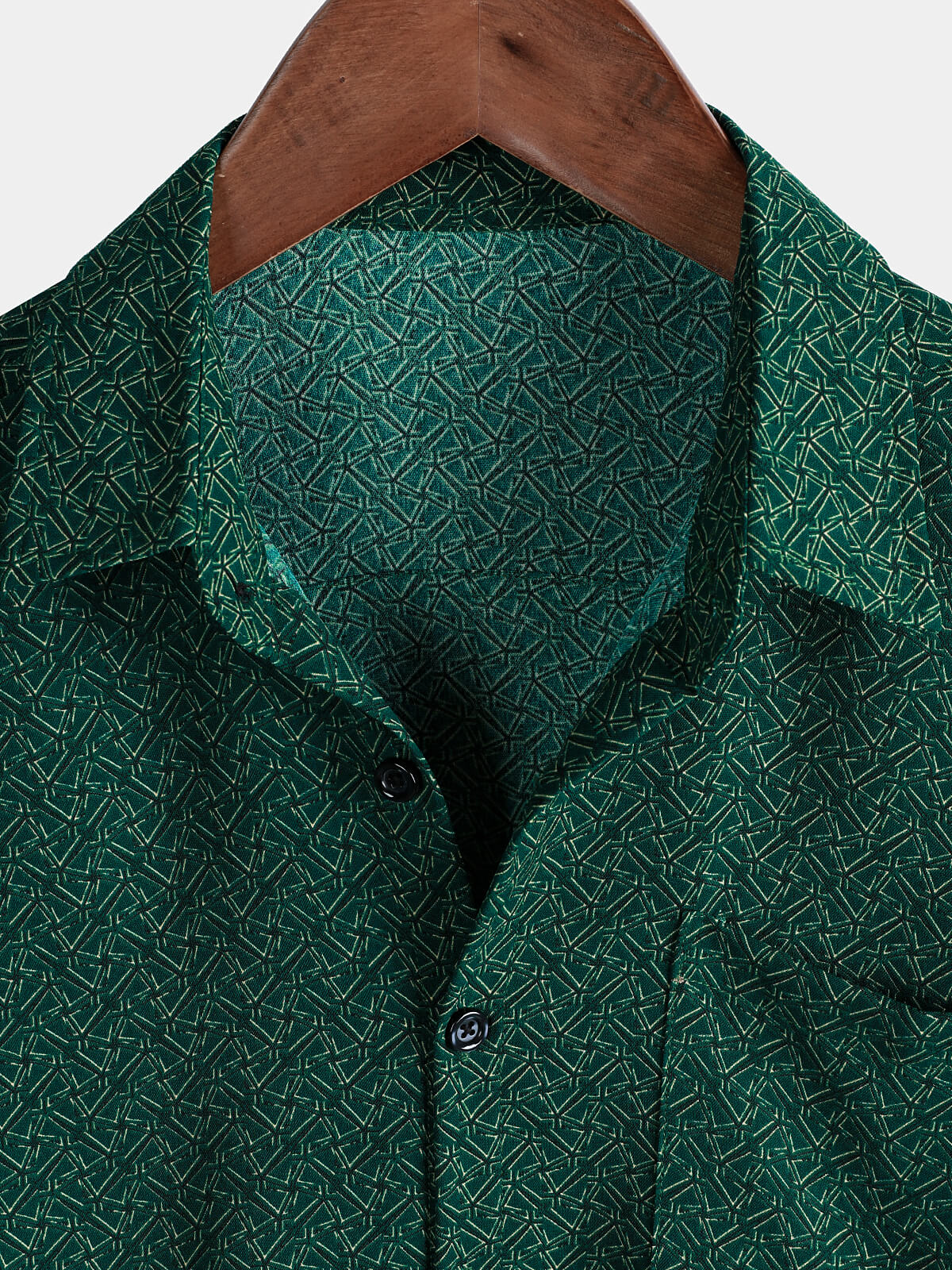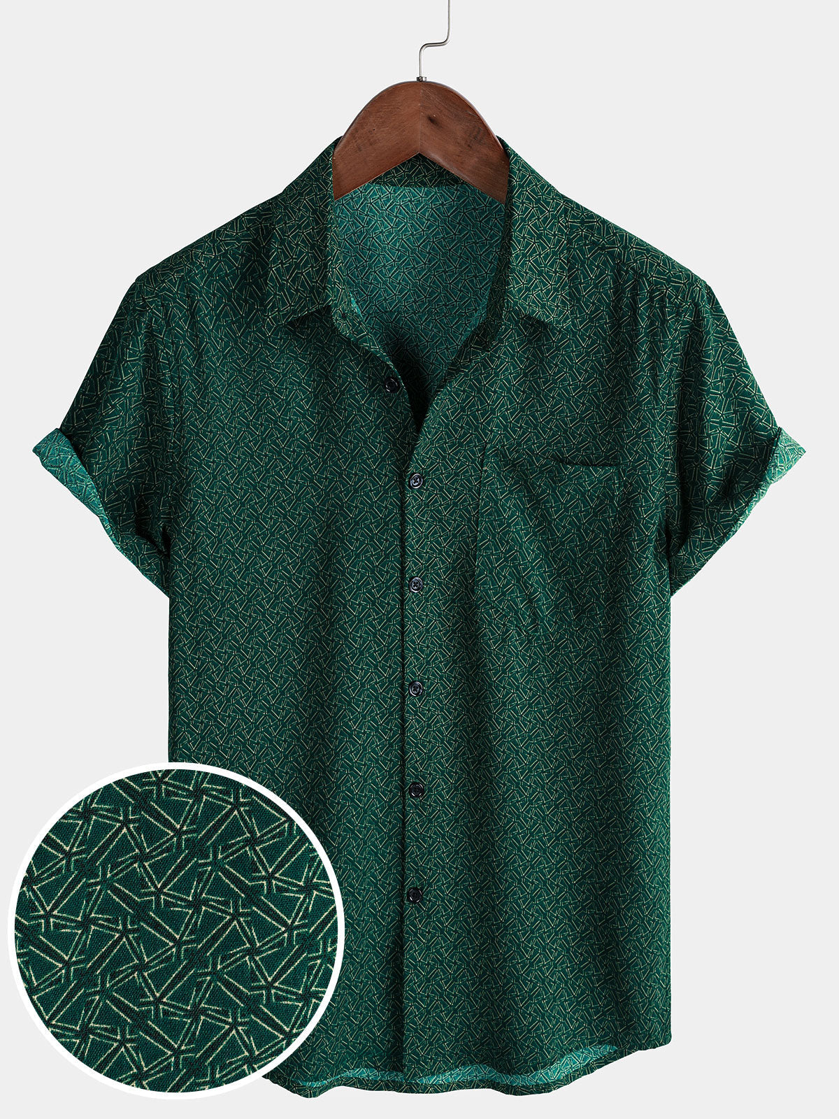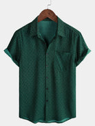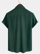 Men's Casual Green Geometric Print Holiday Pocket Short Sleeve Shirt