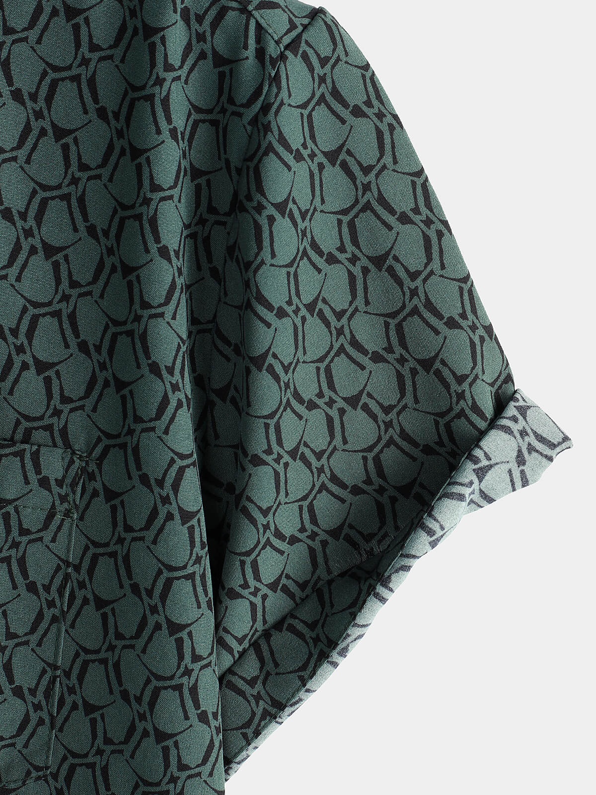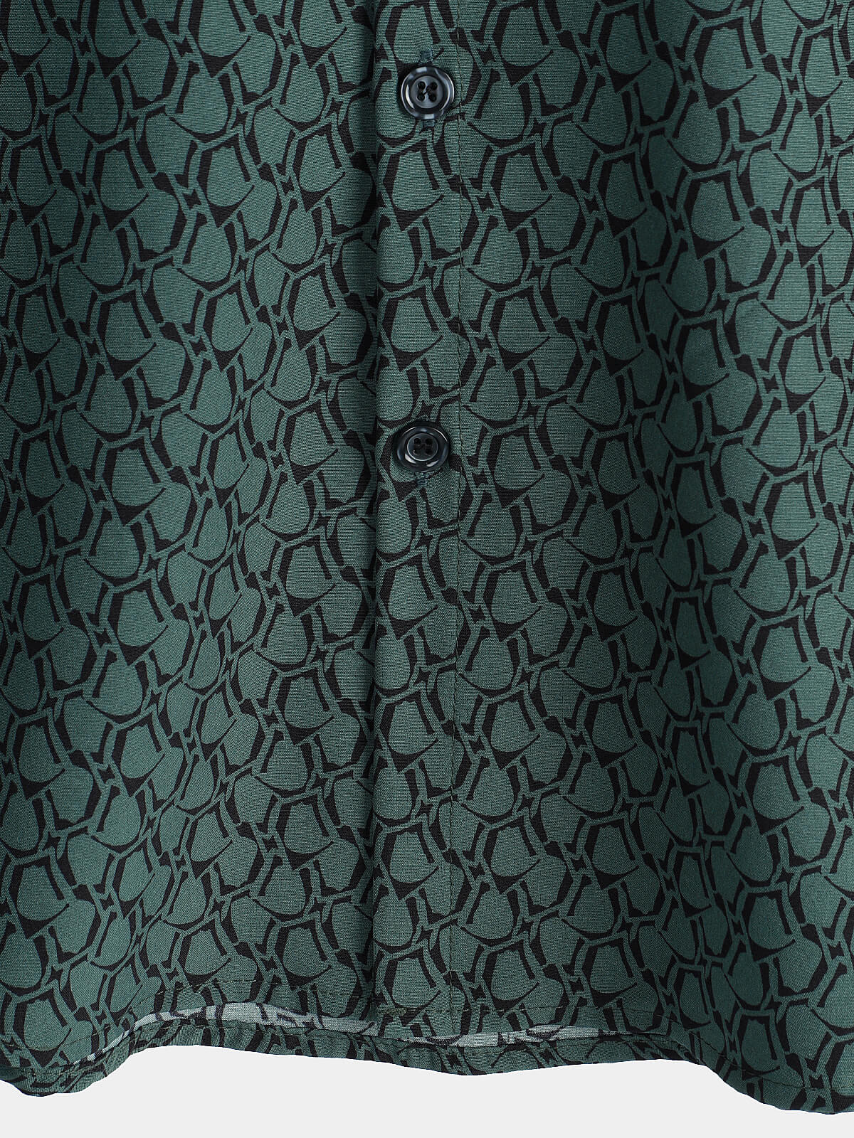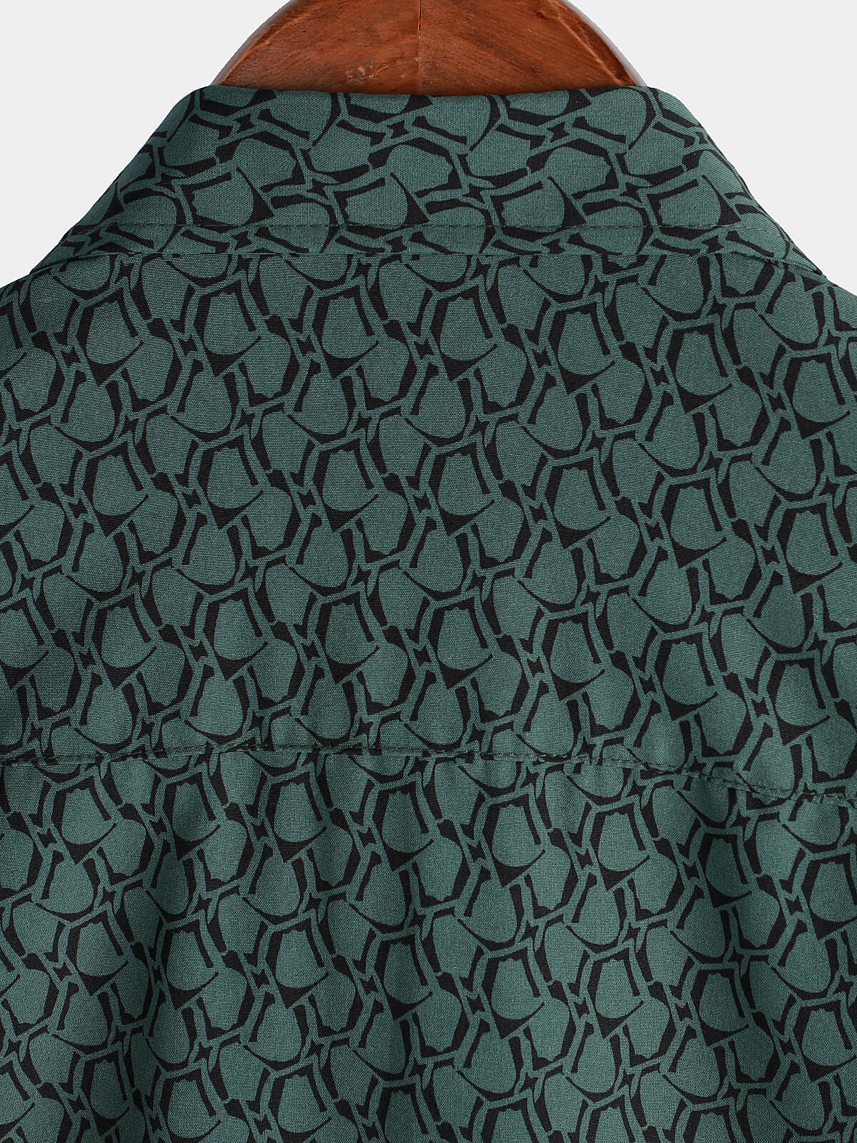 Men's Casual Holiday Short Sleeve Green Button Up Shirt