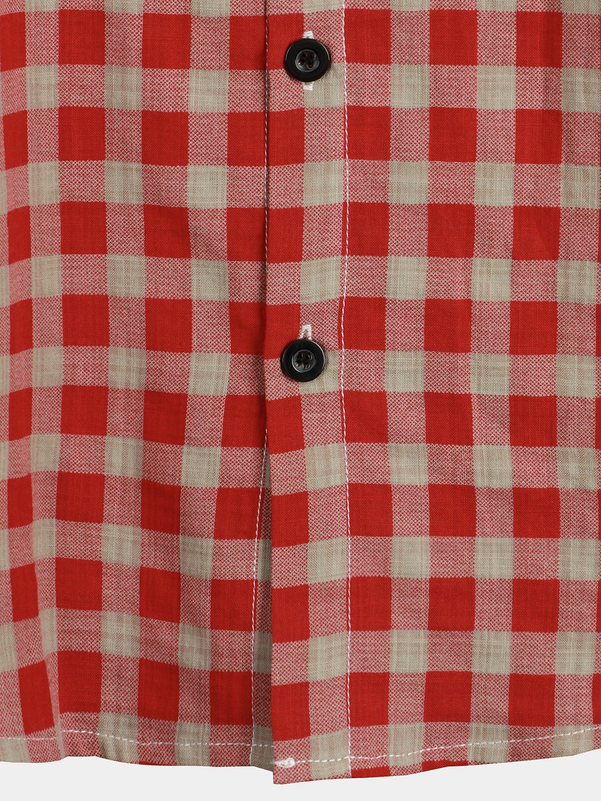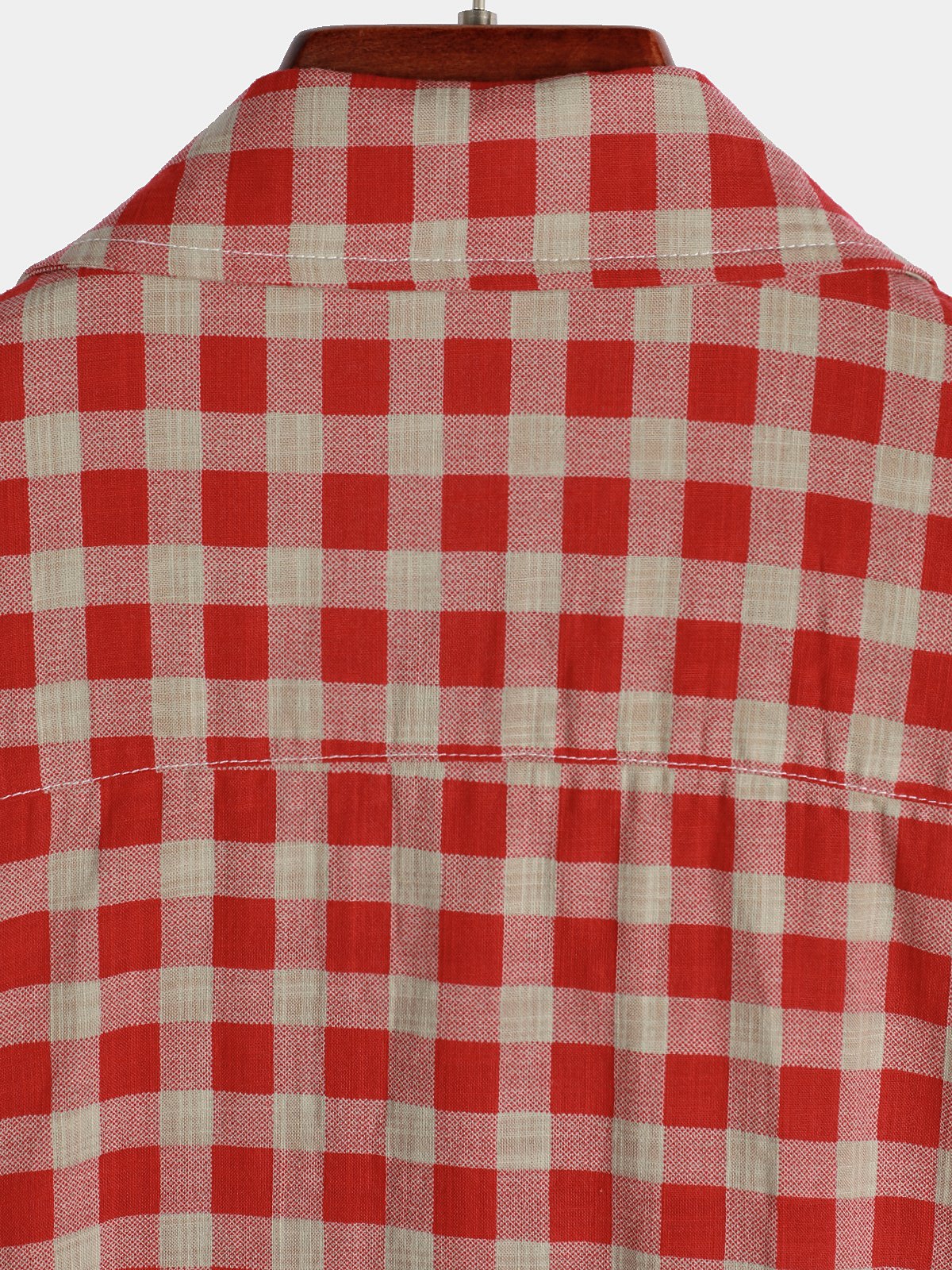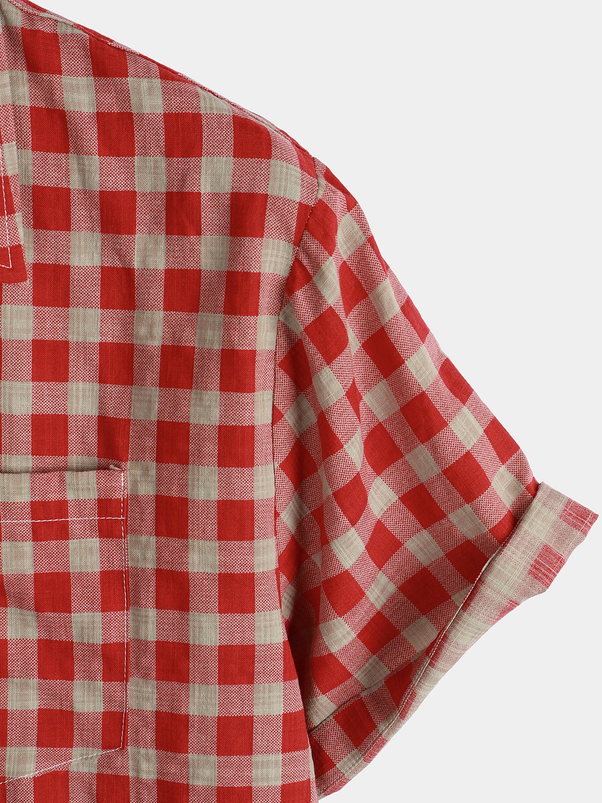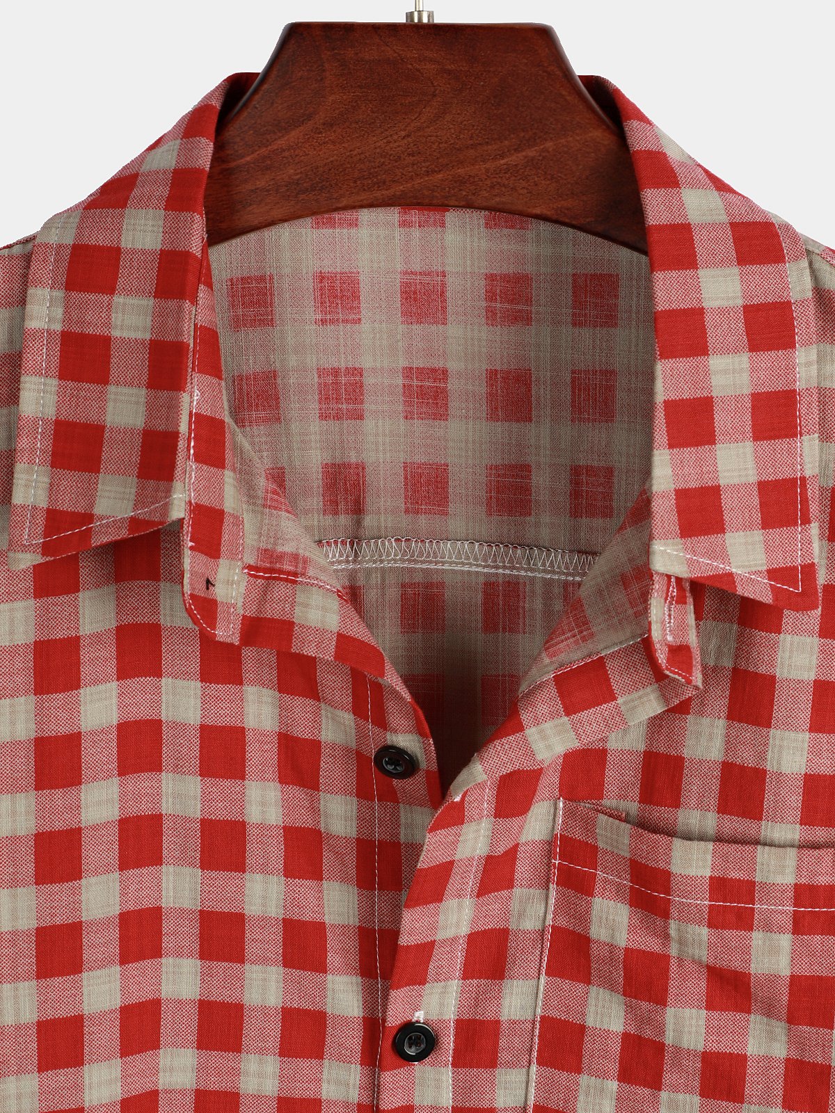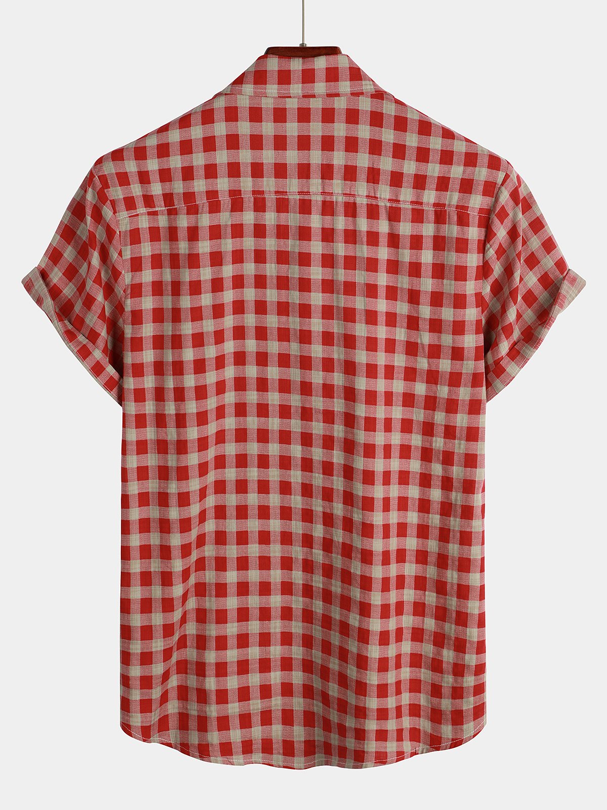 Men's Check Print Cotton Pocket Short Sleeve Shirt