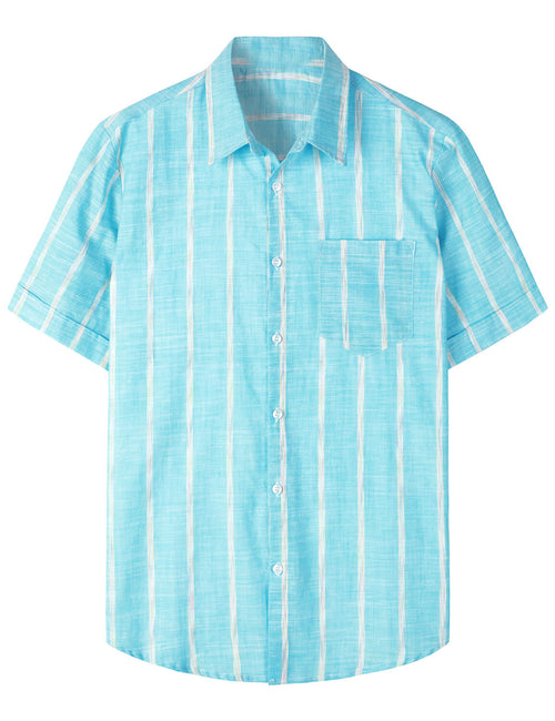 Men's Vintage Blue Vertical Striped Casual Short Sleeve Shirt