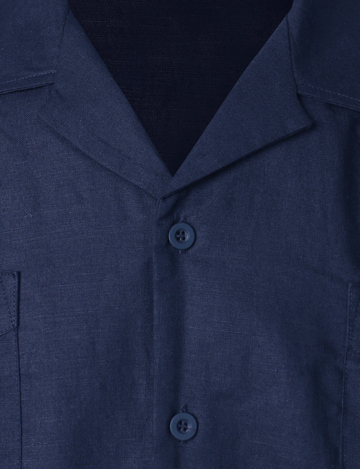 Men's Solid Color Linen Cotton Pocket Casual Button Short Sleeve Shirt