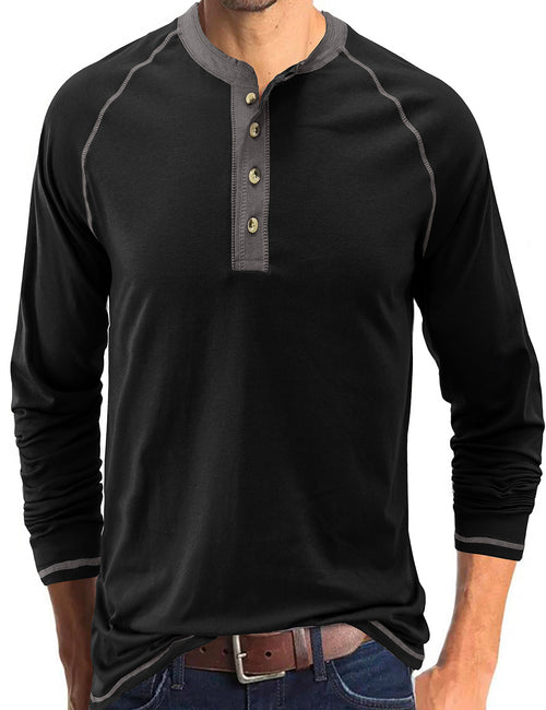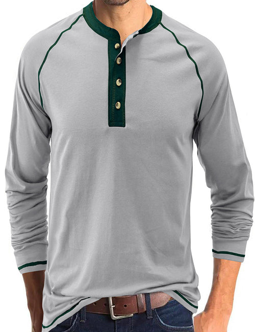 Men's Long-sleeved Cotton Color-blocking Plaid Shirt