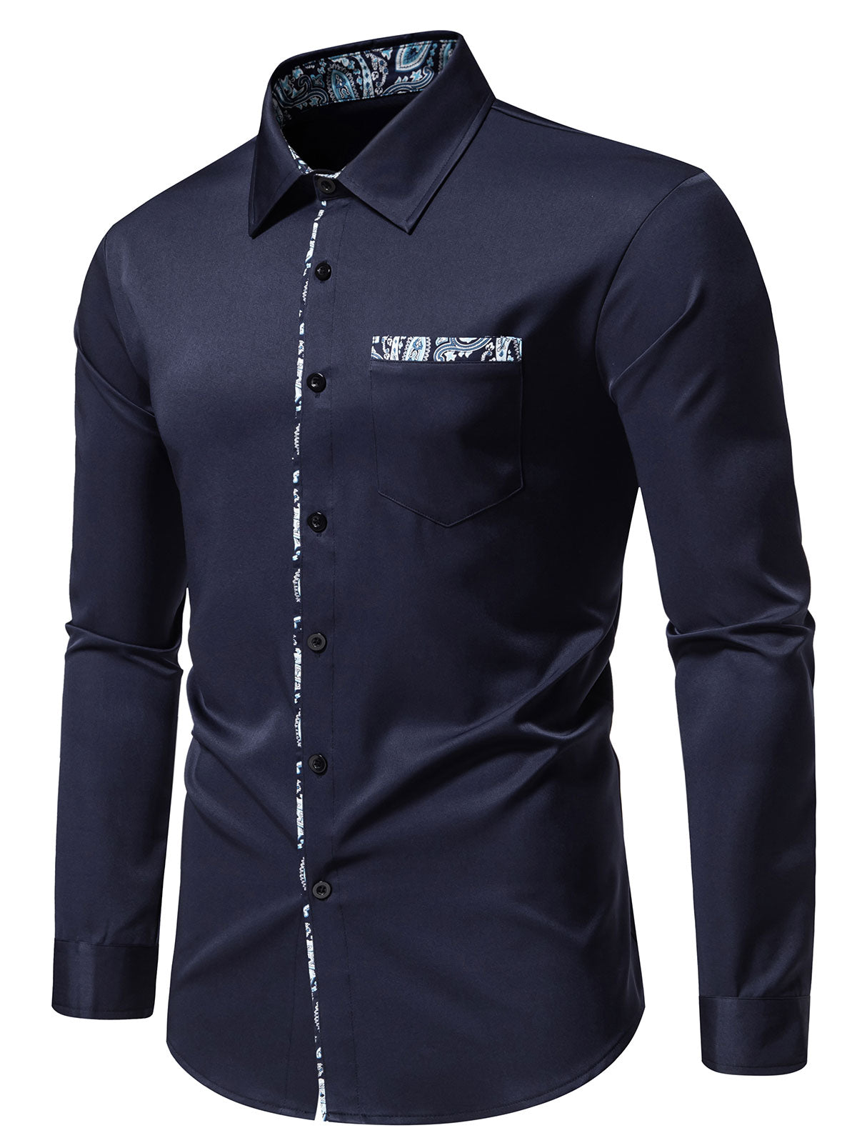 Men's Paisley Print Colorblock Long Sleeve Shirt