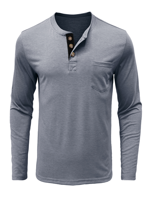 Men's Solid Color Stand Collar Half Button Pocket Front Linen & Cotton Shirt