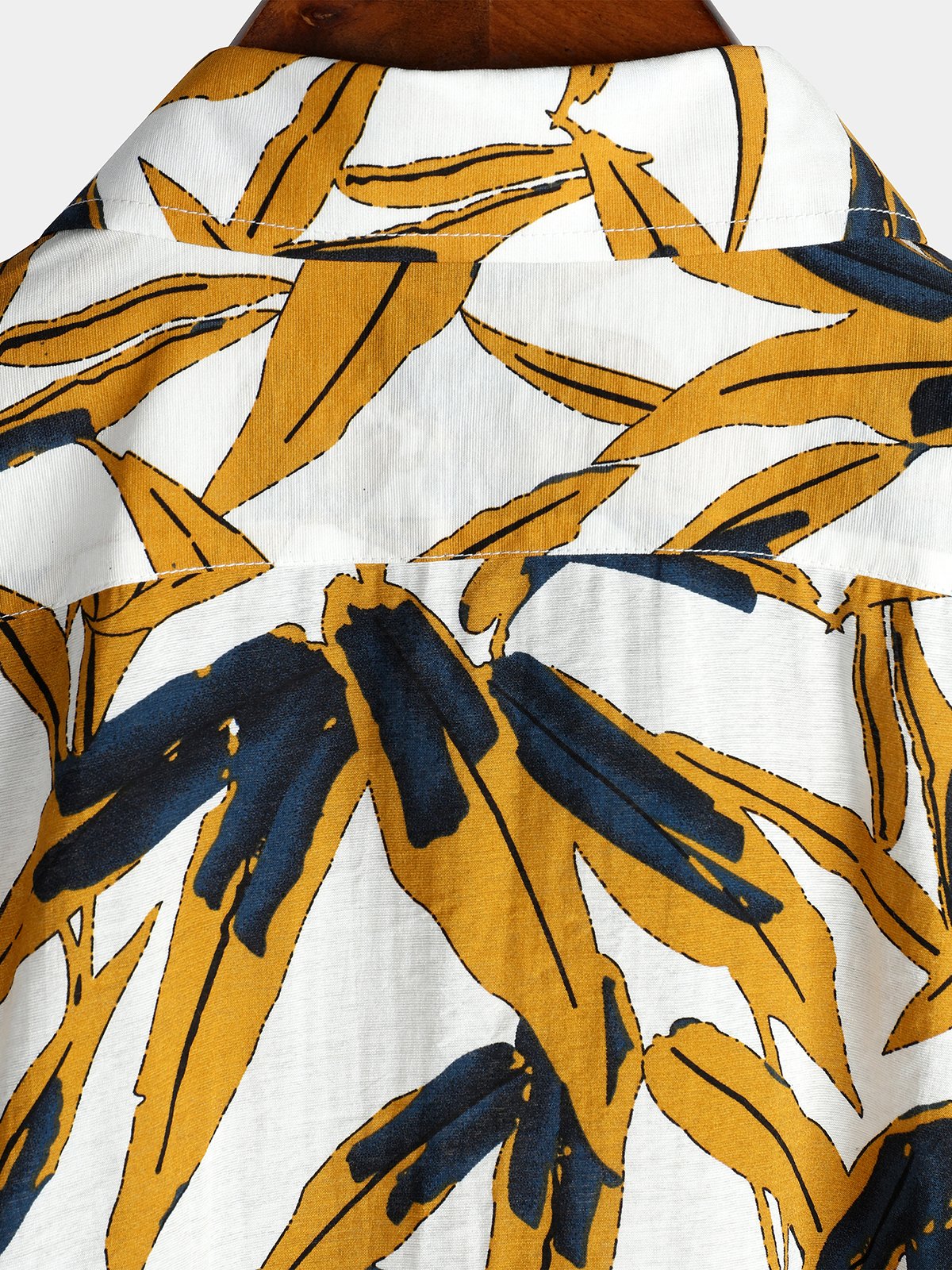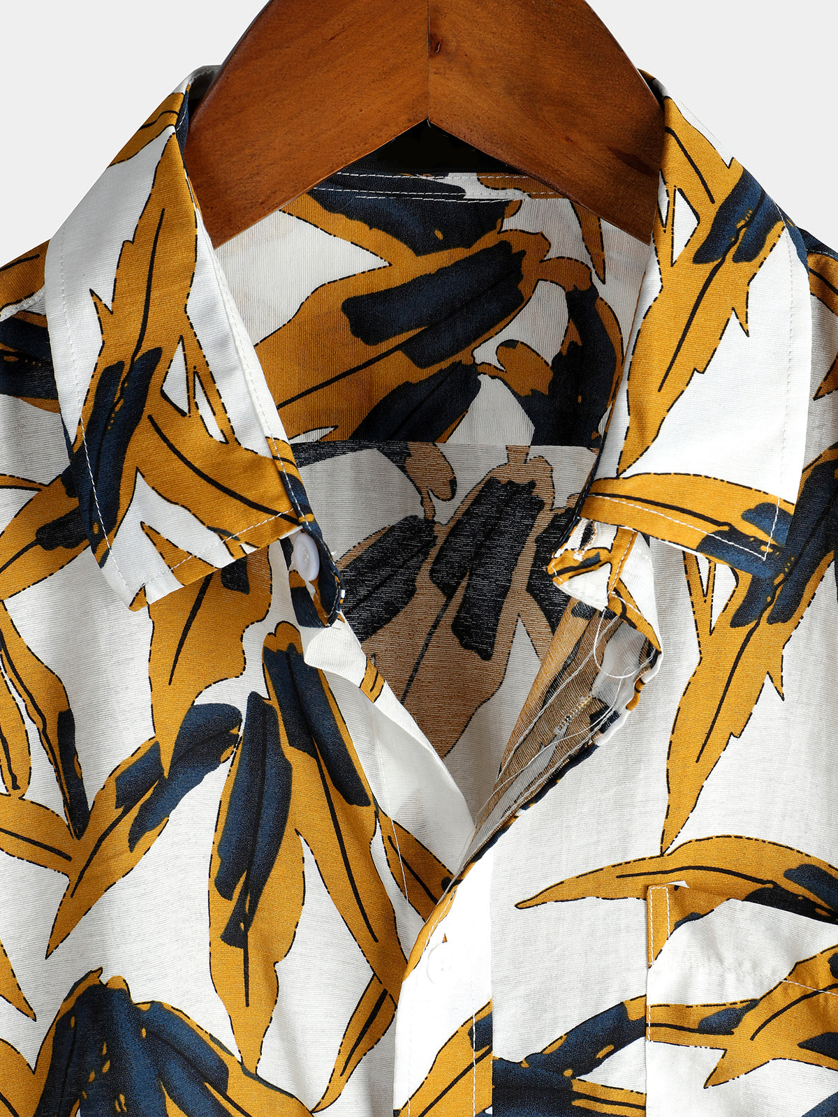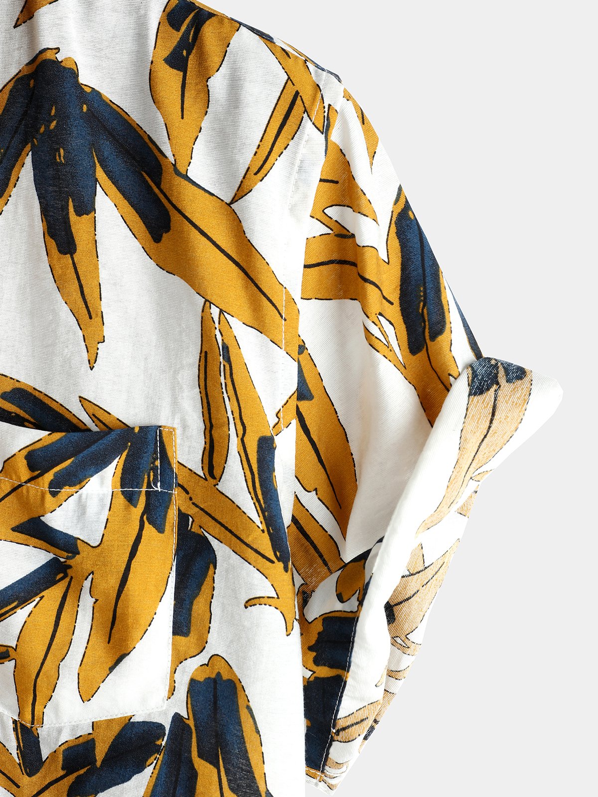 Men's Leaf Print Pocket Holiday Cotton Shirt