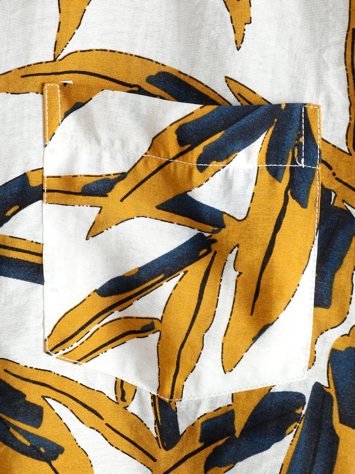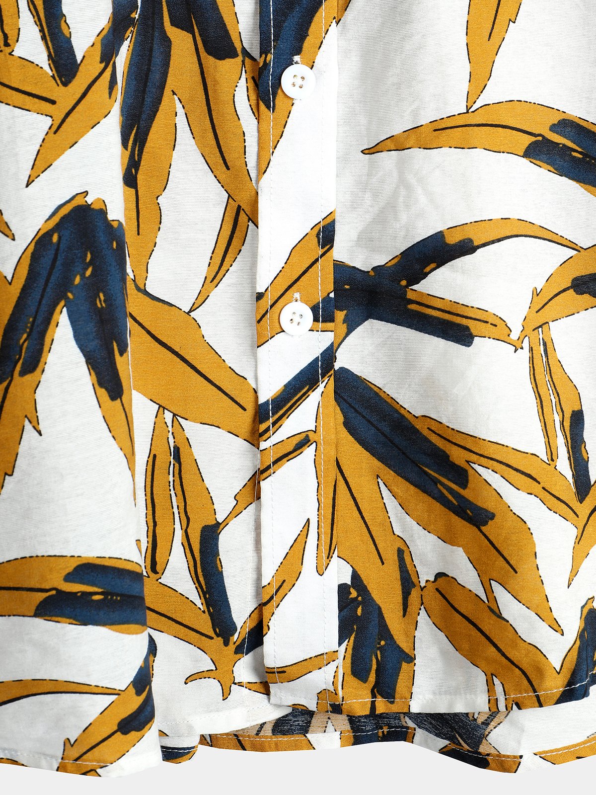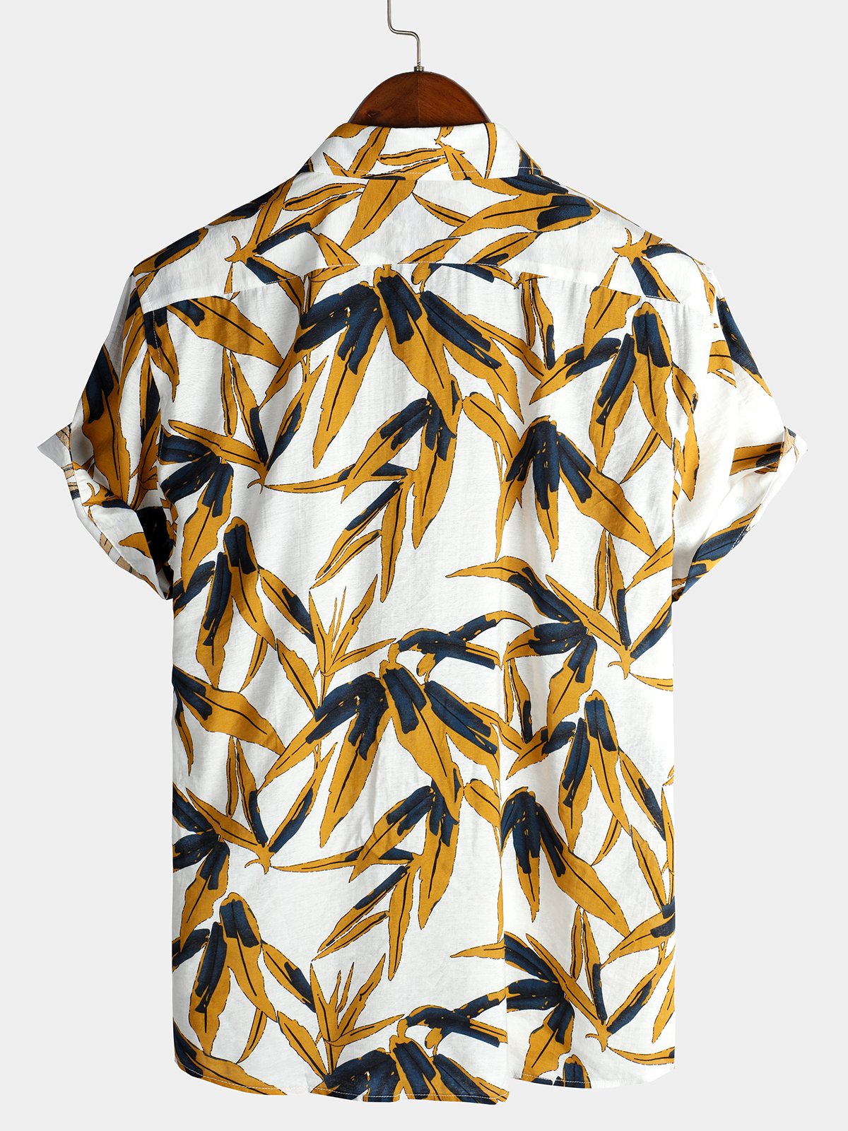 Men's Leaf Print Pocket Holiday Cotton Shirt