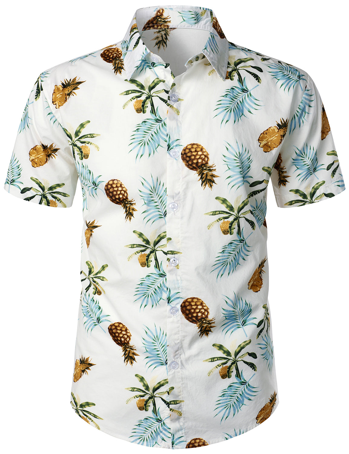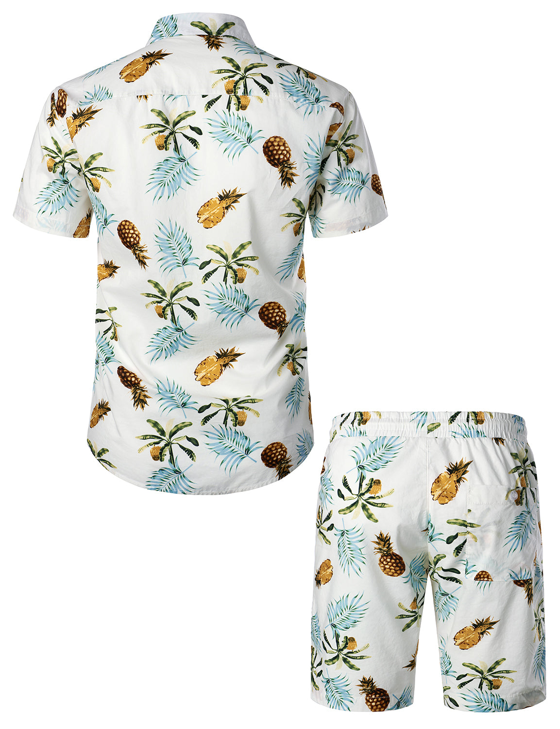 Men's Cotton Pineapple Print Tropical Fruit Hawaiian Shirt and Shorts Set