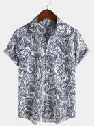 Men's Tropical Blue Short Sleeve Summer Button Up Shirt
